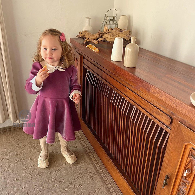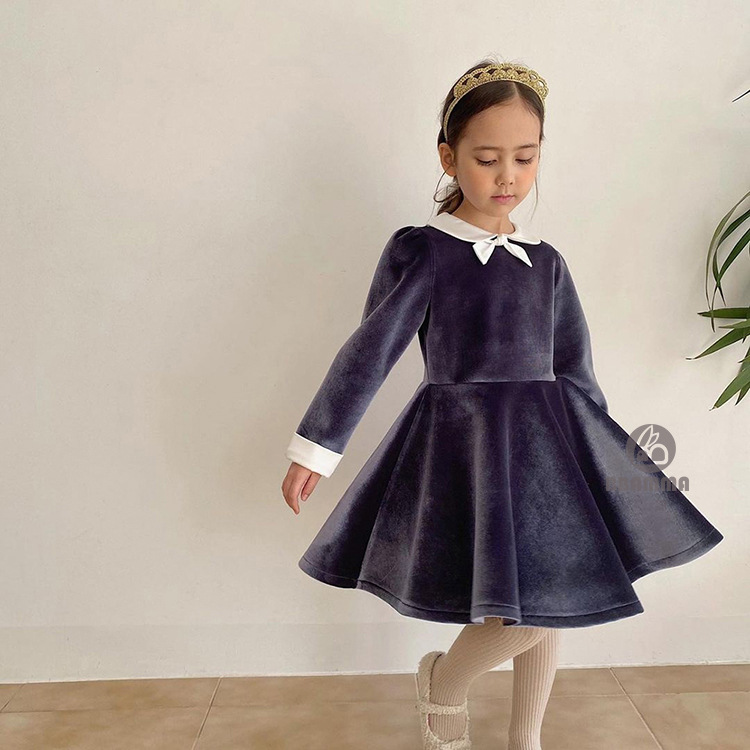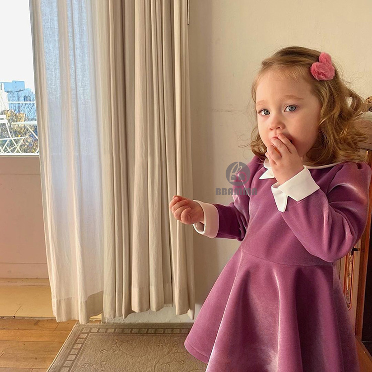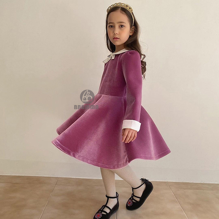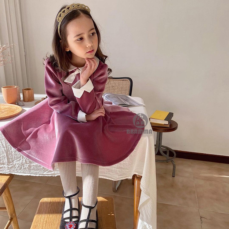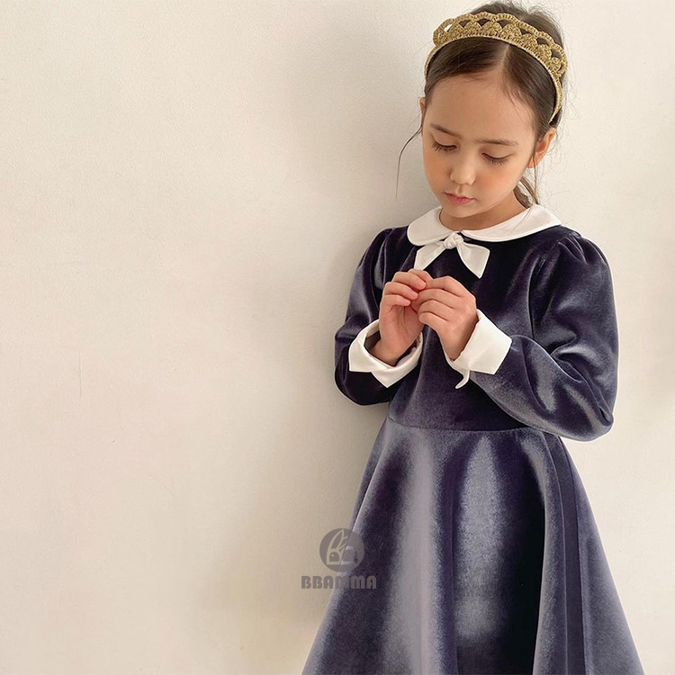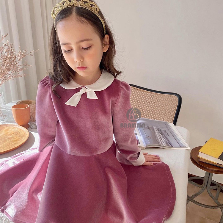 秋冬のフォーマルなシーンにぴったりの一着で、発表会、結婚式、お祝い事など、特別な日に華を添えます。もちろん、普段使いとしてのおしゃれ着にも最適です。このベルベット風リボン襟長袖フォーマルワンピースは、お子様の特別な日を彩り、上品な気質を引き出す一着となるでしょう。