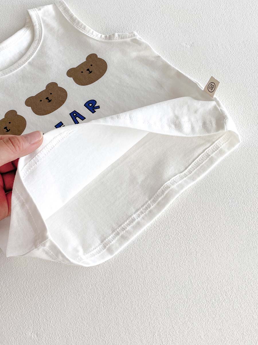 可愛らしいクマのプリントが特徴の、ベアくまプリントタンクトップとショートパンツのセットアップです。夏の普段使いにぴったりの、男の子向け2点セット。