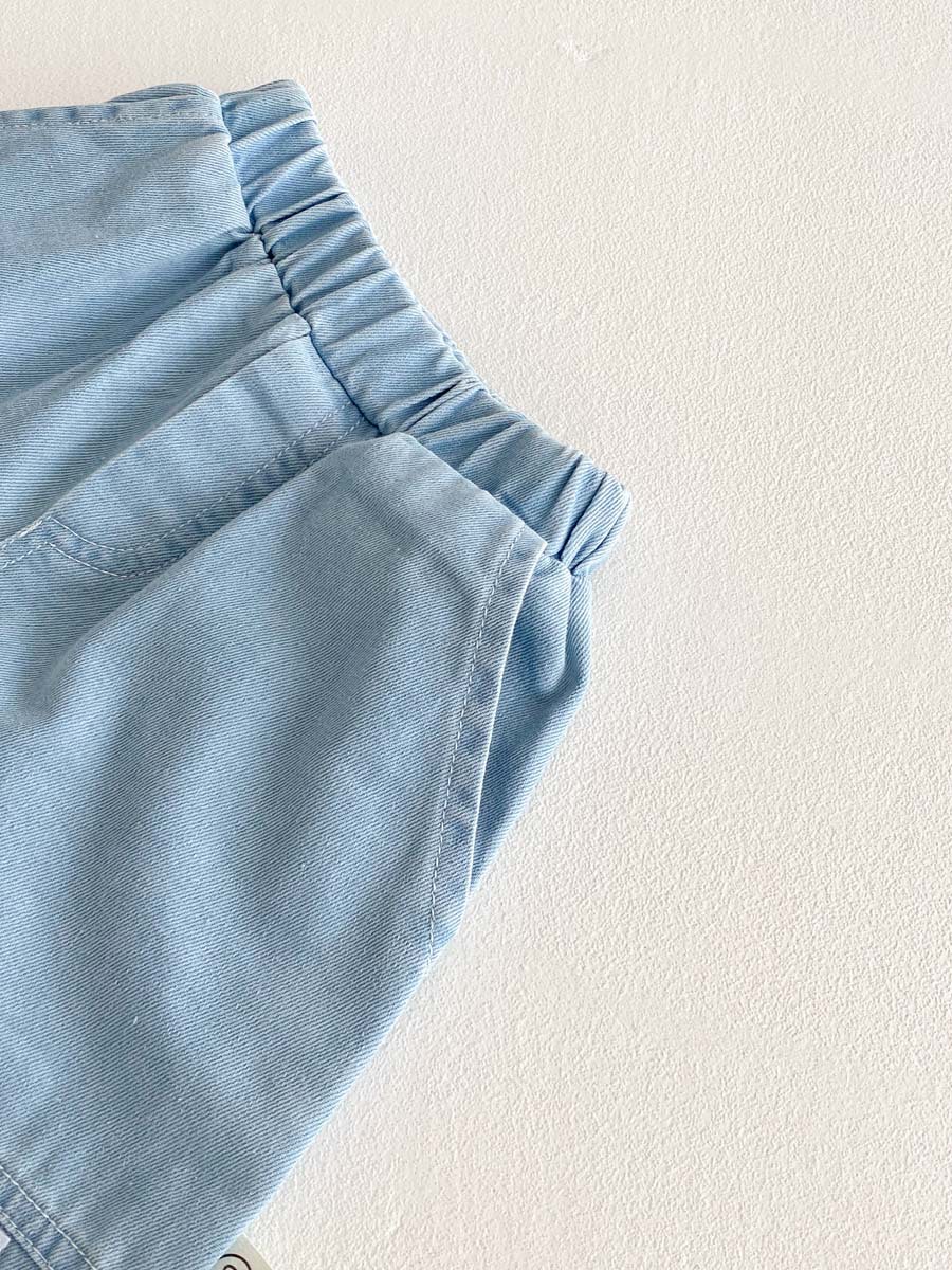 薄手のコットン素材なので、肌触りが良く通気性も抜群で、暑い夏でもお子さんが快適に過ごせます。タンクトップには、愛らしいクマのプリントが施されており、カジュアルで元気な印象です。ボトムスは、動きやすいデニムショートパンツ。ウエストはゴム仕様なので、お子さん一人でも着脱が簡単です。