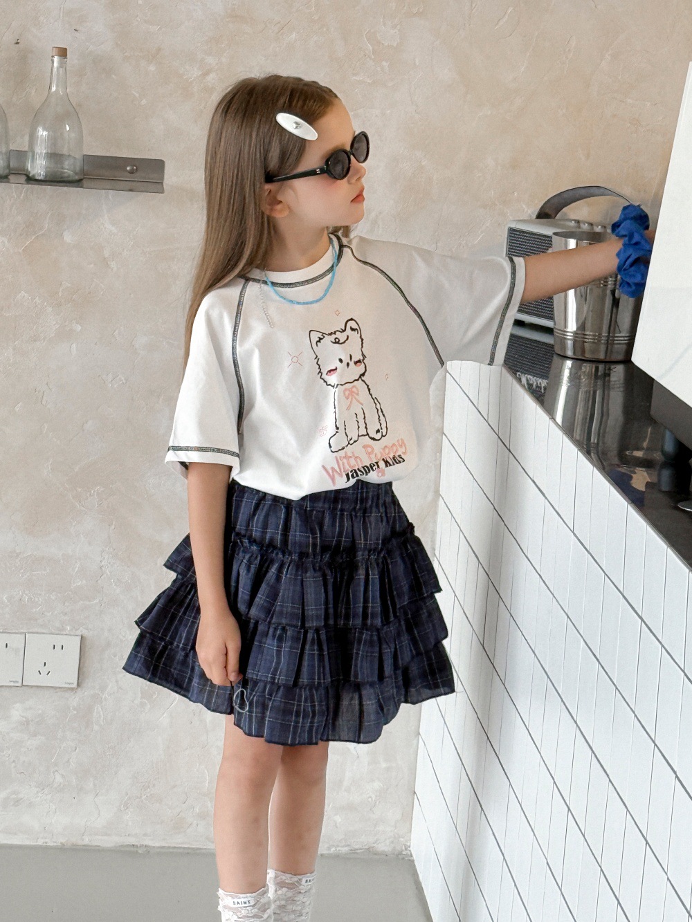 #キッズファッション #チェック柄 #ティアードスカート #ケーキスカート #夏服 #女の子