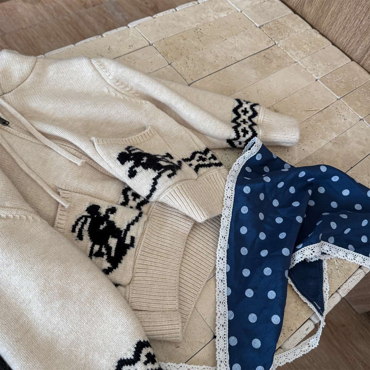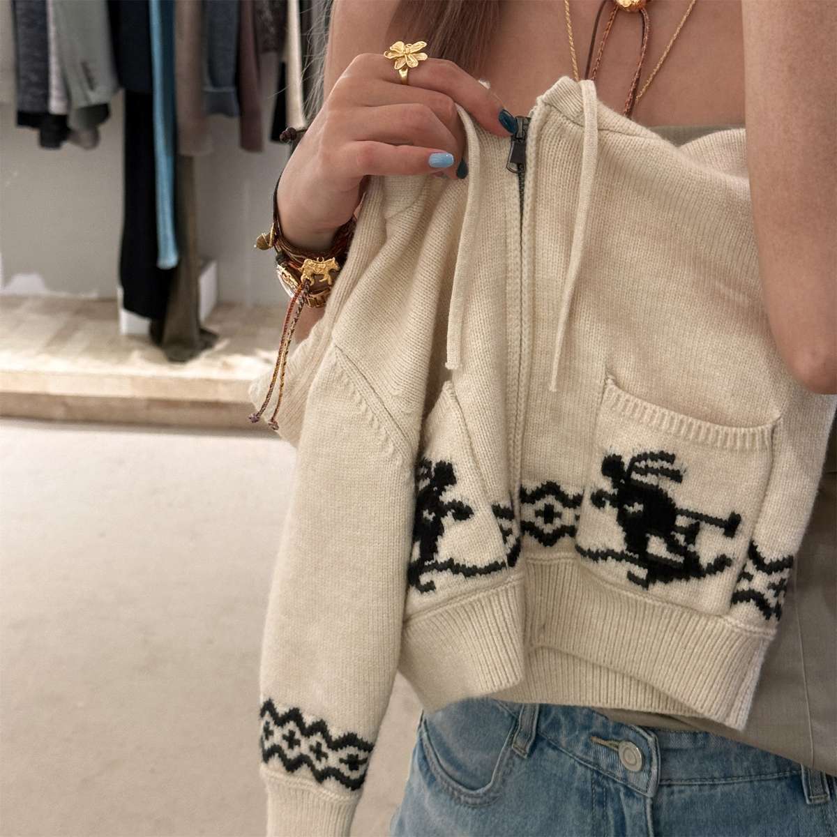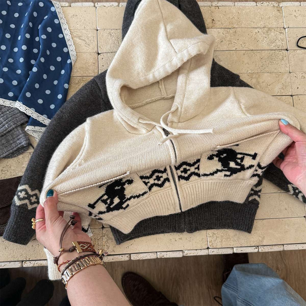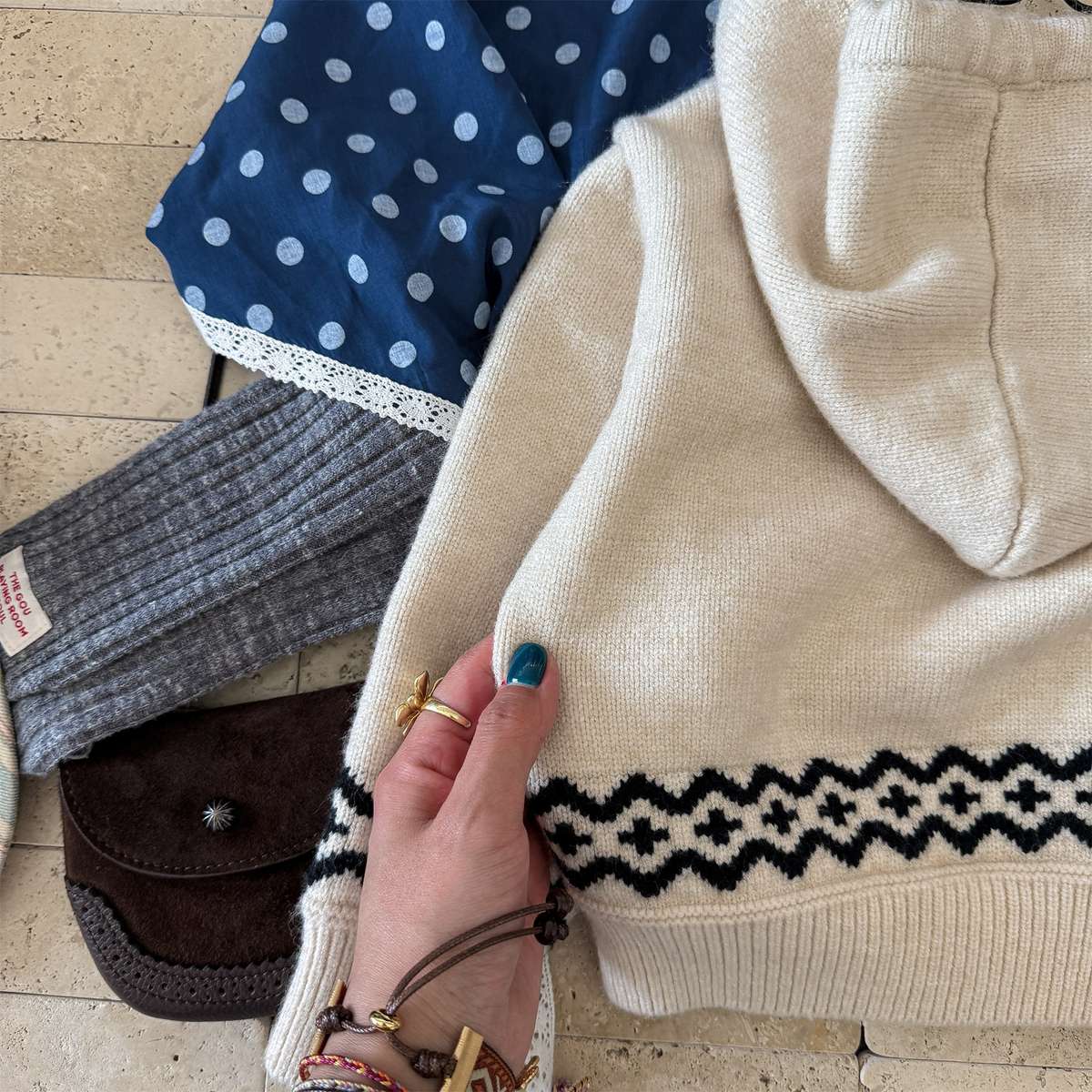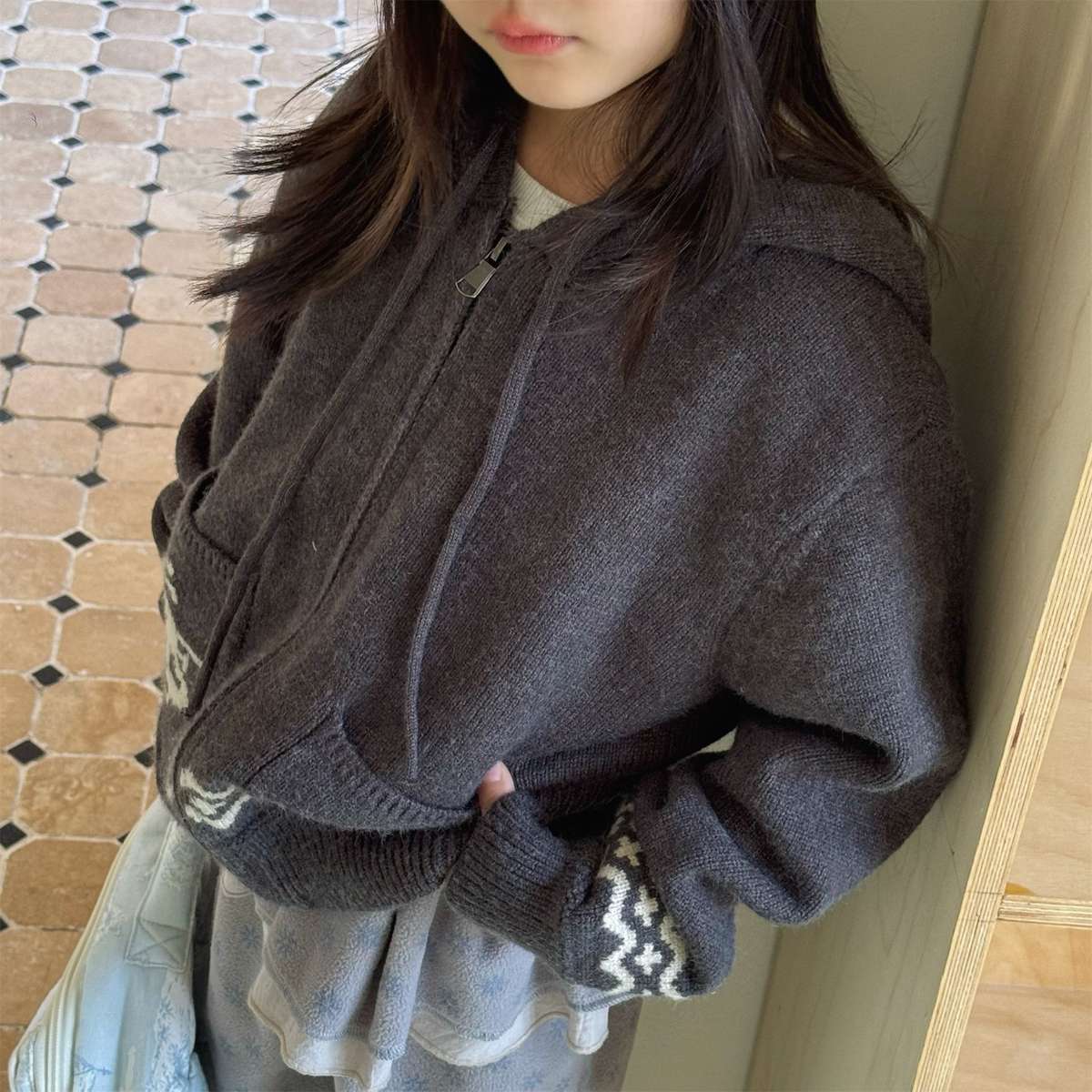 ニットフーディ ジップアップ ノルディック柄 カーディガン【mh0011430】