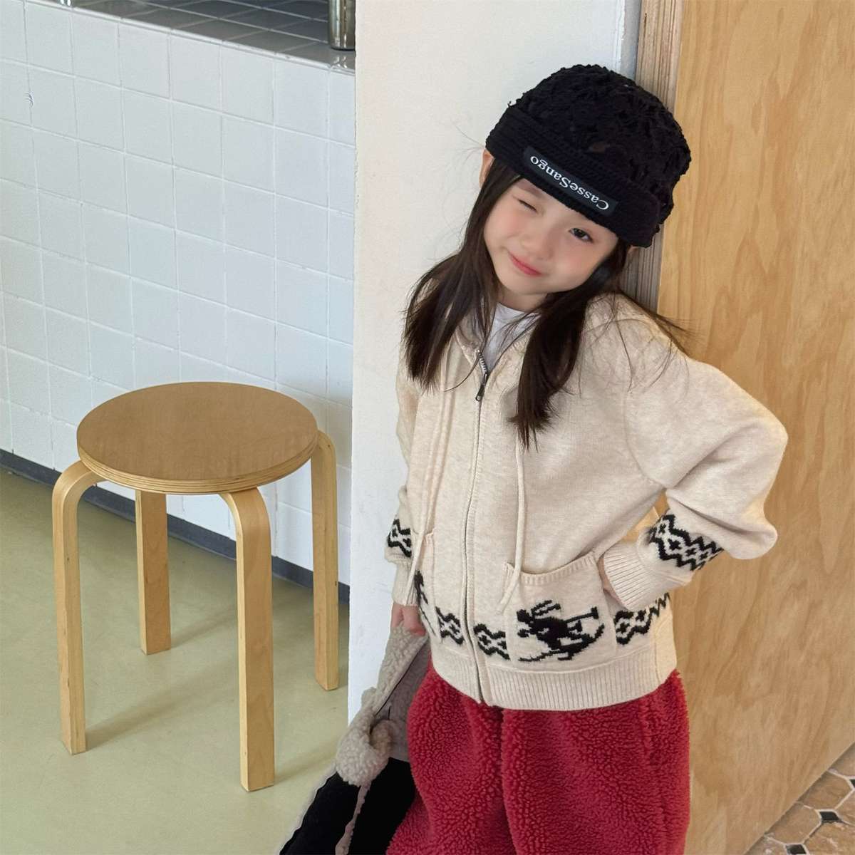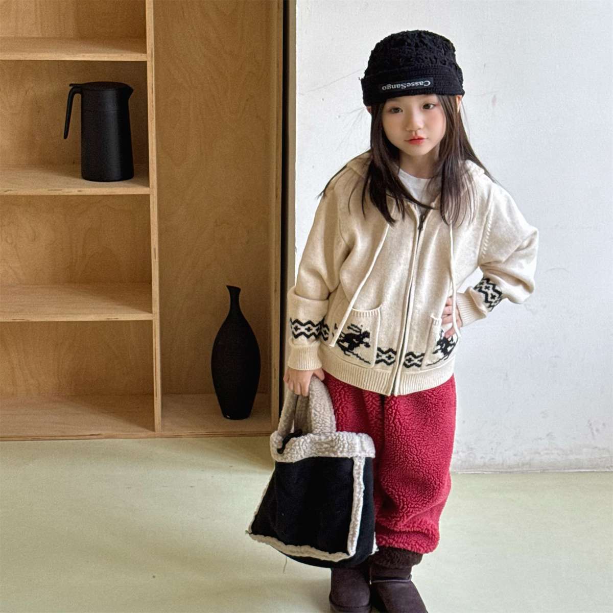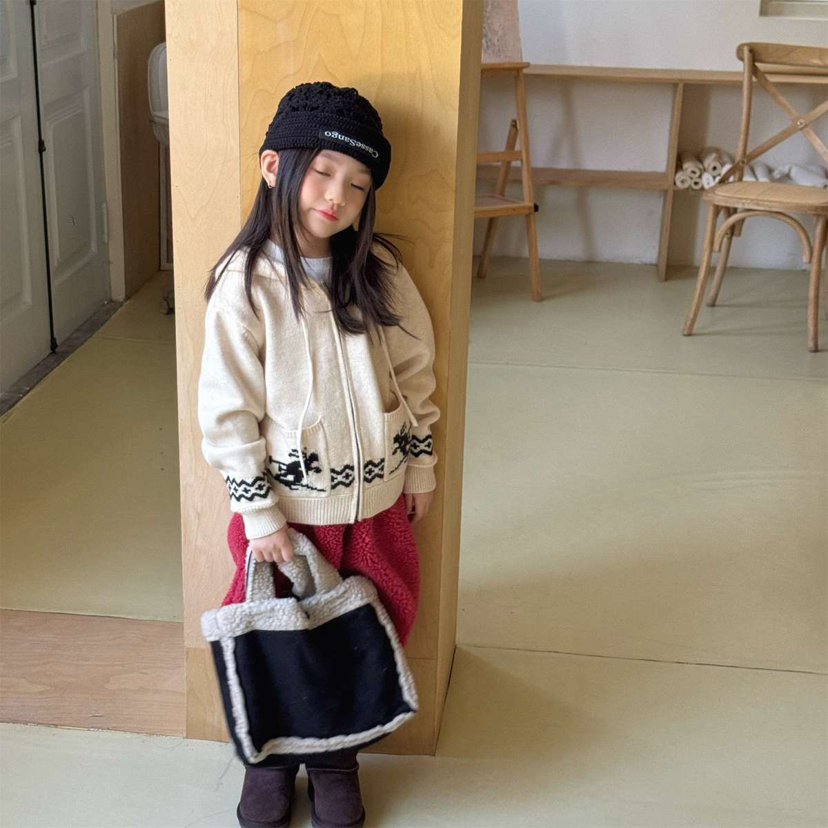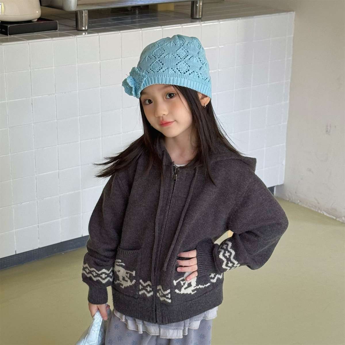 ゆったりとしたシルエットのニットフーディは、季節の変わり目のおしゃれに欠かせない子ども服です。ジップアップデザインでさっと羽織れるカーディガンは、スタイリッシュなノルディック柄がアクセントとなり、カジュアルながらも洗練された印象を与えます。肌触りの良いニットウェアは、男の子にも女の子にも人気の高いトップスとして、ベビーやキッズの装いに暖かさとトレンド感をプラスします。