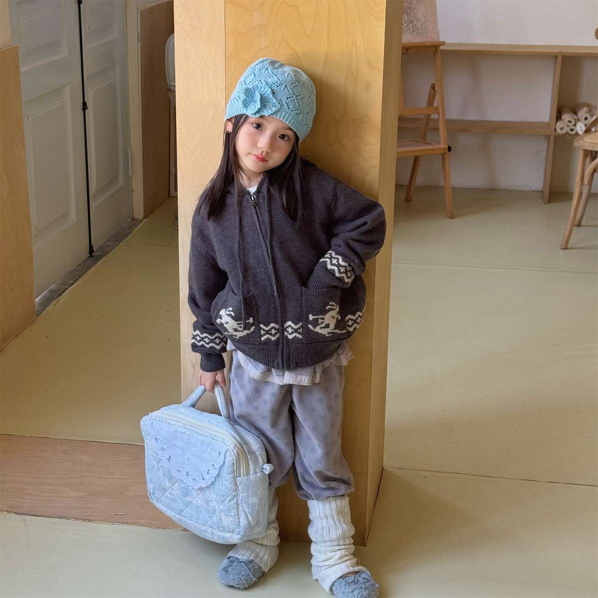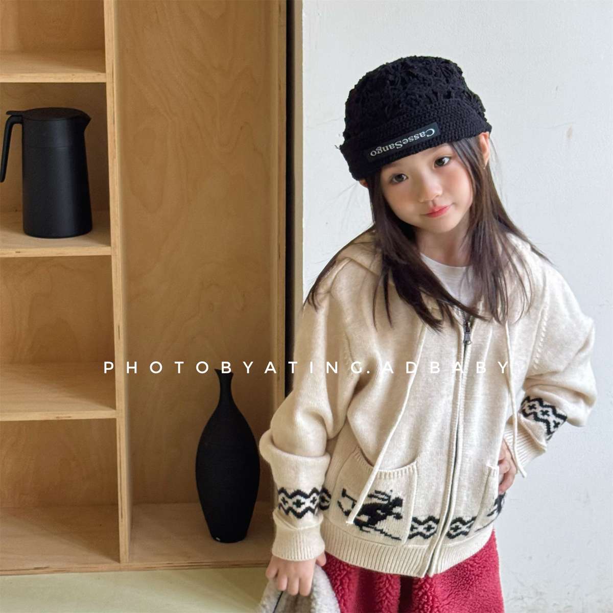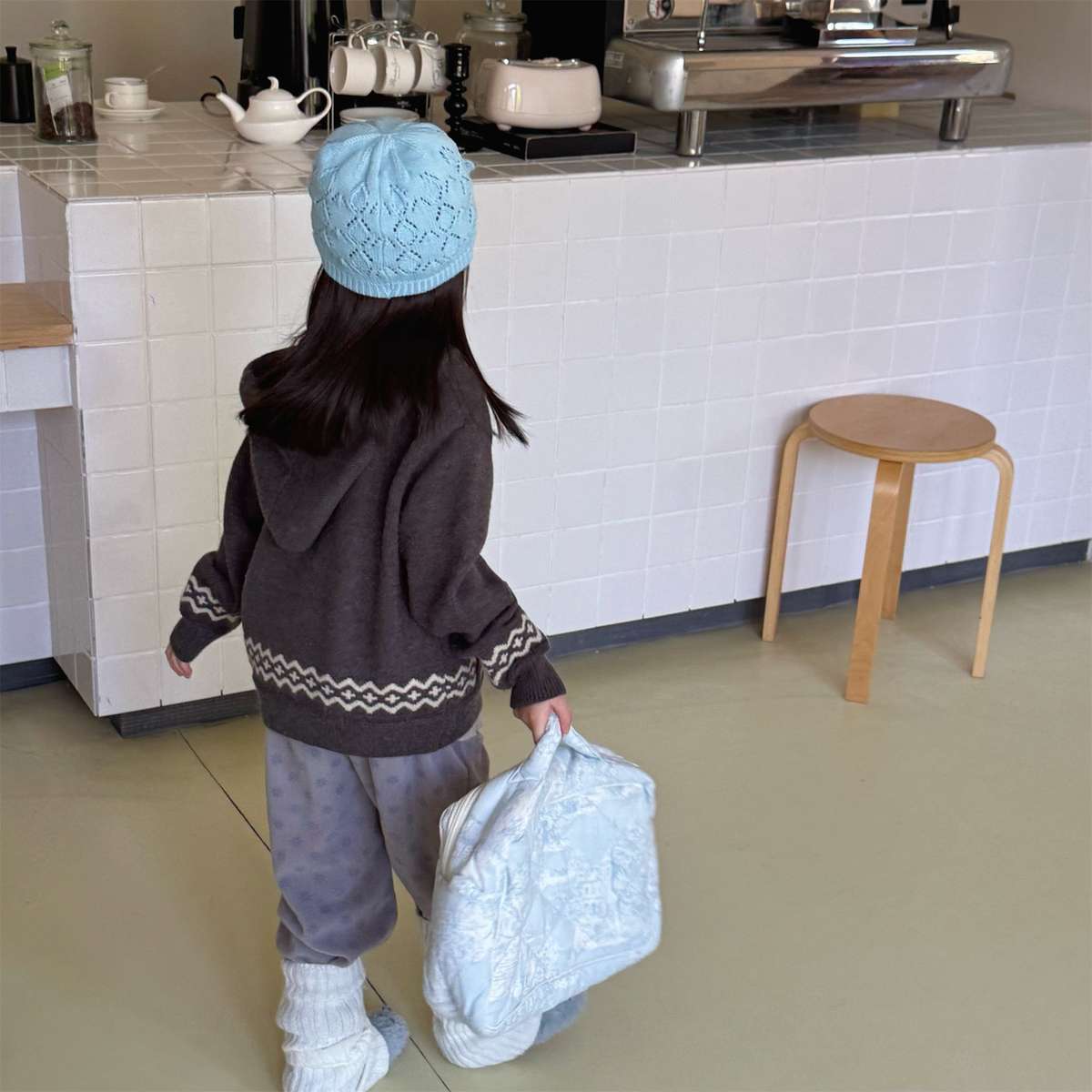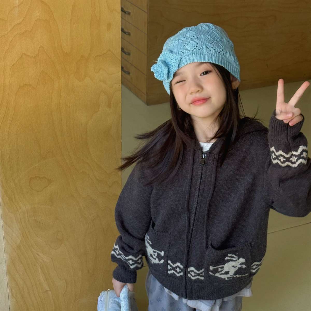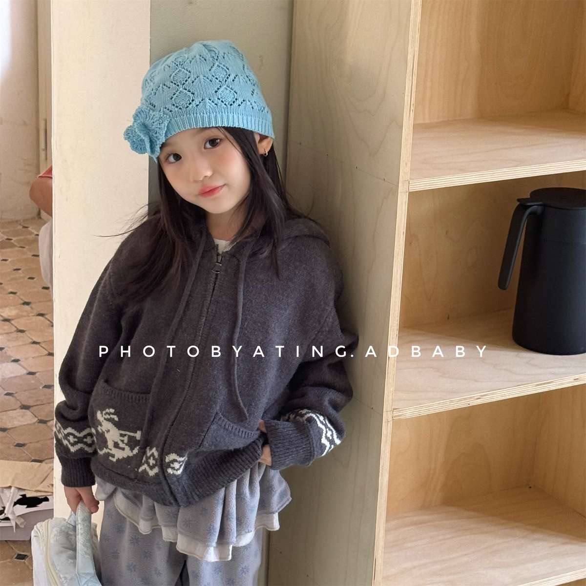 ゆったりとしたシルエットのニットフーディは、季節の変わり目のおしゃれに欠かせない子ども服です。ジップアップデザインでさっと羽織れるカーディガンは、スタイリッシュなノルディック柄がアクセントとなり、カジュアルながらも洗練された印象を与えます。肌触りの良いニットウェアは、男の子にも女の子にも人気の高いトップスとして、ベビーやキッズの装いに暖かさとトレンド感をプラスします。