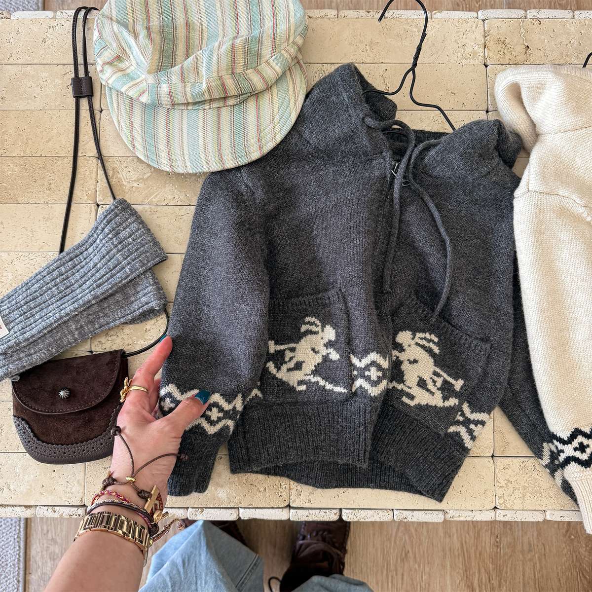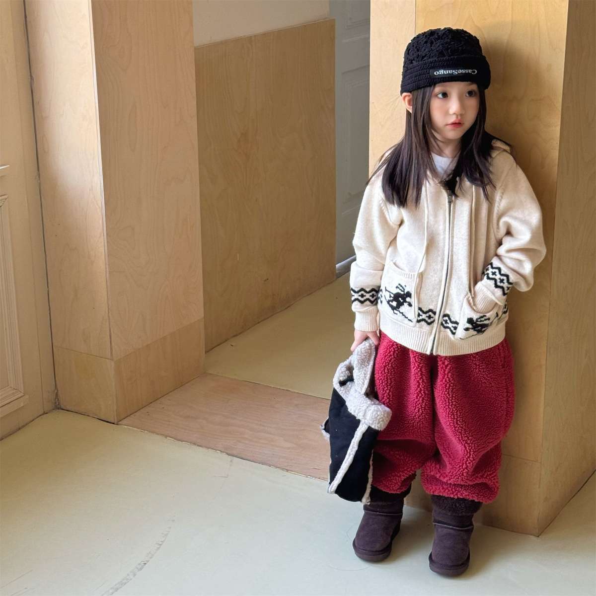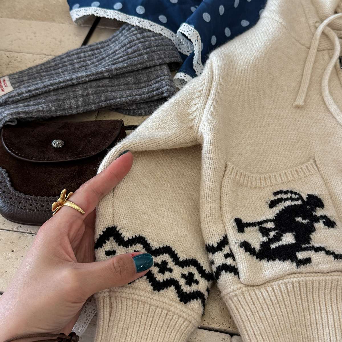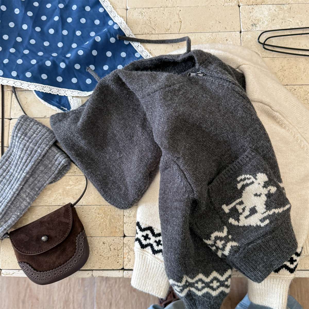 ゆったりとしたシルエットのニットフーディは、季節の変わり目のおしゃれに欠かせない子ども服です。ジップアップデザインでさっと羽織れるカーディガンは、スタイリッシュなノルディック柄がアクセントとなり、カジュアルながらも洗練された印象を与えます。肌触りの良いニットウェアは、男の子にも女の子にも人気の高いトップスとして、ベビーやキッズの装いに暖かさとトレンド感をプラスします。