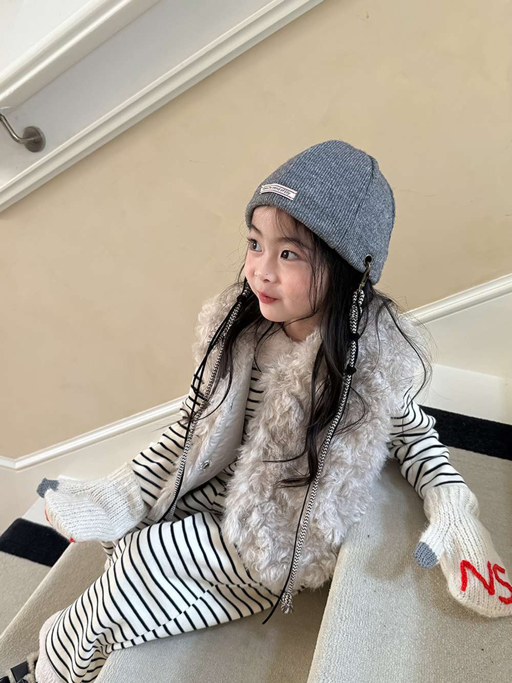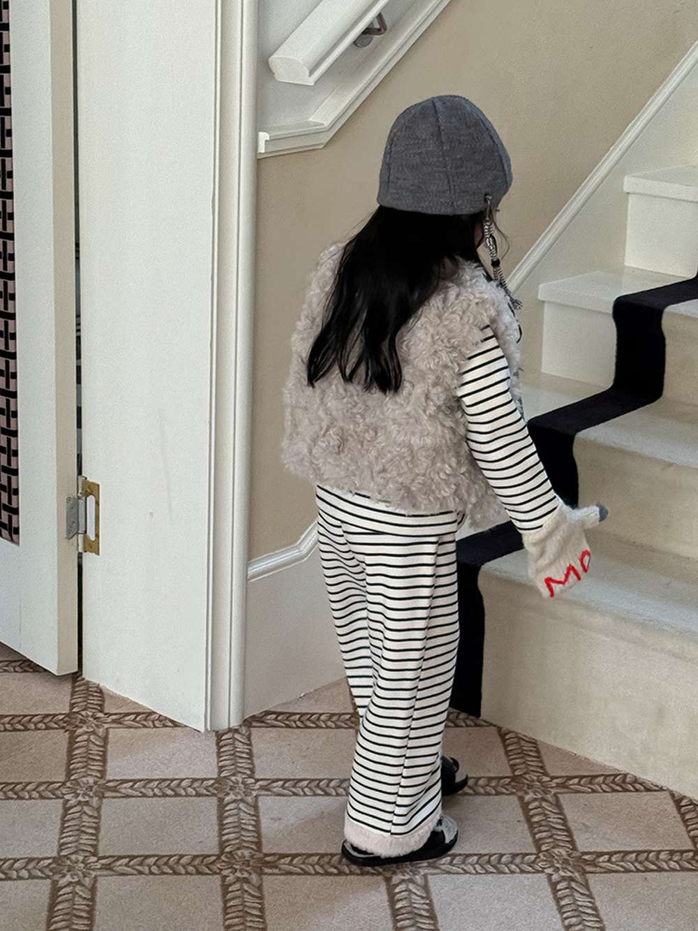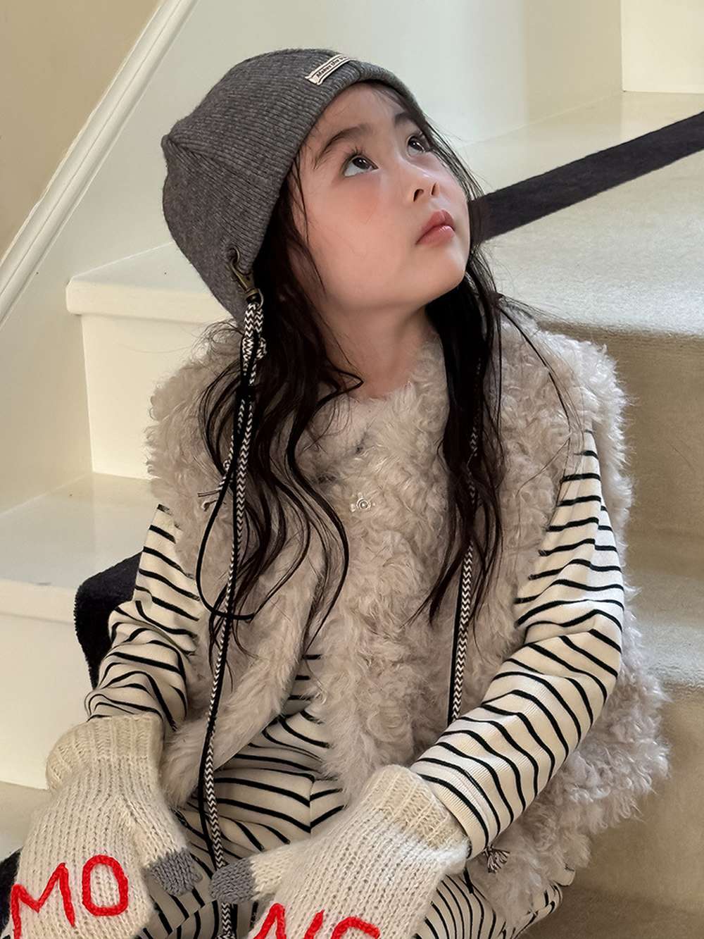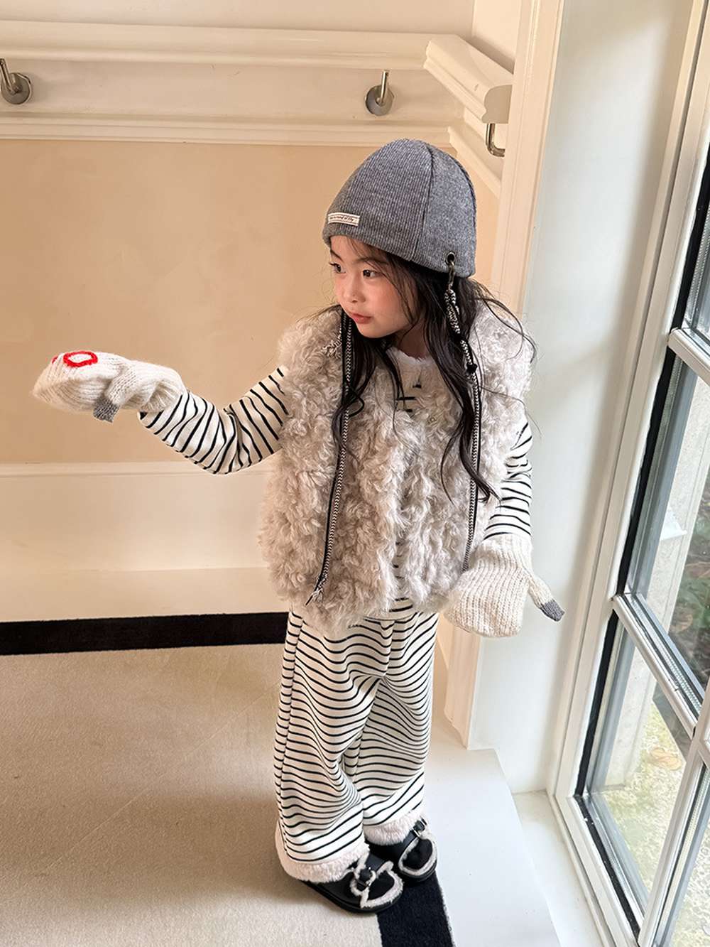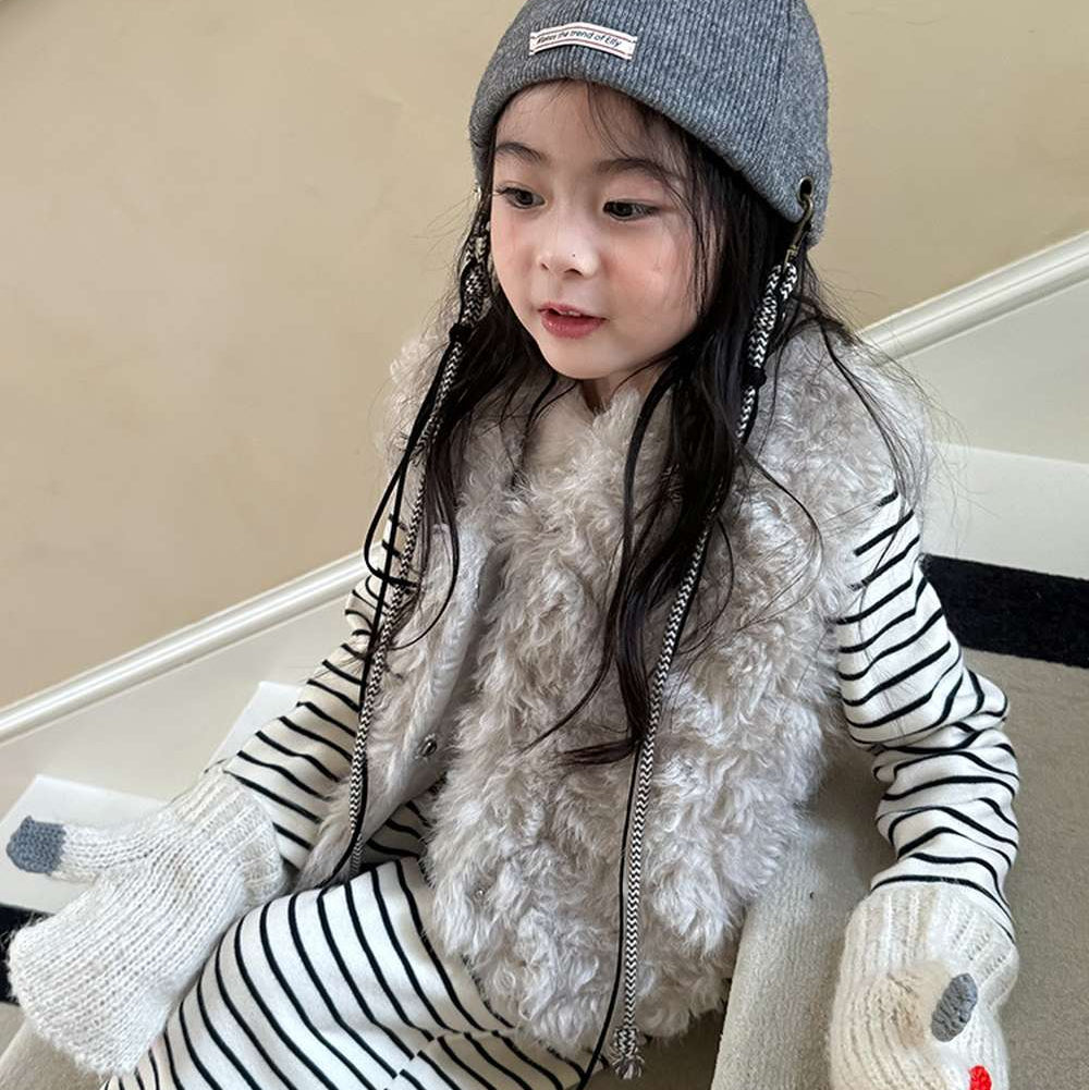 フェイクファーを使用したベストは、ふんわりとしたボアの質感が愛らしい子ども服のトップスです。中綿入りで暖かく、気軽に羽織るだけでおしゃれな防寒対策が叶います。ややAラインのプリンセスラインが、カジュアルな中に上品な雰囲気を演出し、いつものコーディネートを格上げするファーベストです。