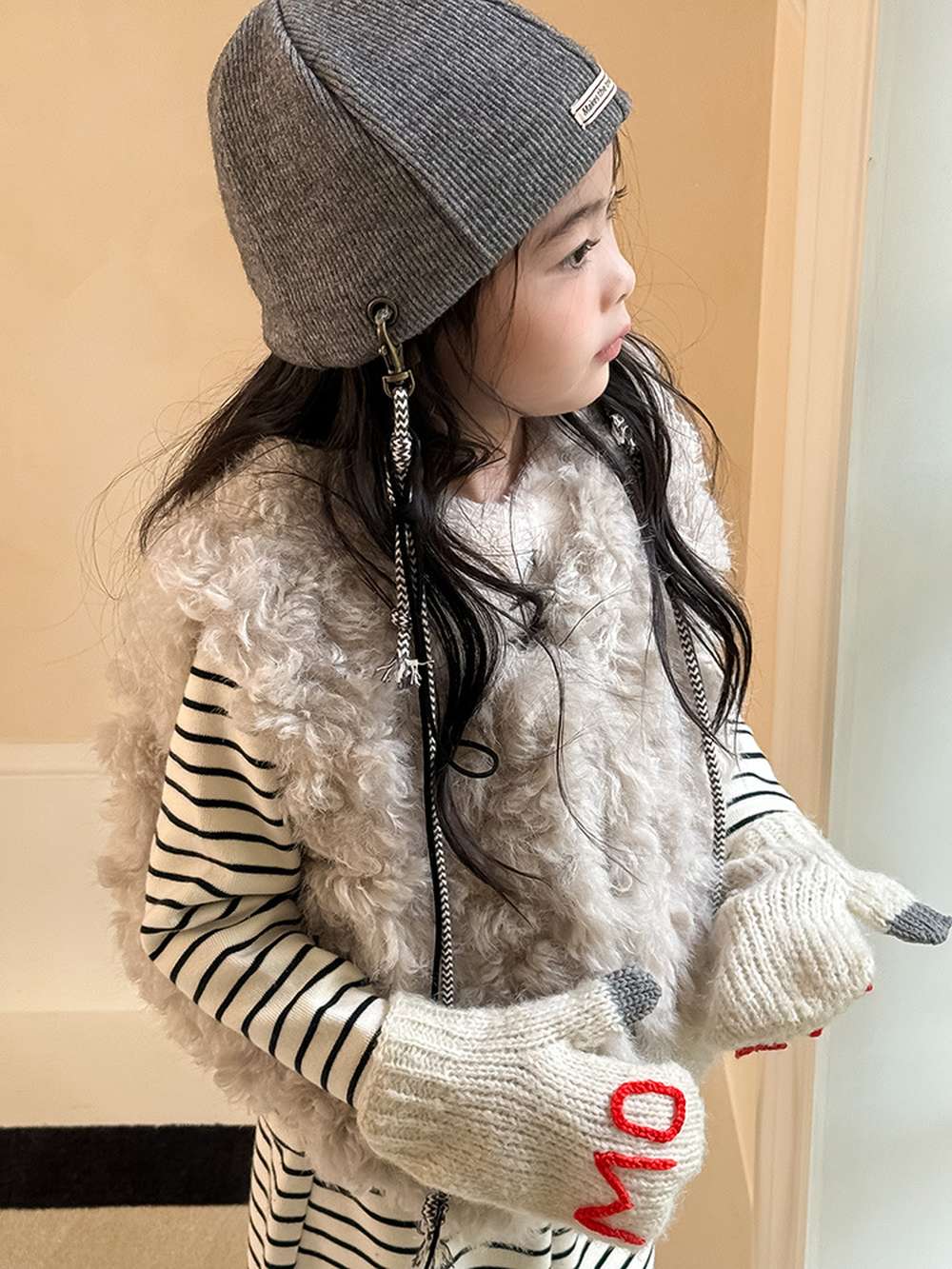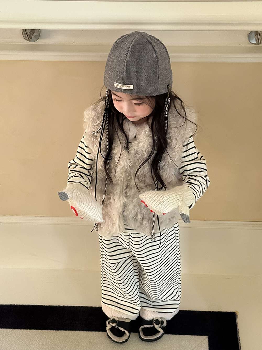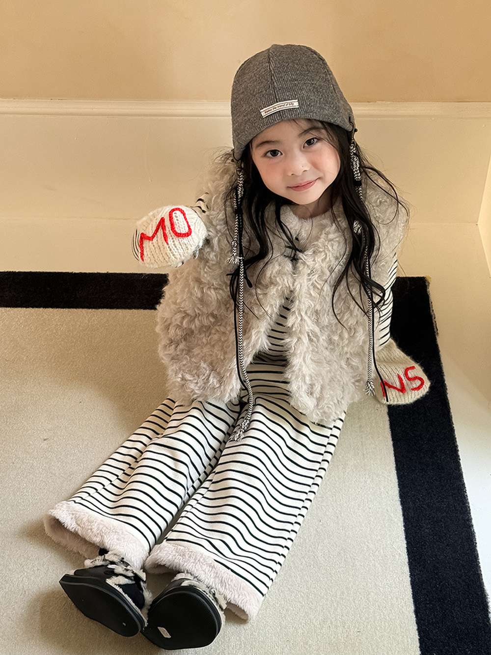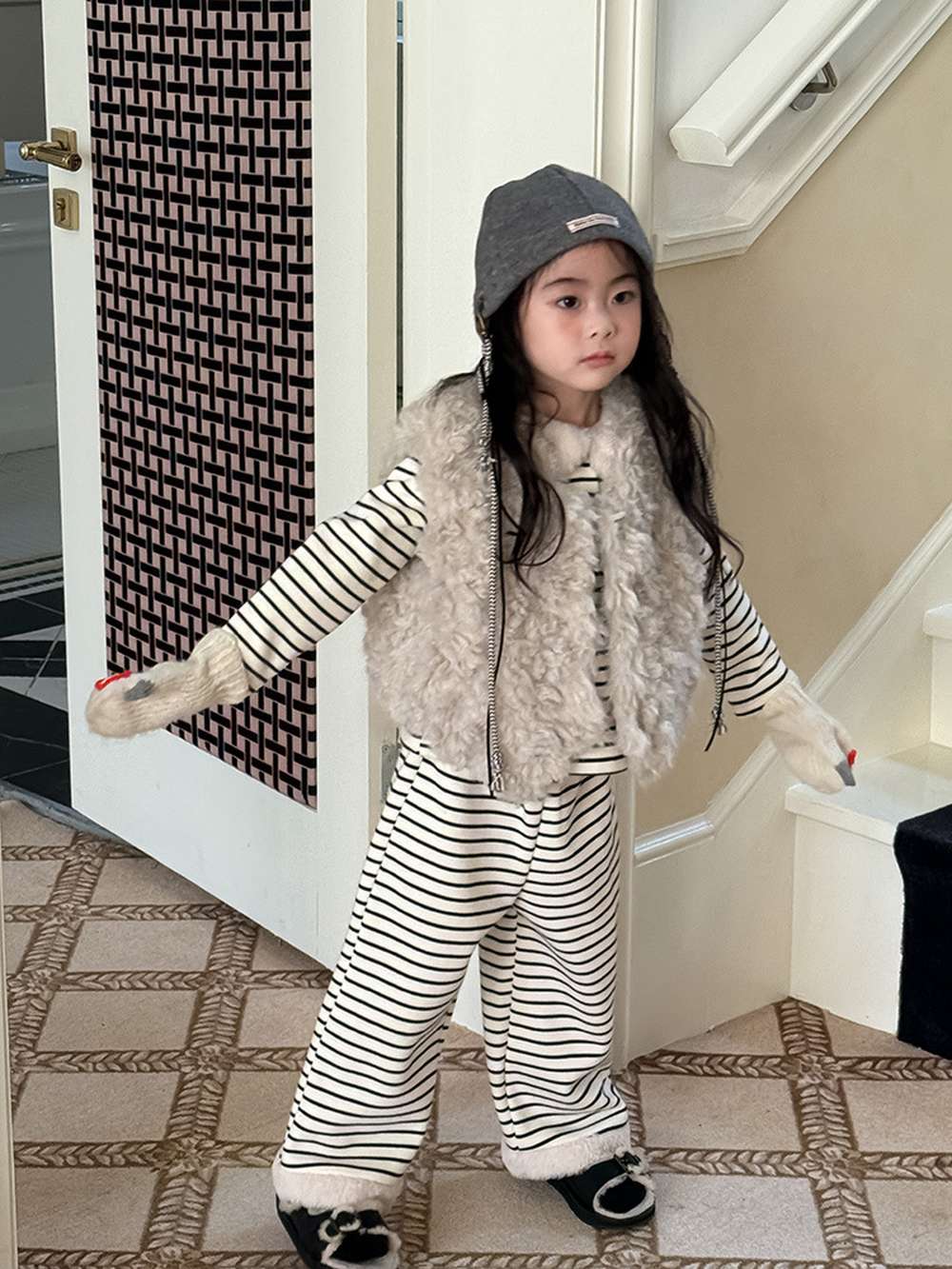 フェイクファーを使用したベストは、ふんわりとしたボアの質感が愛らしい子ども服のトップスです。中綿入りで暖かく、気軽に羽織るだけでおしゃれな防寒対策が叶います。ややAラインのプリンセスラインが、カジュアルな中に上品な雰囲気を演出し、いつものコーディネートを格上げするファーベストです。