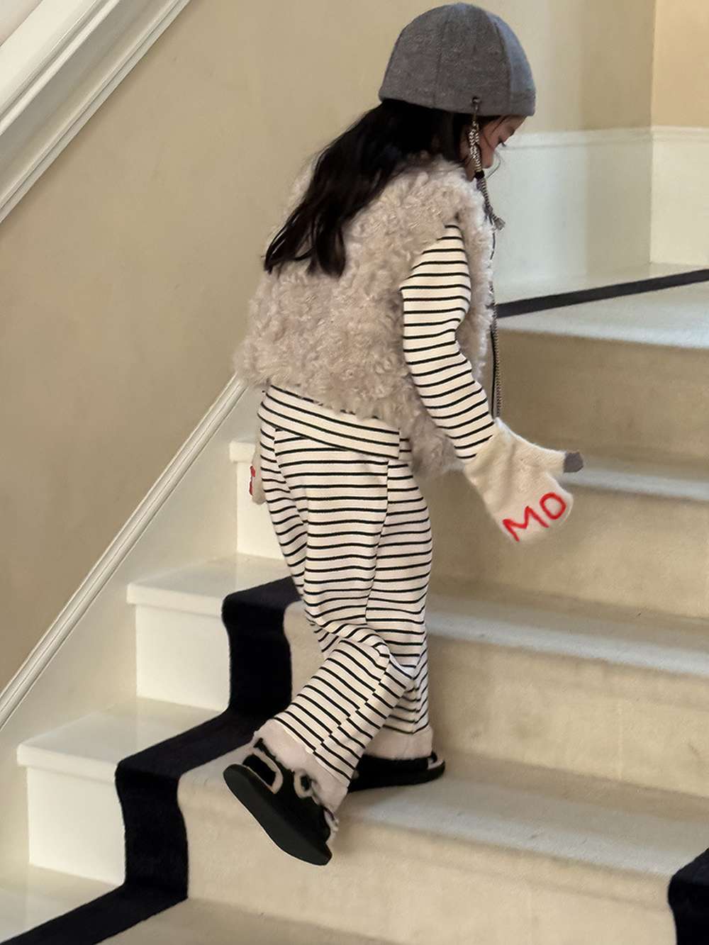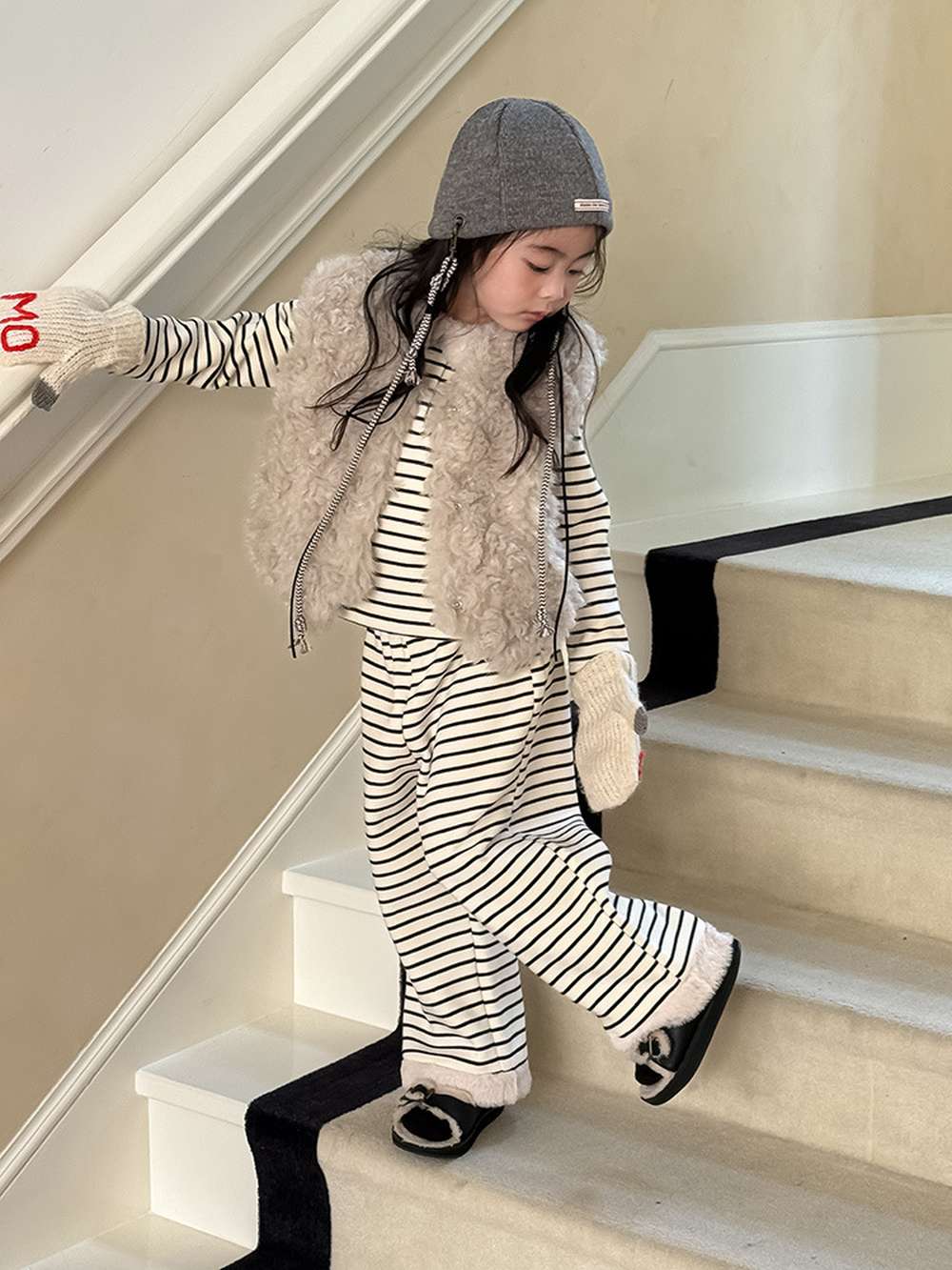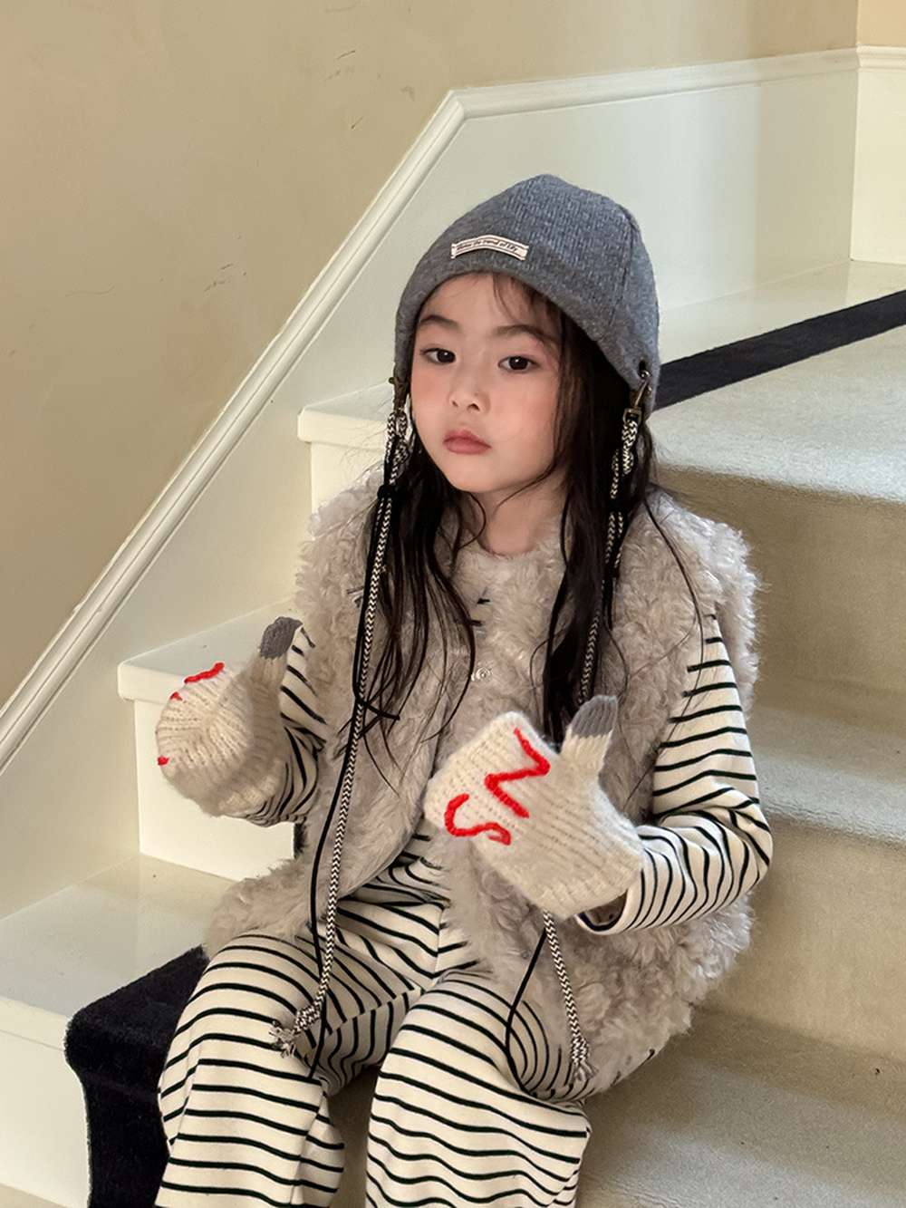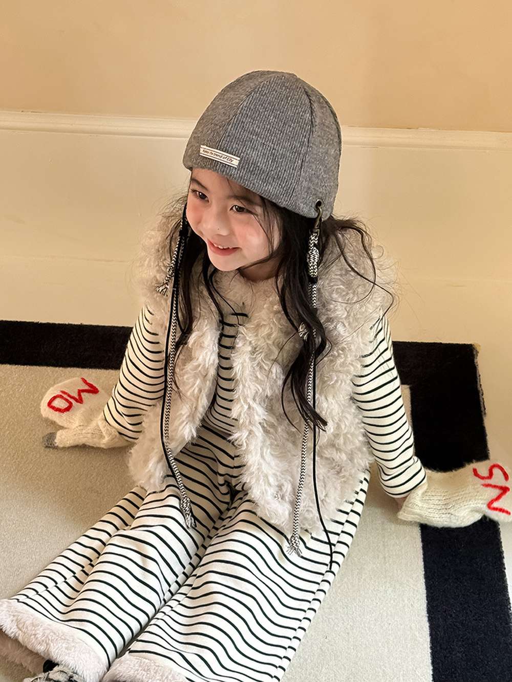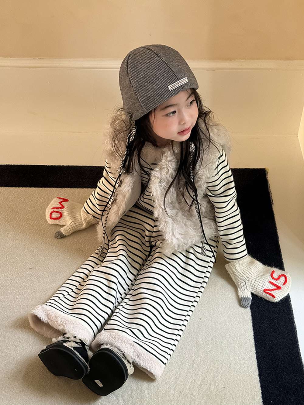 フェイクファーを使用したベストは、ふんわりとしたボアの質感が愛らしい子ども服のトップスです。中綿入りで暖かく、気軽に羽織るだけでおしゃれな防寒対策が叶います。ややAラインのプリンセスラインが、カジュアルな中に上品な雰囲気を演出し、いつものコーディネートを格上げするファーベストです。
