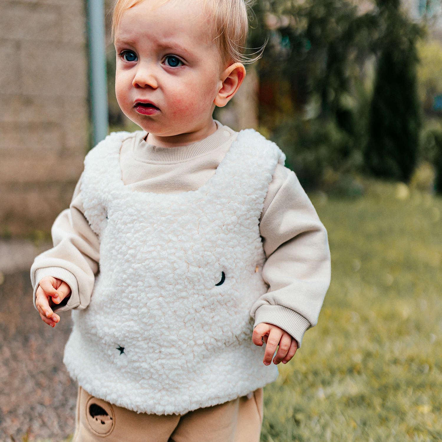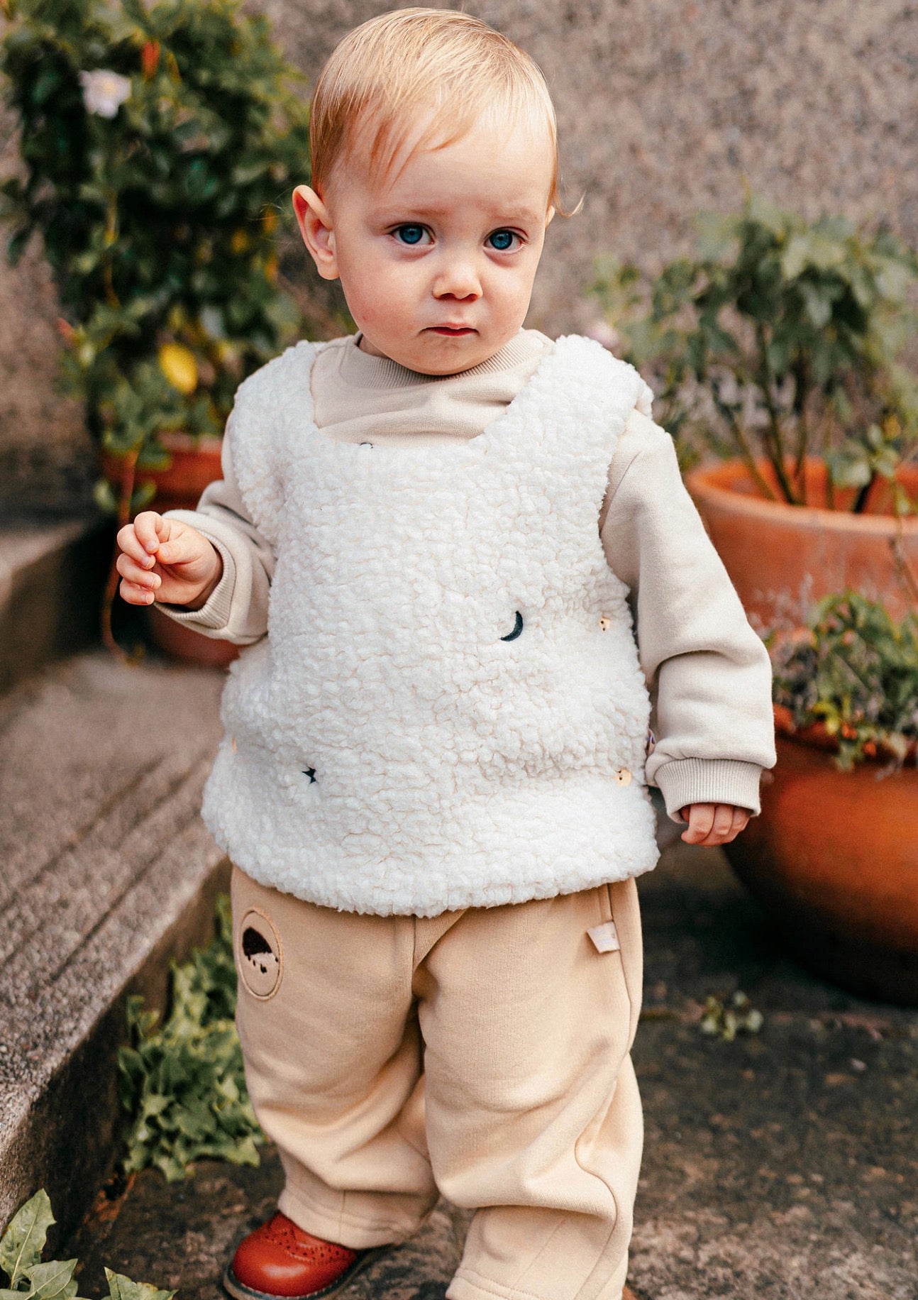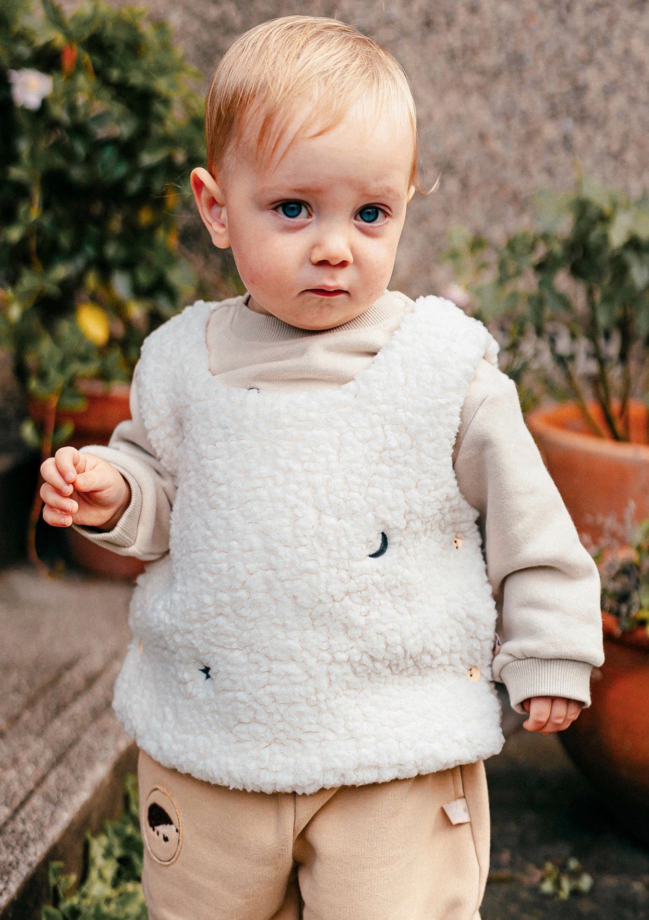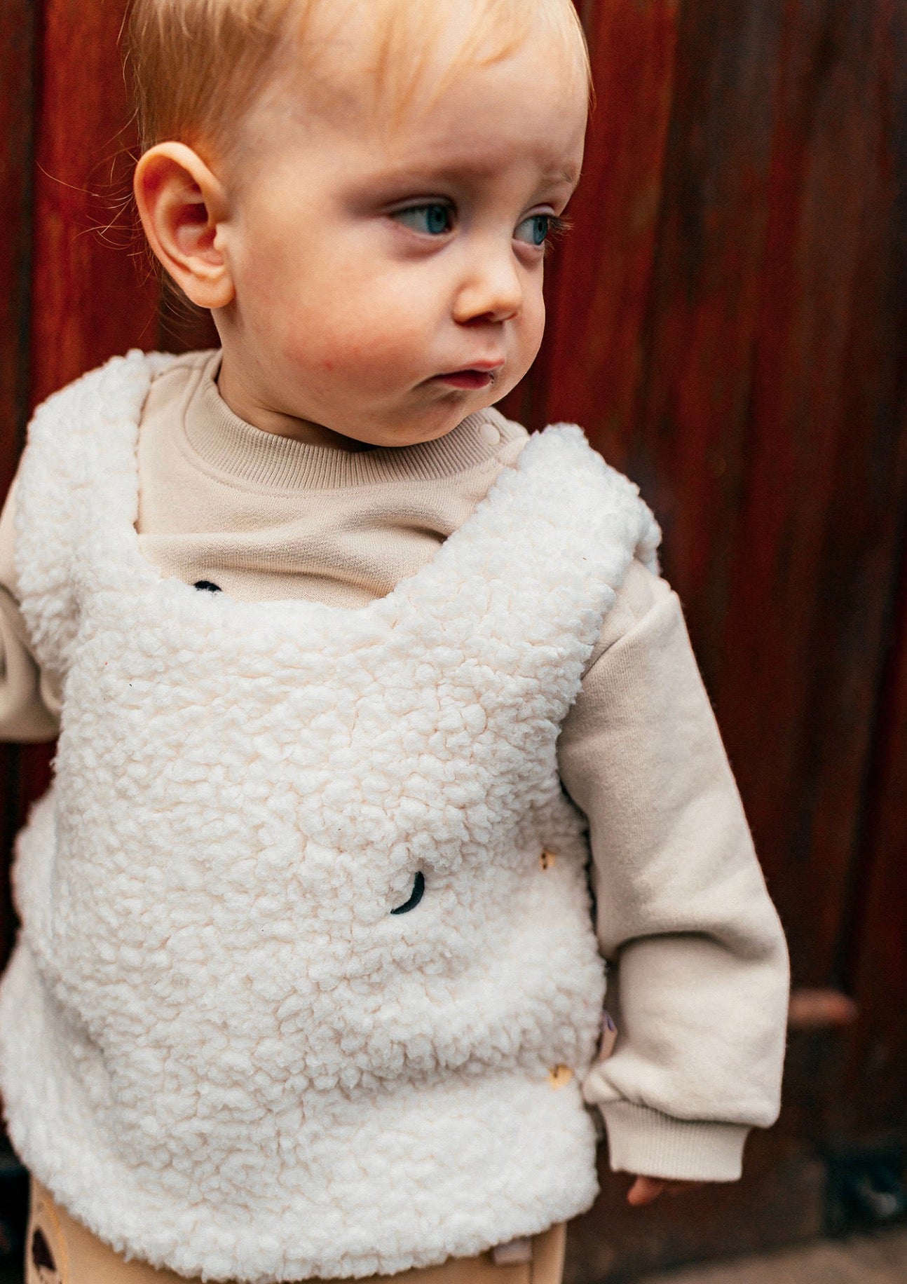 ボア素材を贅沢に使ったプルオーバータイプのノースリーブベストは、レイヤードスタイルを楽しむための洗練されたアウターです。肌触りが良く、暖かさも兼ね備えた生地が、カジュアルなコーディネートに柔らかな質感をプラスします。シンプルながらもおしゃれなデザインのトップスは、様々なインナーと合わせやすく、着回しの効くアイテムとして活躍します。