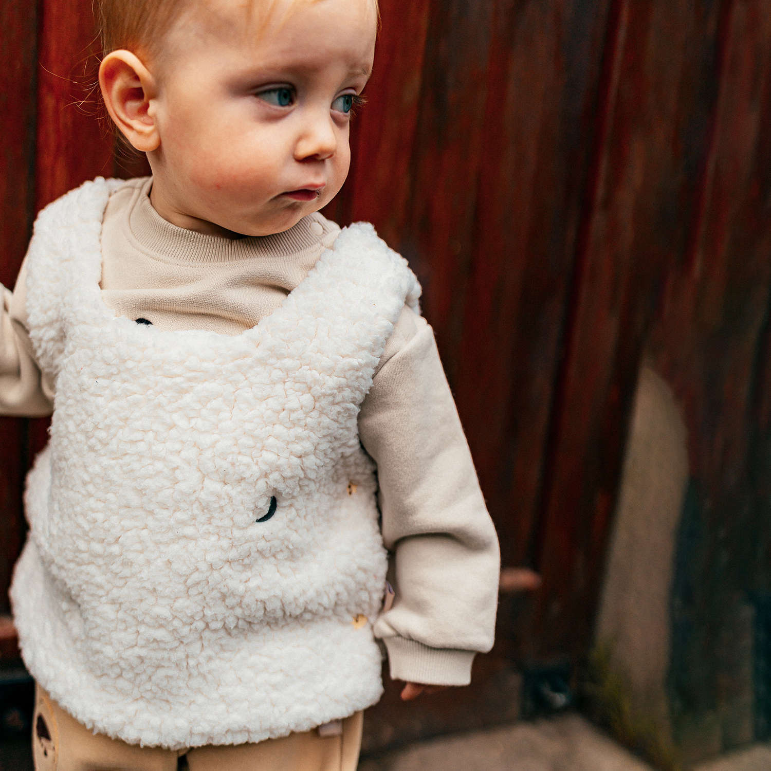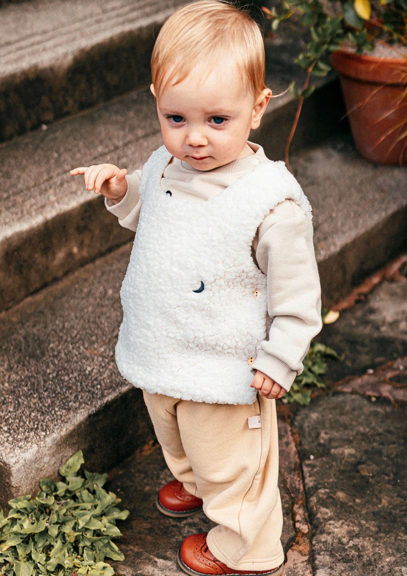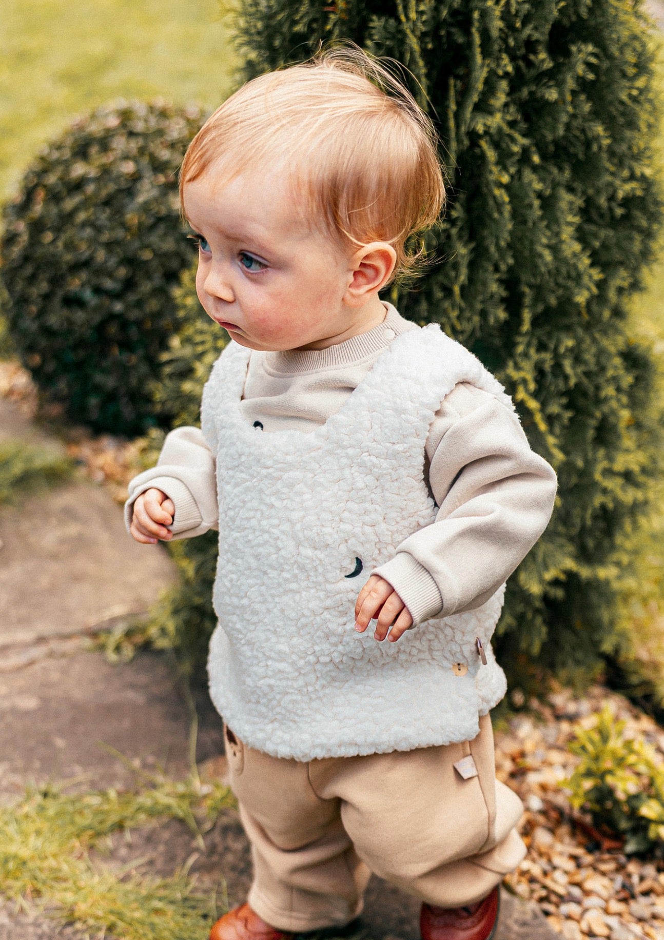 ボア素材を贅沢に使ったプルオーバータイプのノースリーブベストは、レイヤードスタイルを楽しむための洗練されたアウターです。肌触りが良く、暖かさも兼ね備えた生地が、カジュアルなコーディネートに柔らかな質感をプラスします。シンプルながらもおしゃれなデザインのトップスは、様々なインナーと合わせやすく、着回しの効くアイテムとして活躍します。