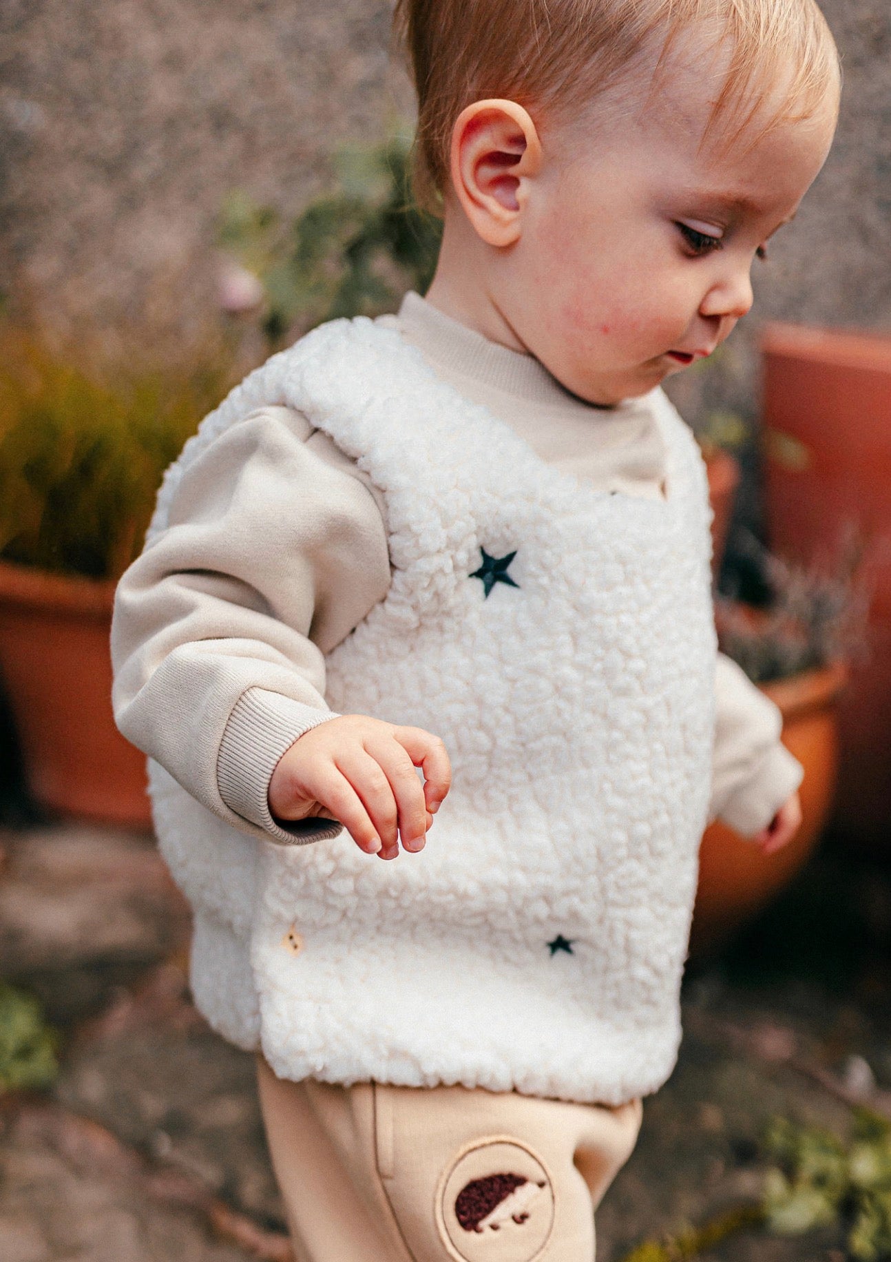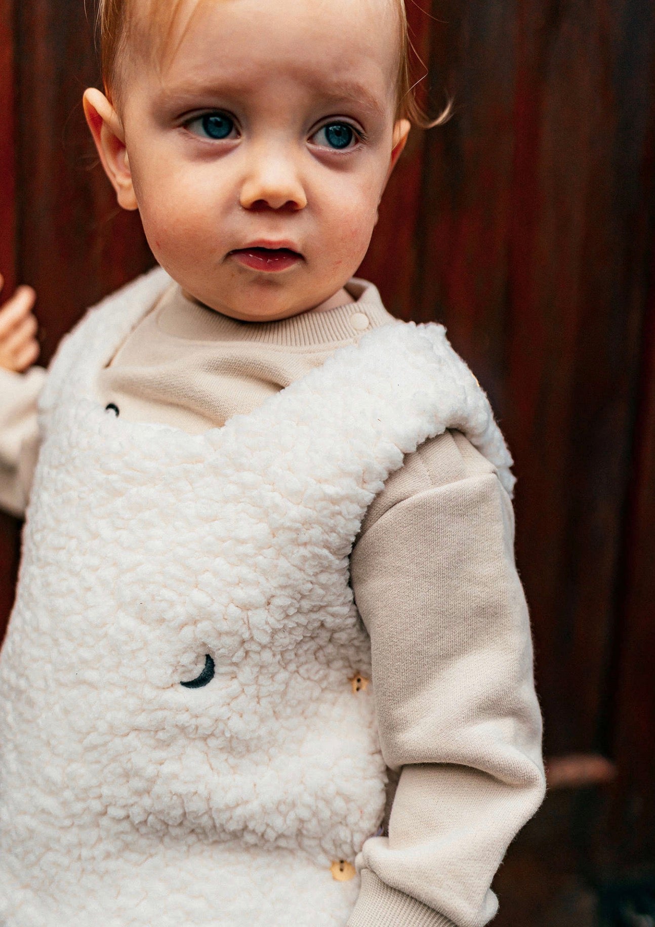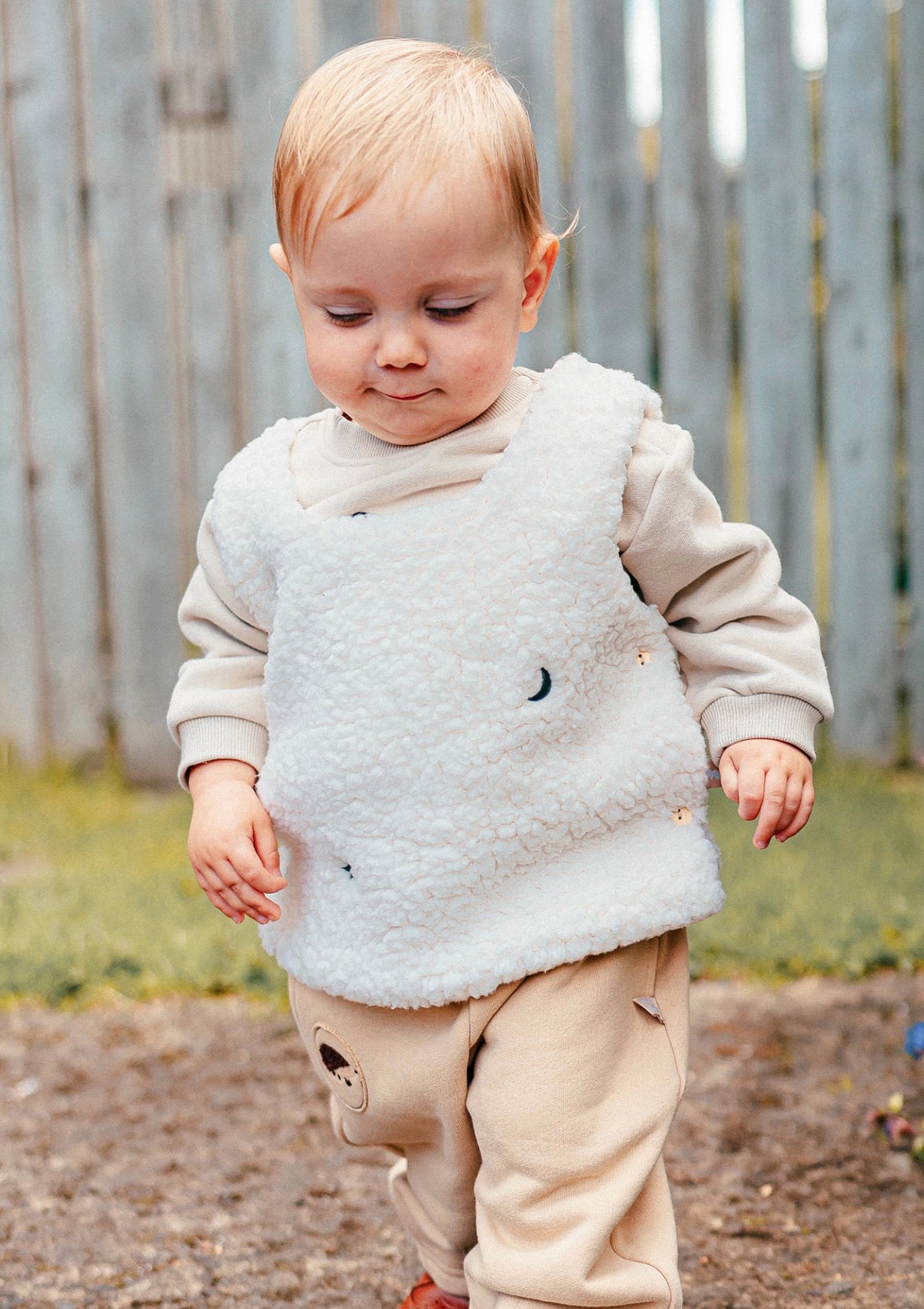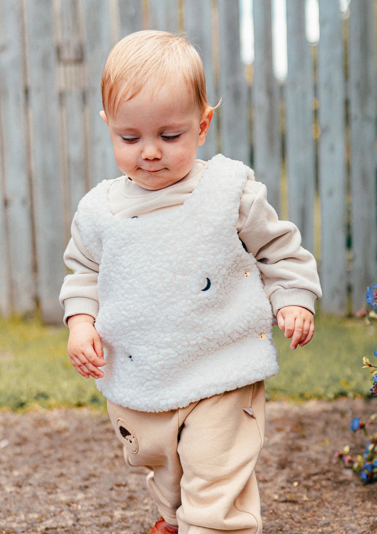 ボア素材を贅沢に使ったプルオーバータイプのノースリーブベストは、レイヤードスタイルを楽しむための洗練されたアウターです。肌触りが良く、暖かさも兼ね備えた生地が、カジュアルなコーディネートに柔らかな質感をプラスします。シンプルながらもおしゃれなデザインのトップスは、様々なインナーと合わせやすく、着回しの効くアイテムとして活躍します。