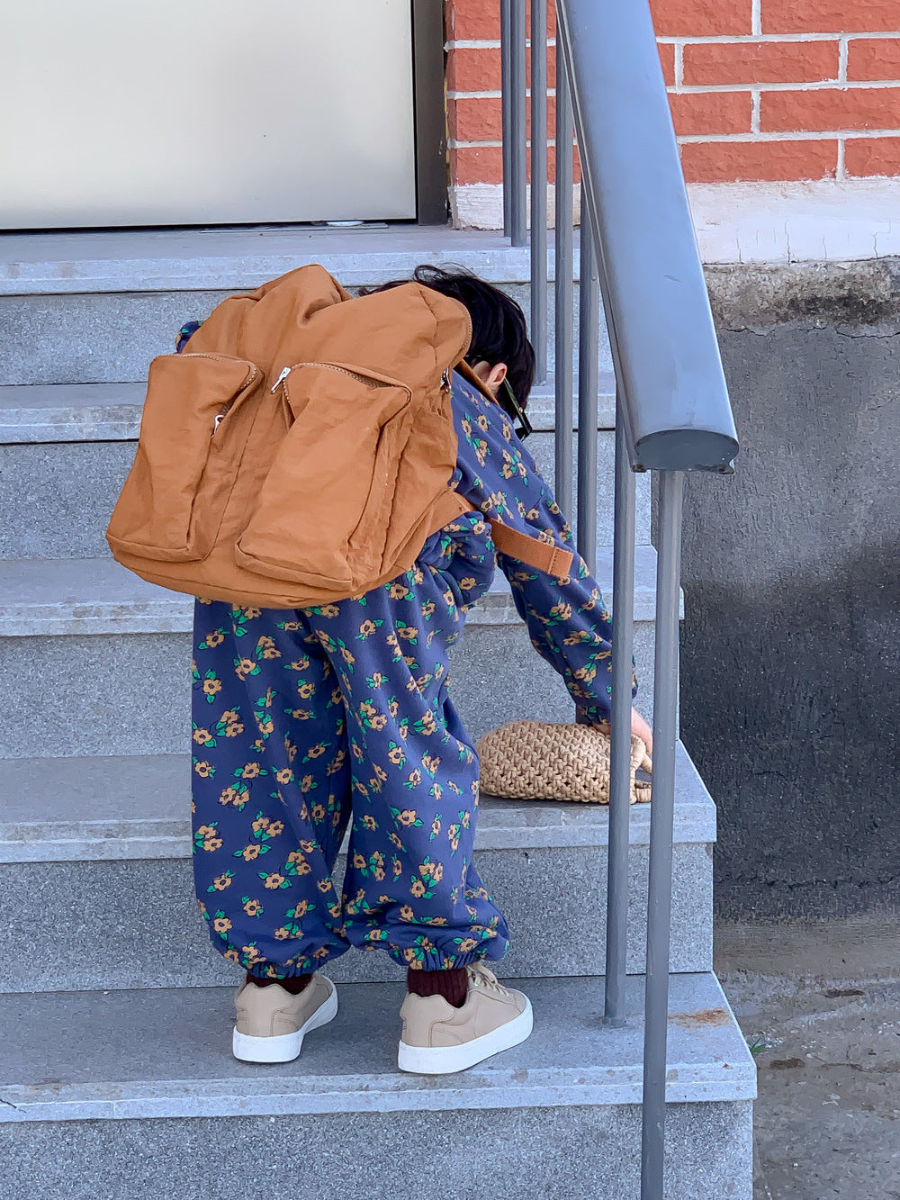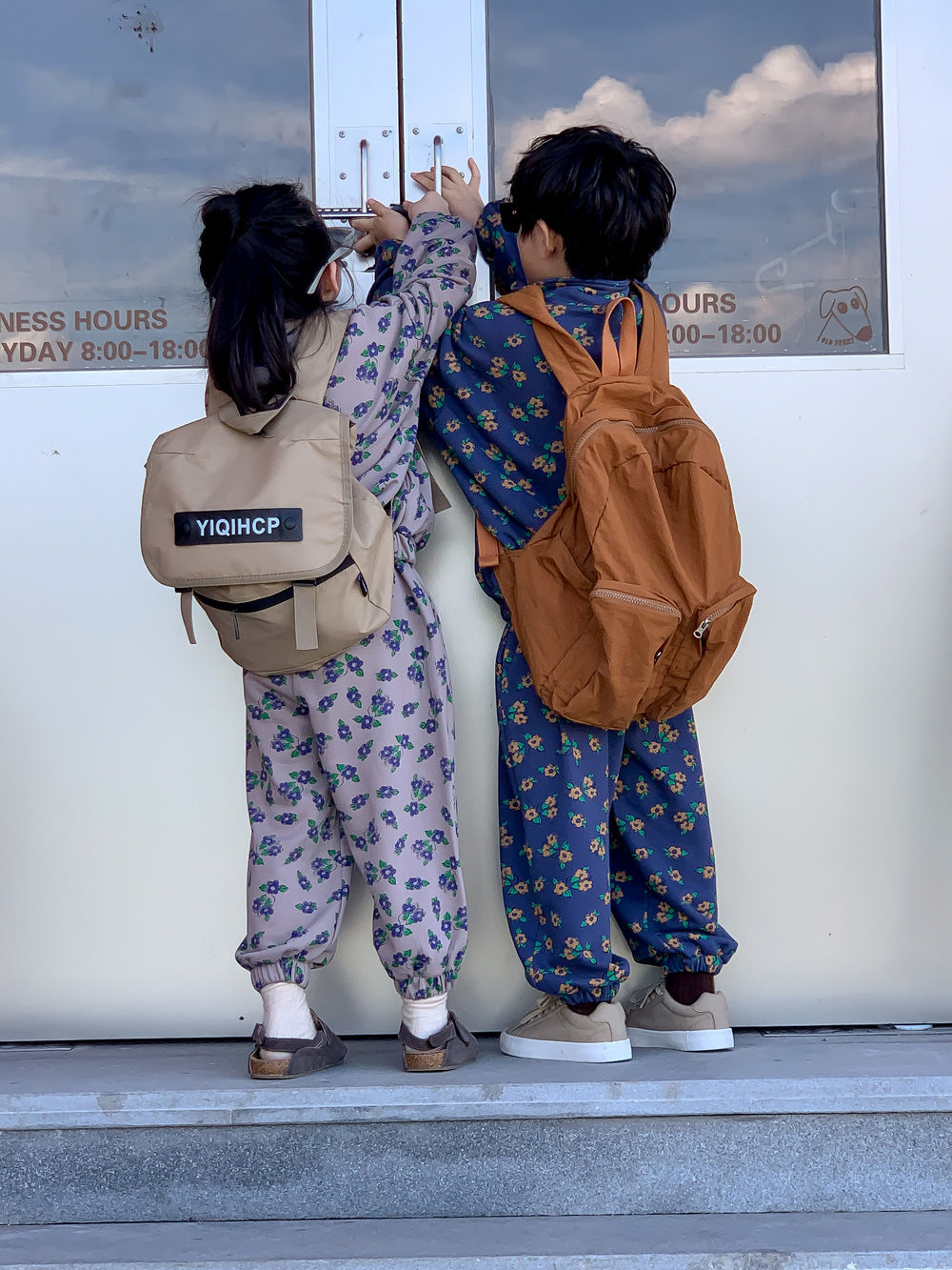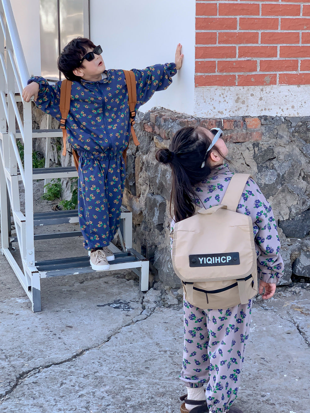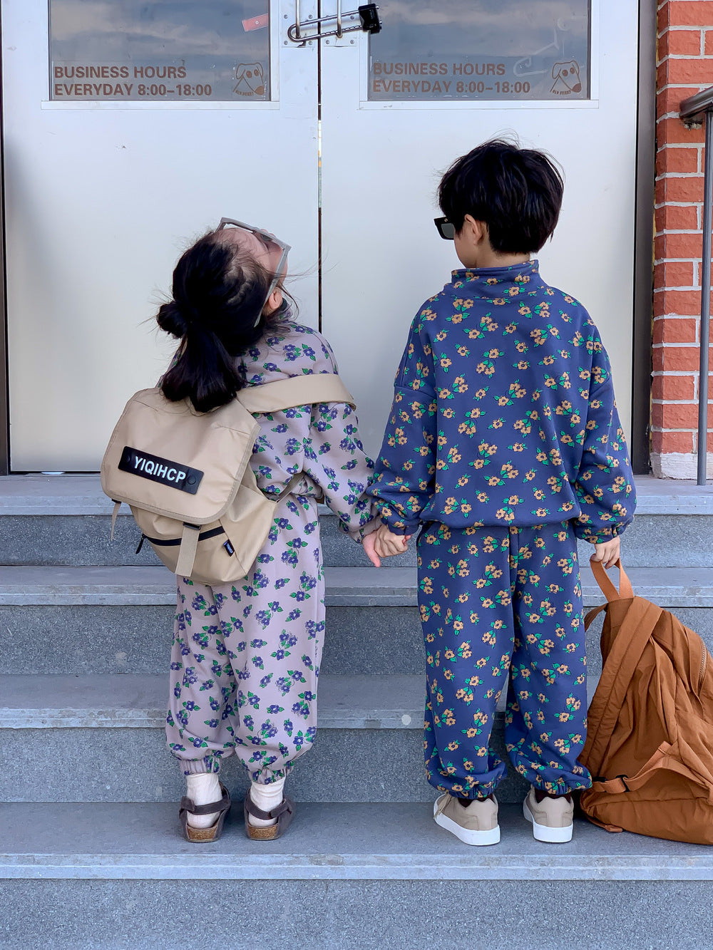 総柄のフラワープリントが目を惹くキッズセットアップは、お出かけが楽しくなる華やかなトラックスーツです。さらりとした着心地のジャケットはファスナー仕様で脱ぎ着しやすく、同柄のパンツとの組み合わせはトレンドのストリートスタイルを完成させます。カジュアルながらもデザイン性の高いこの子ども服のツーピースセットは、活発に動くお子様のデイリーウェアとして、また写真映えする特別な装いとしても活躍します。
