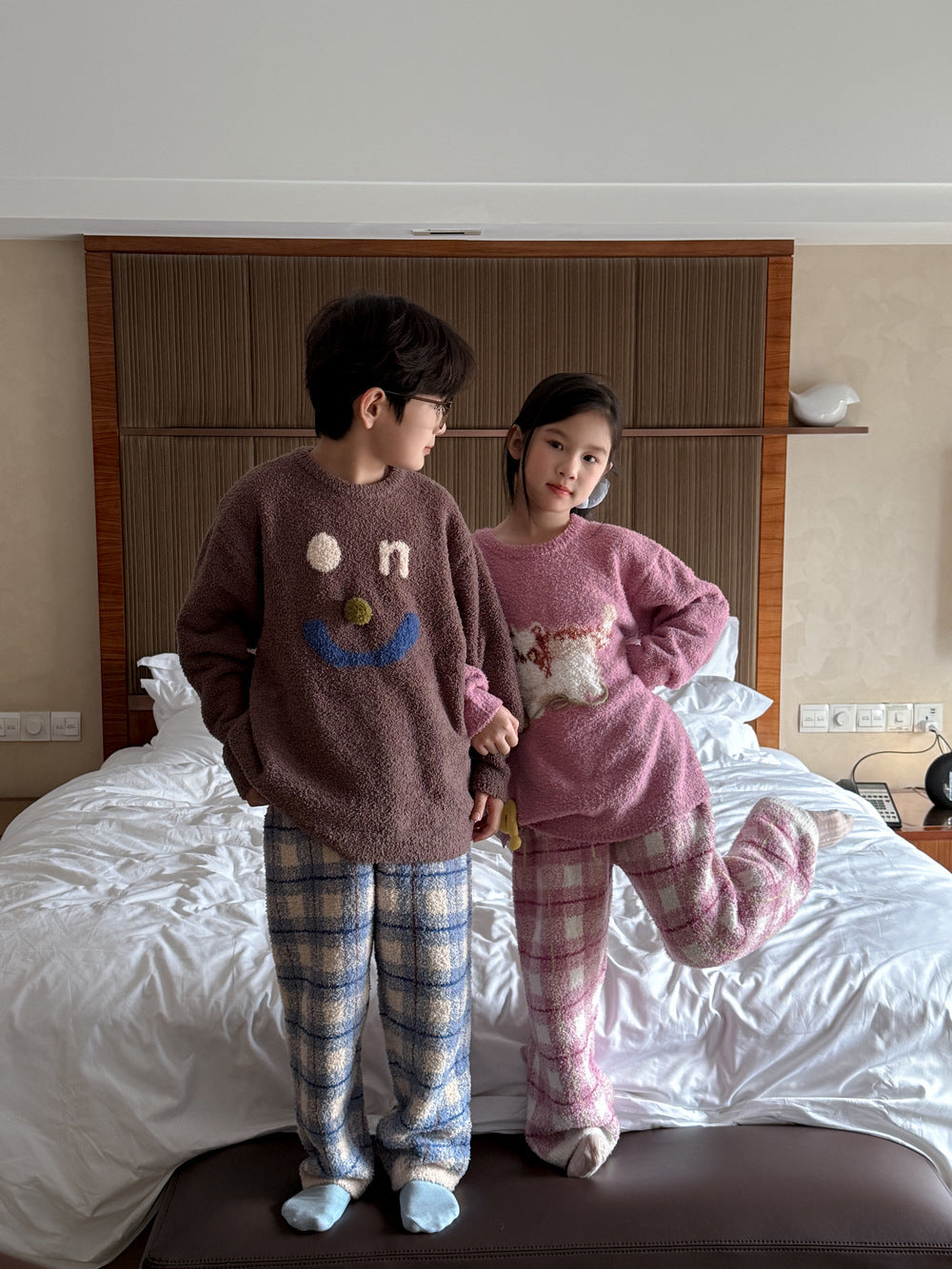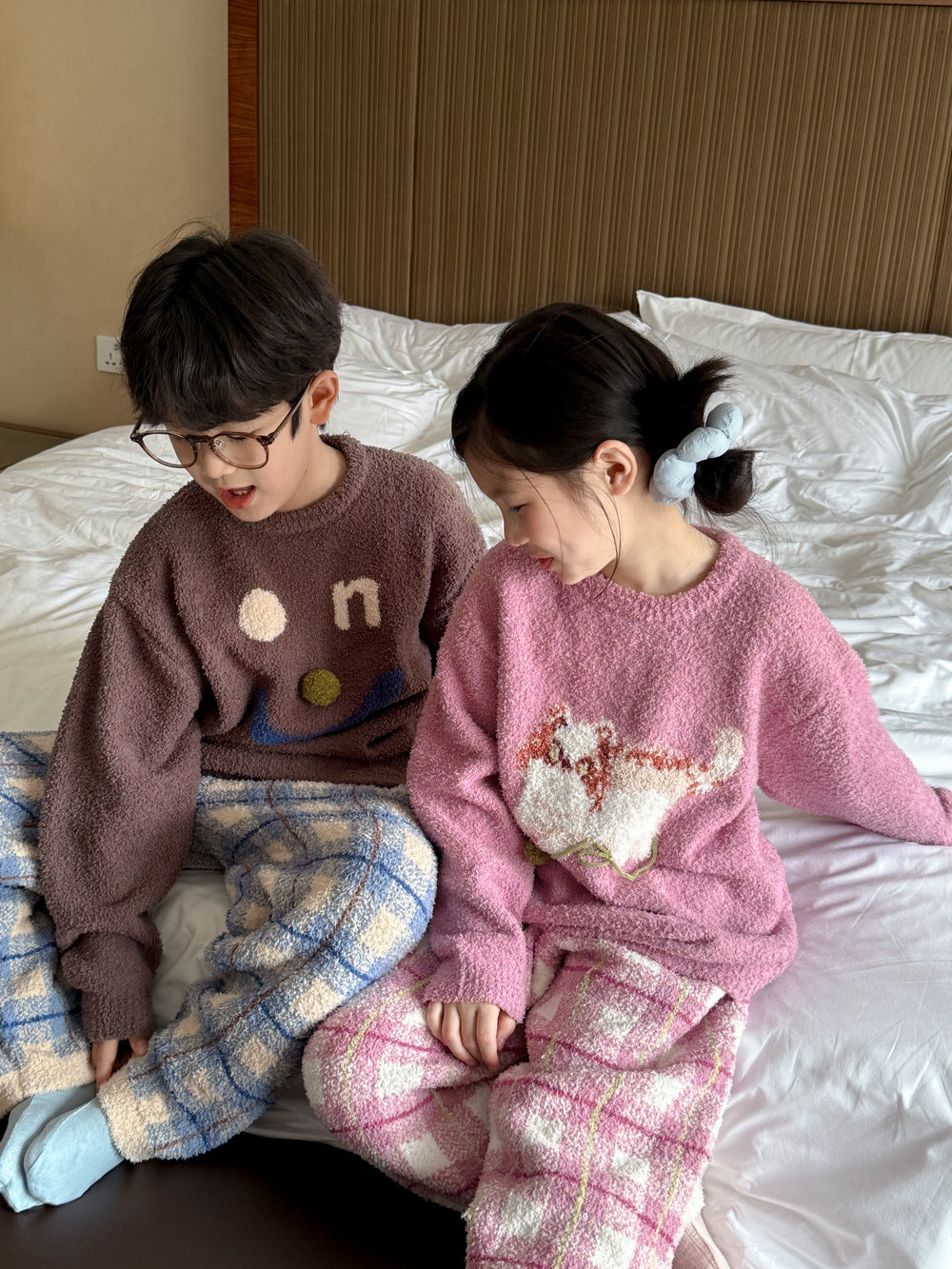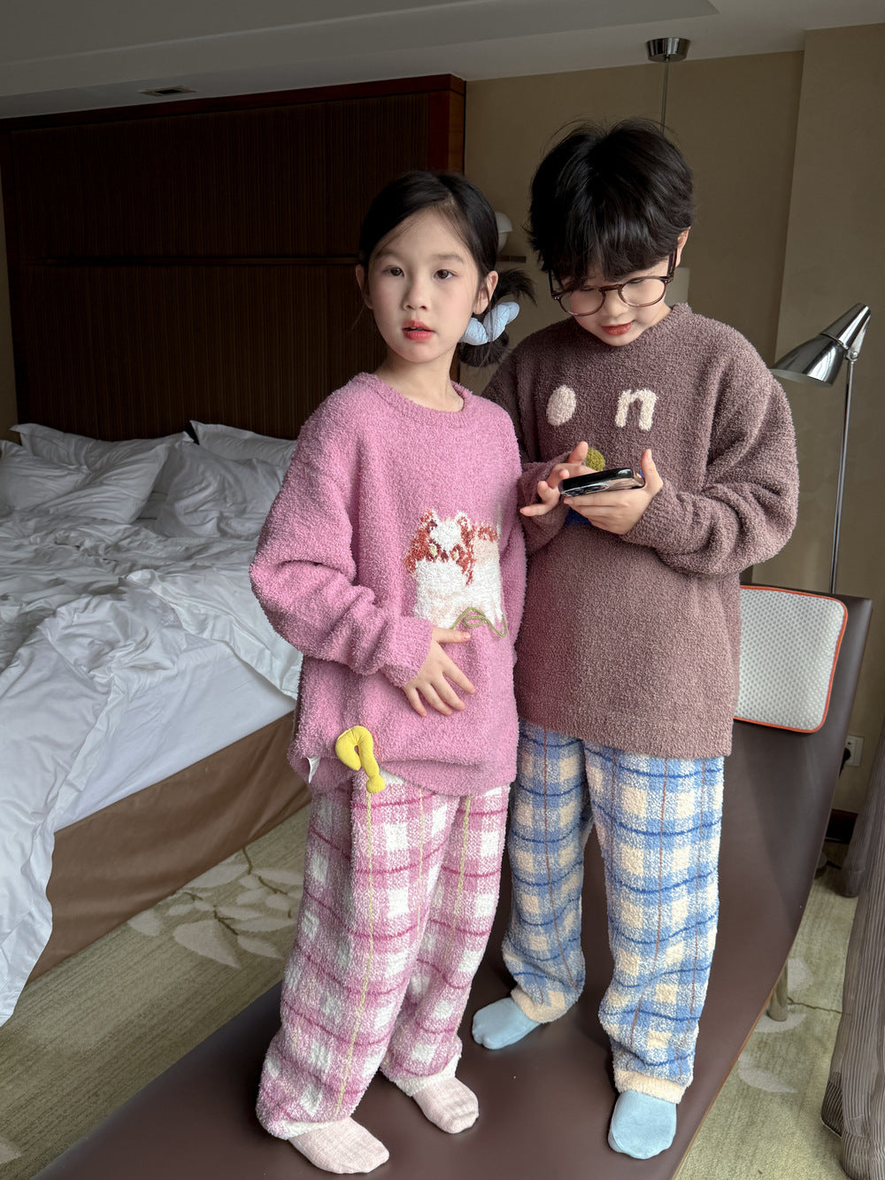 パジャマ キッズ モコモコ 裏起毛 厚手 セットアップ チェック柄 ルームウェア【mh0011660】
