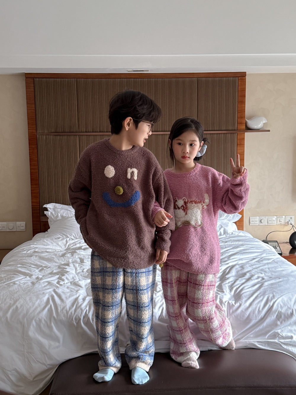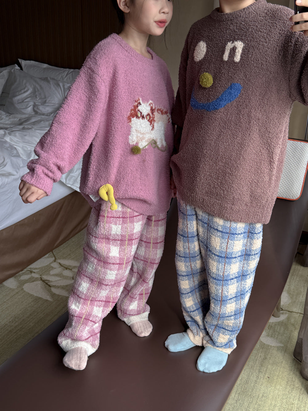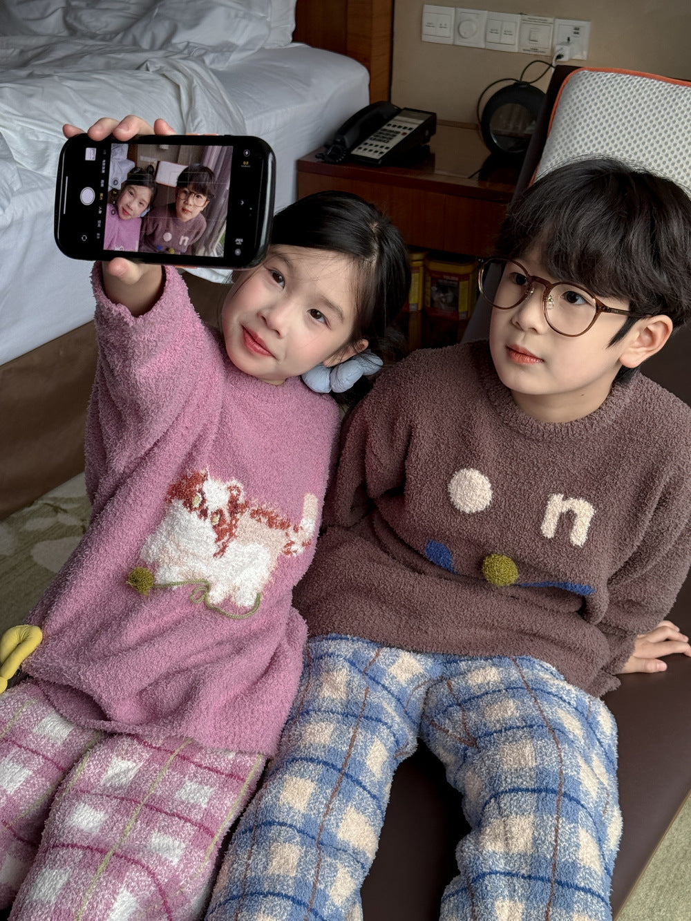 パジャマ キッズ モコモコ 裏起毛 厚手 セットアップ チェック柄 ルームウェア【mh0011660】