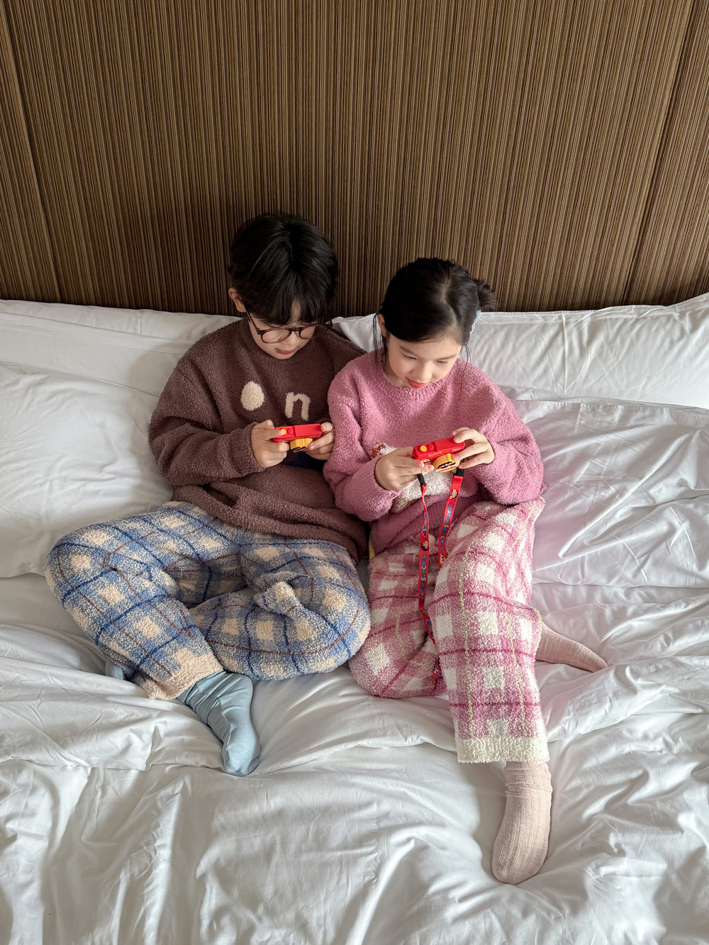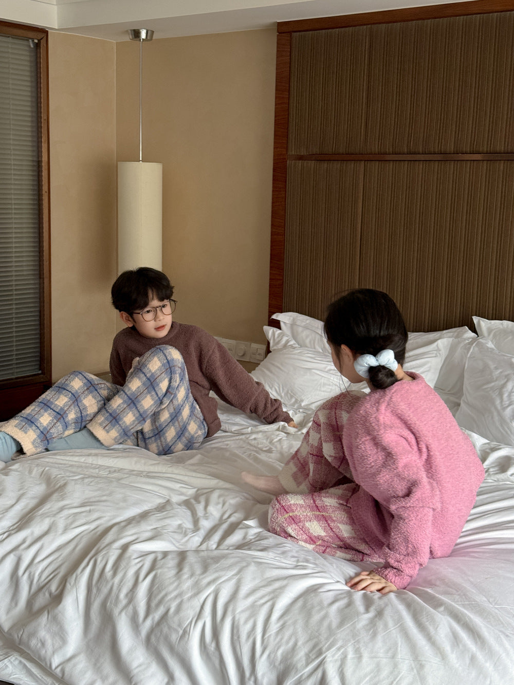 肌触り柔らかな裏起毛素材が冷える夜でもベビーやキッズの身体を優しく包み込むセットアップのルームウェア。トレンドのチェック柄とモコモコ感が愛らしいデザインは、おうち時間を格上げするおしゃれな子ども服として活躍します。袖を通すたびに気分が上がるパジャマは、快適な着心地で心地よい眠りをサポートし、毎日のナイトルーティンを特別なものにしてくれます。