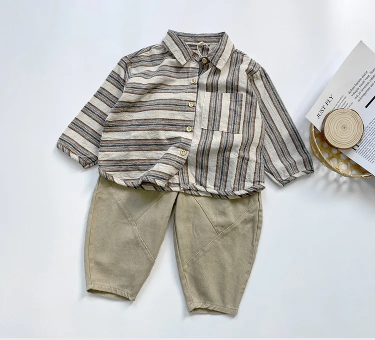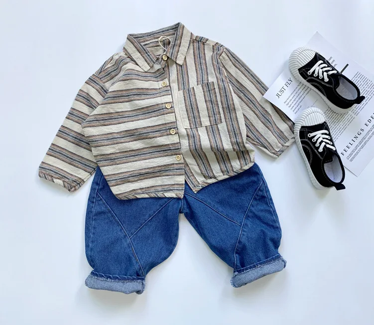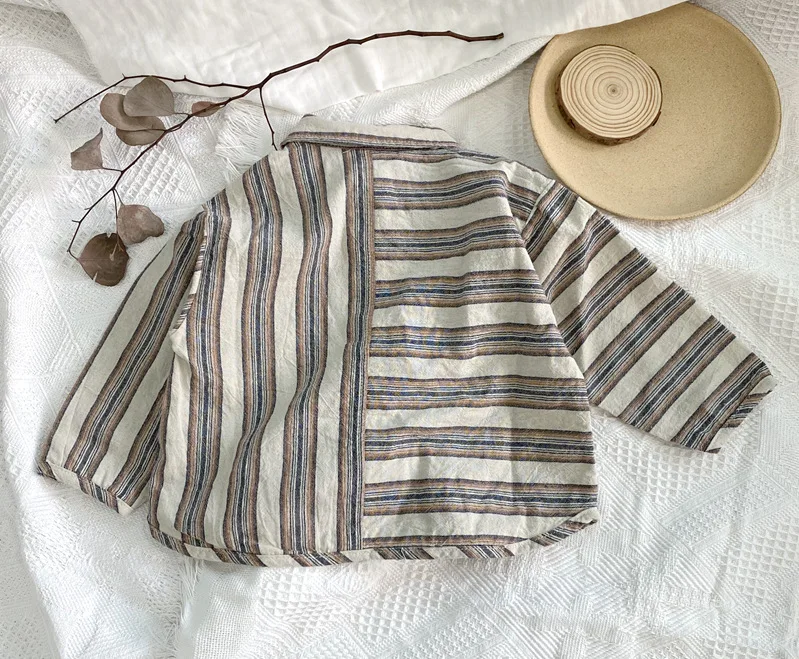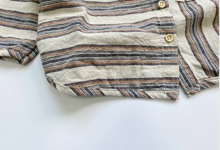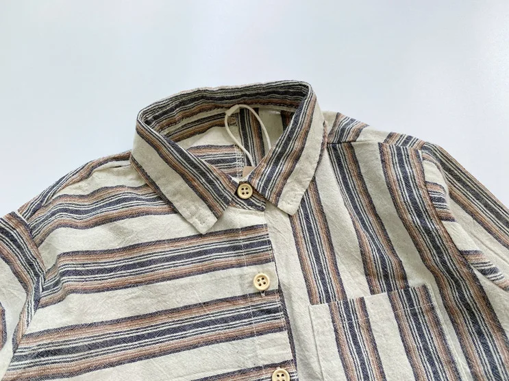 キッズ パッチワーク ボーダー ストライプ 長袖 シャツ トップス