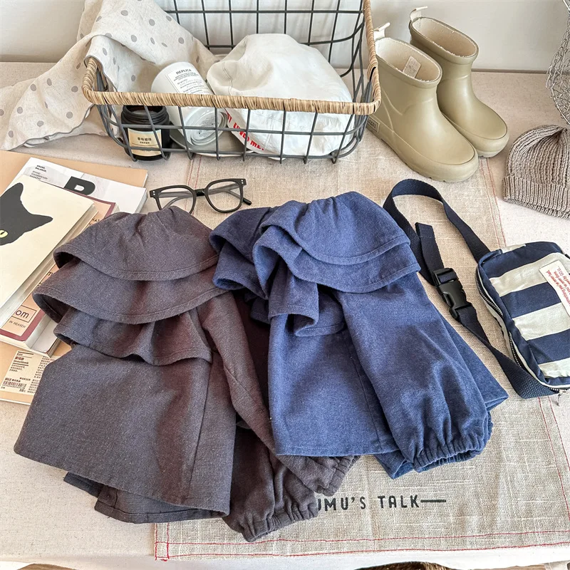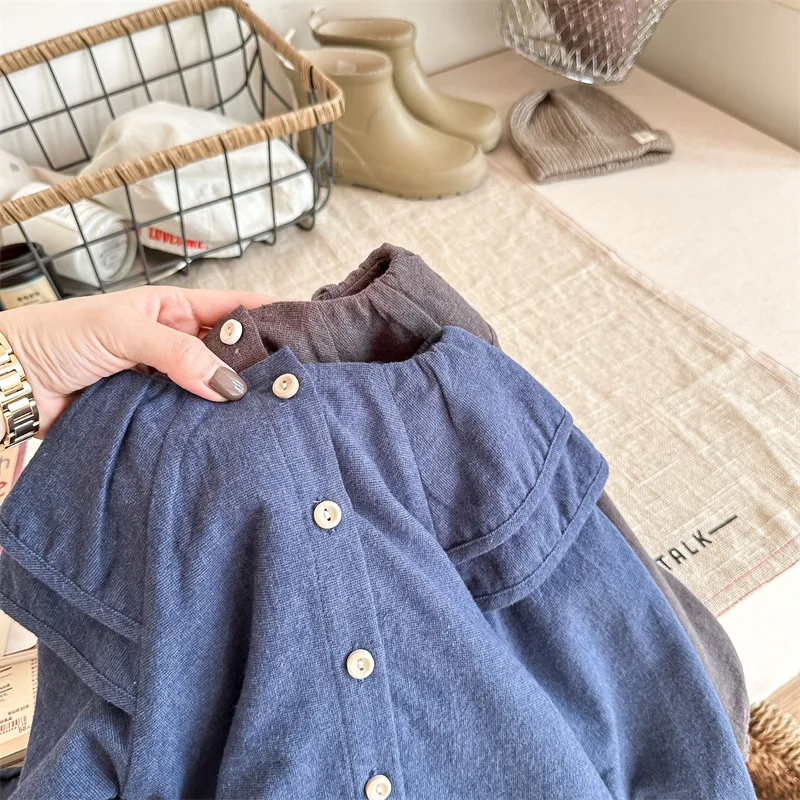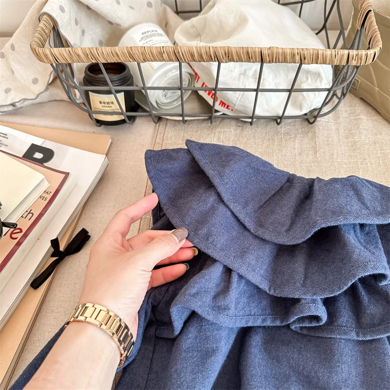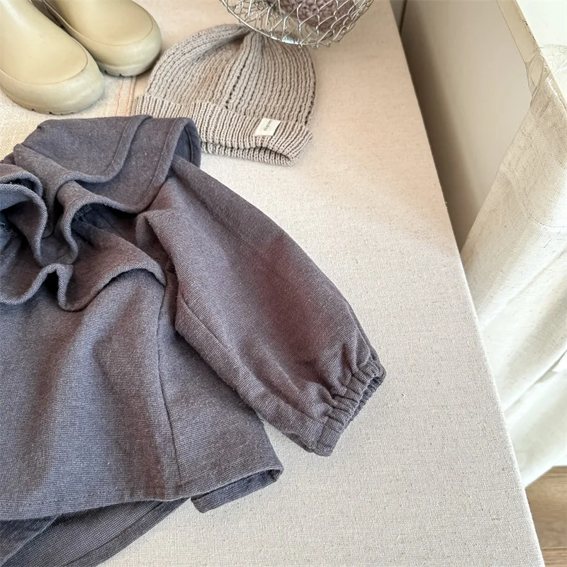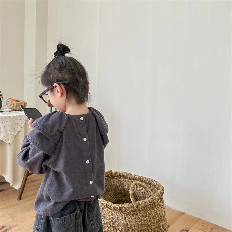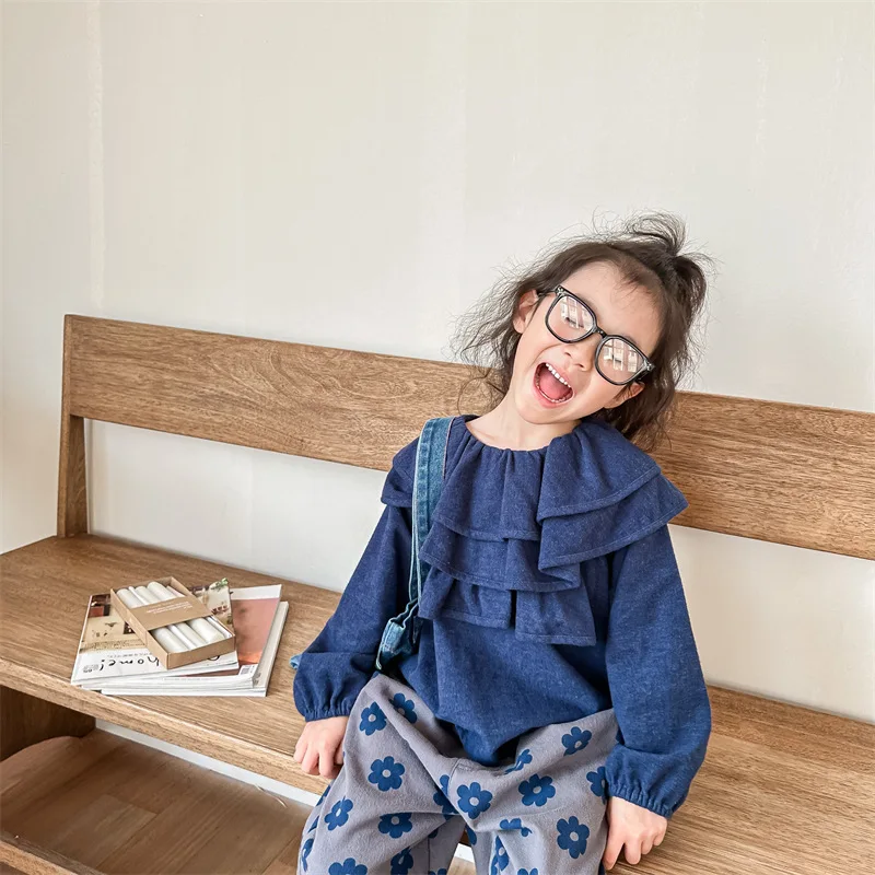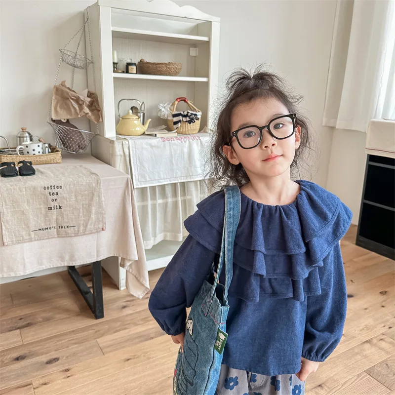 キッズ ラッフルフリル ビッグカラー 長袖 スモック チュニック ブラウス トップス ガールズ