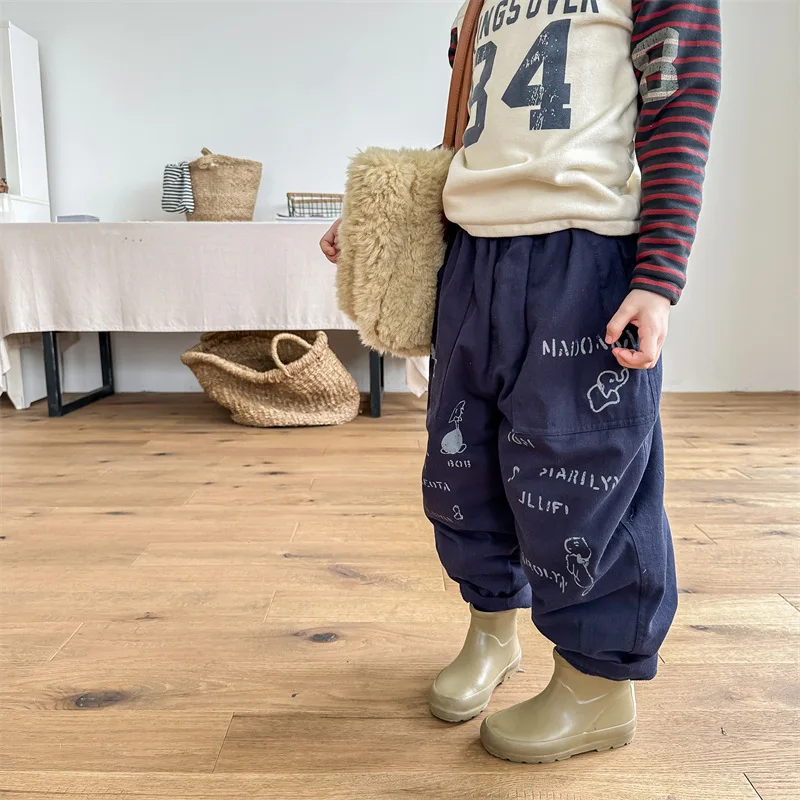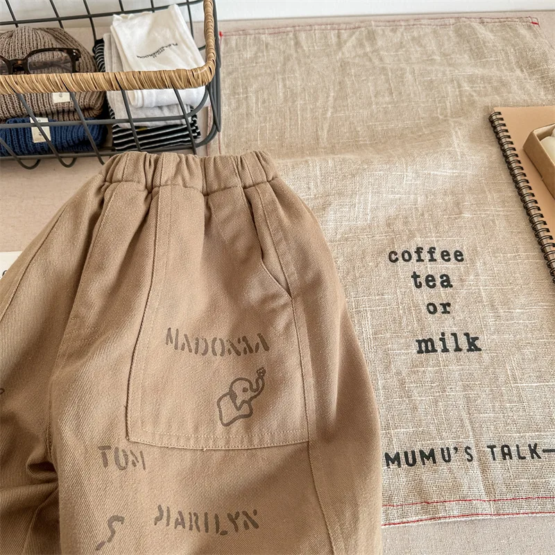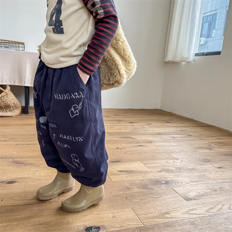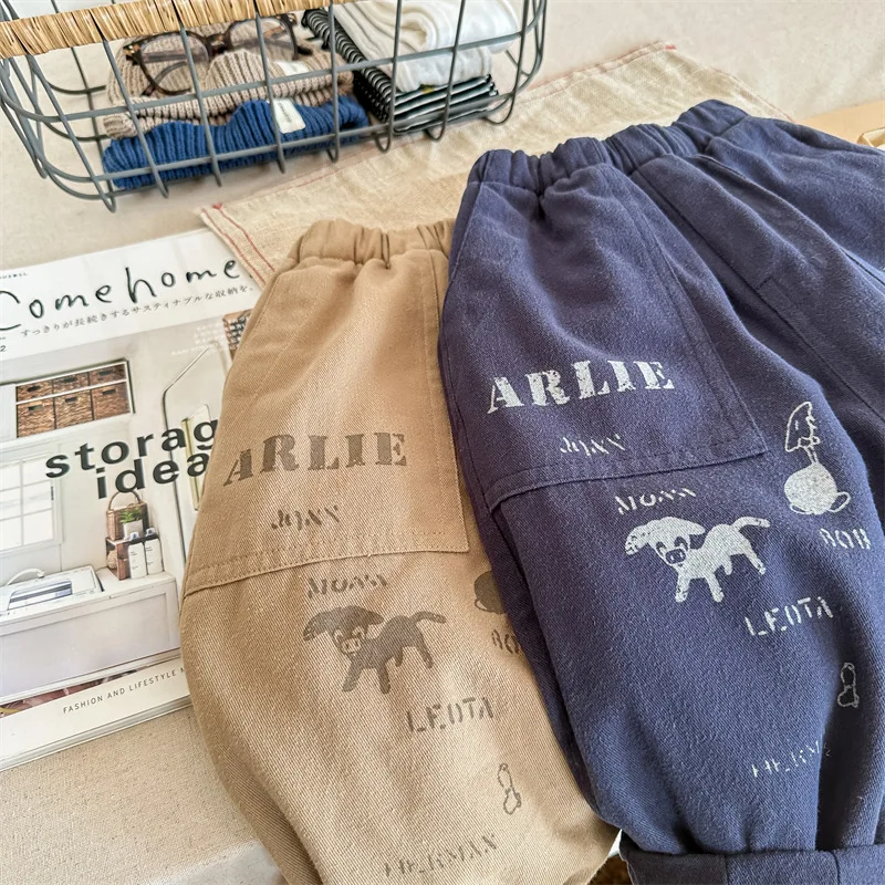 新作キッズパンツが登場しました!寒い季節にぴったりの裏フリース仕様で、お子様の足元を暖かく包みます。アニマルプリントがカワイイ2カラーから選べ、ボーイズ(男の子)にぴったりのデザインです。お子様の活発な動きにも対応するロングパンツで、あらゆる冒険に出かけましょう!