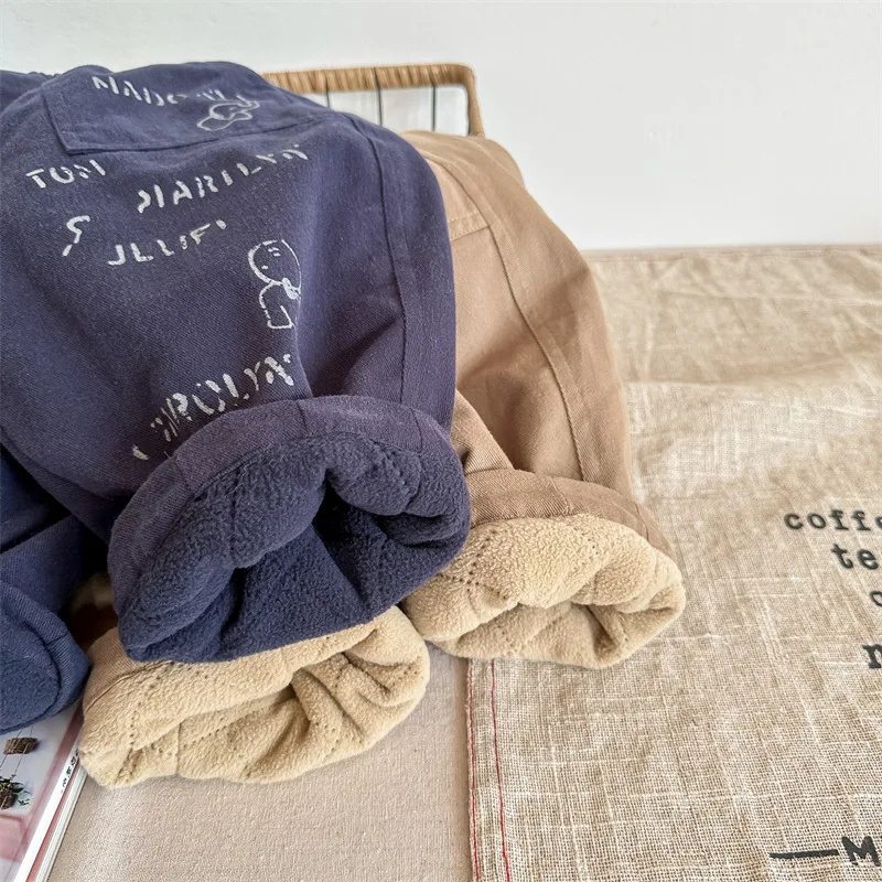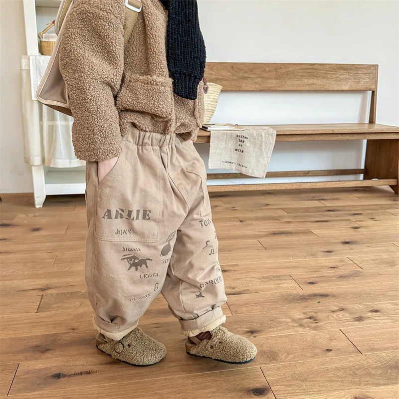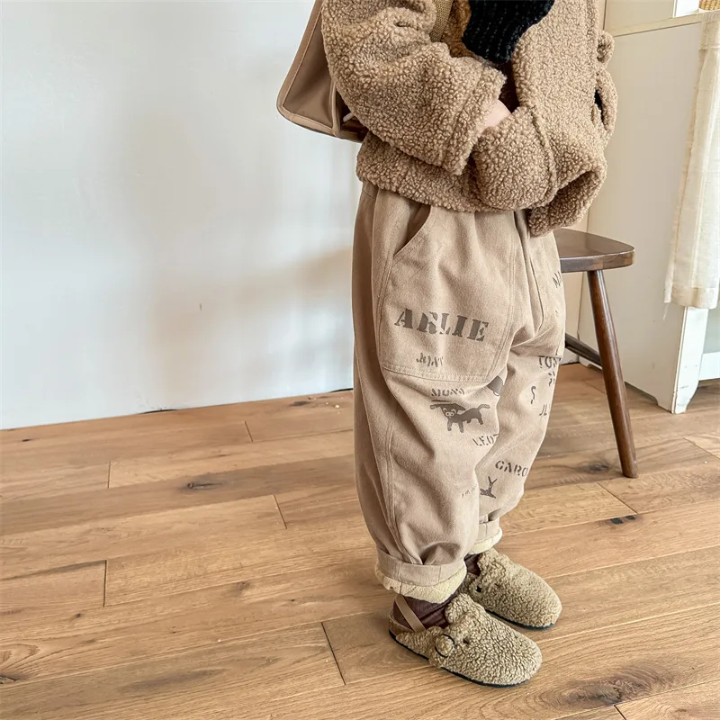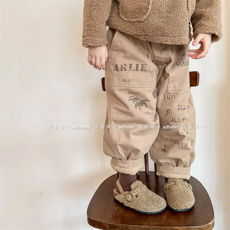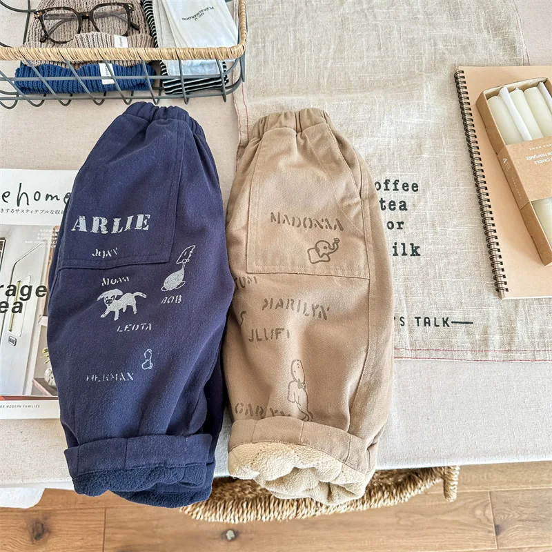 キッズパンツ 裏フリース アニマルプリント ロングパンツ 暖パン カーキ ブルー 2カラー ボーイズ 男の子 子供服