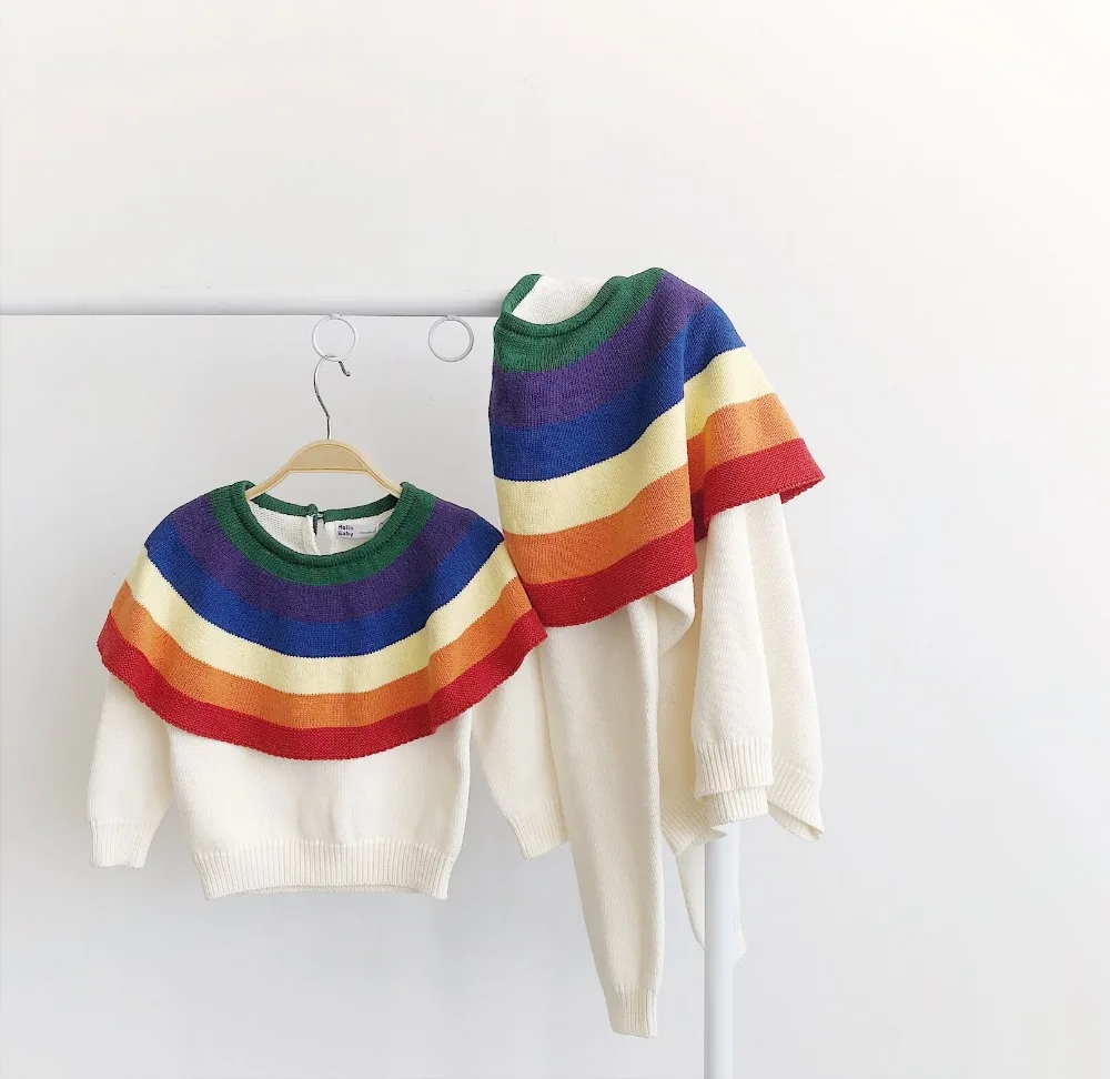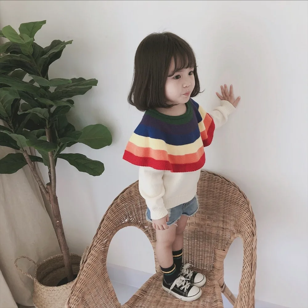 キッズトップス レインボーカラーフリル 長袖ニット セーター