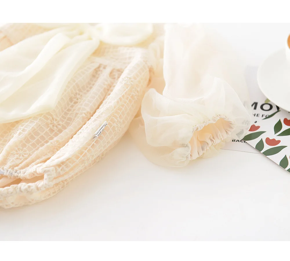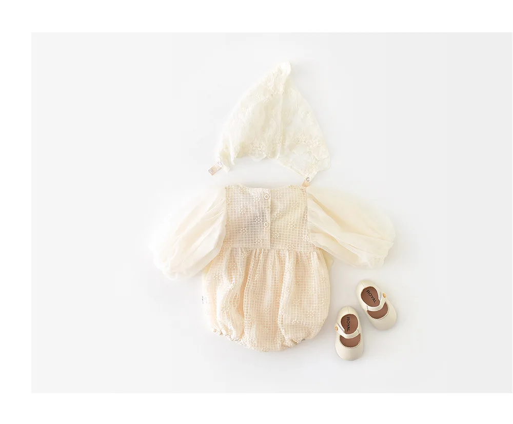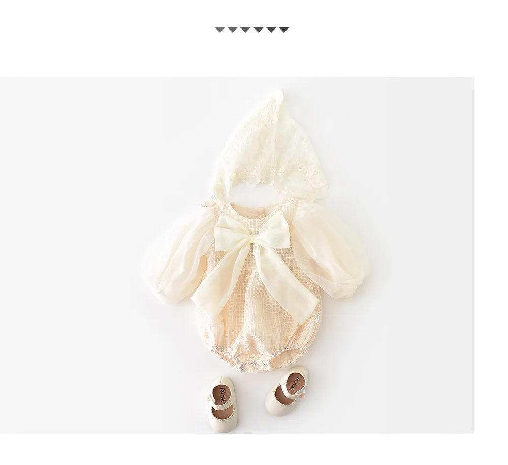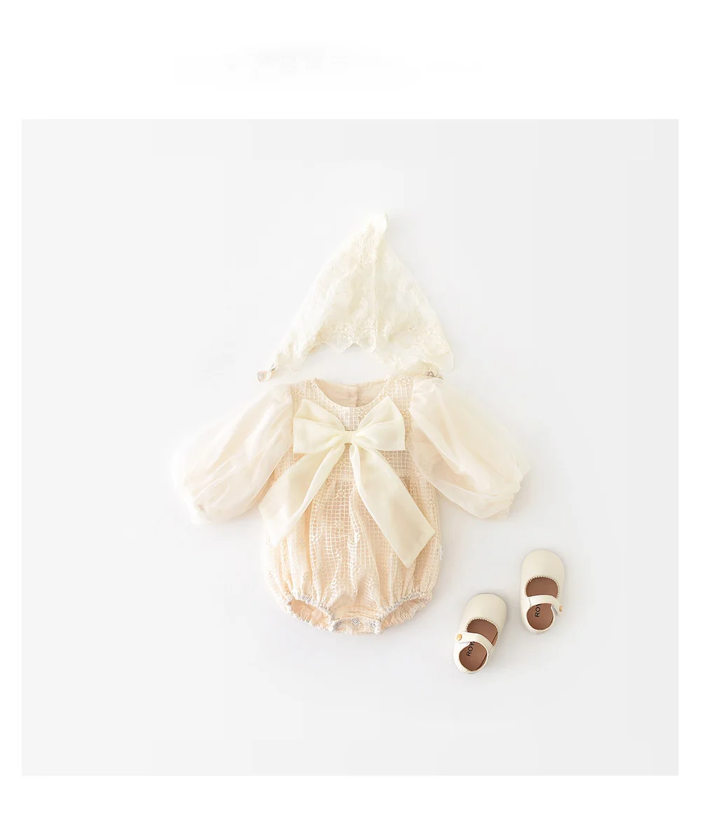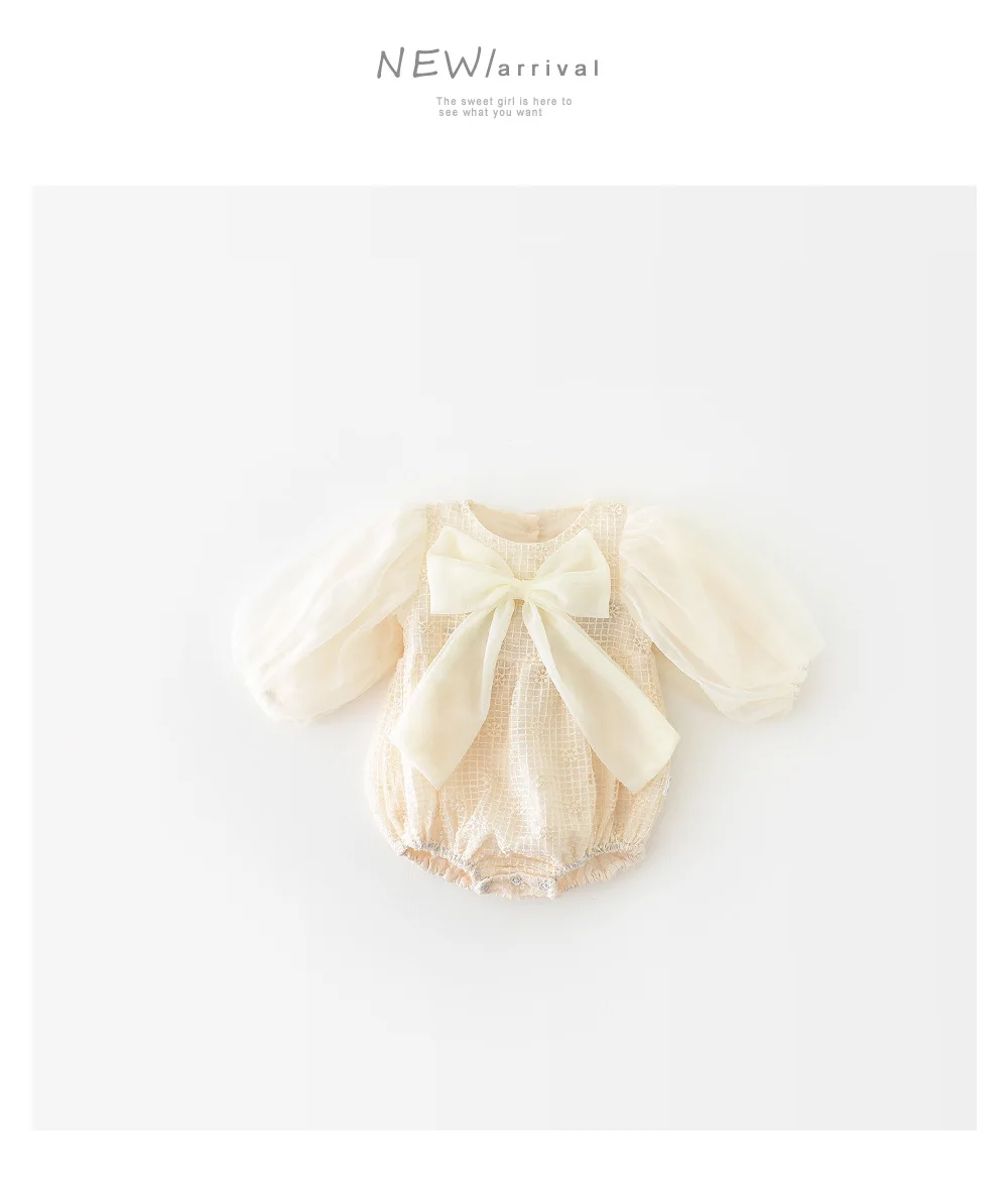 ベビー チェック メッシュ チュチュ リボン 長袖 ロンパース【mh0000911】