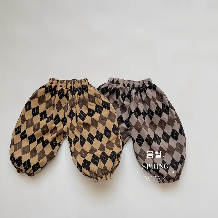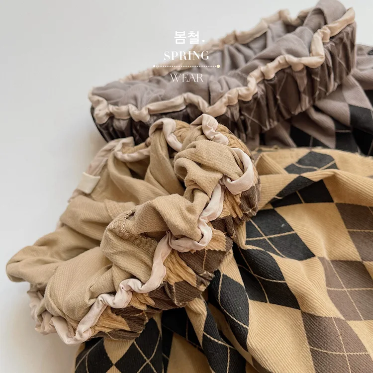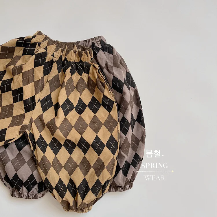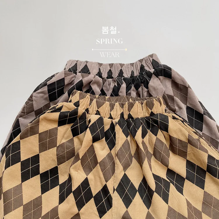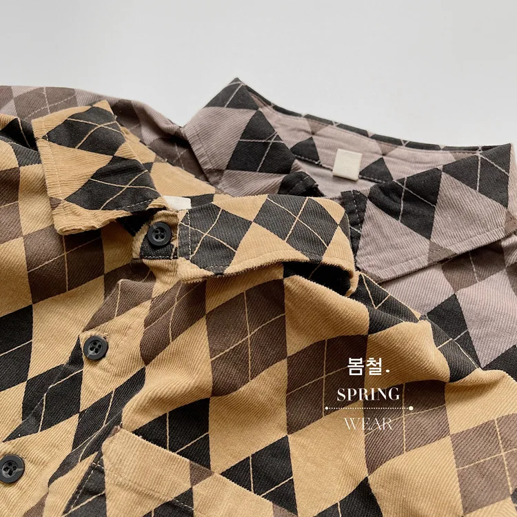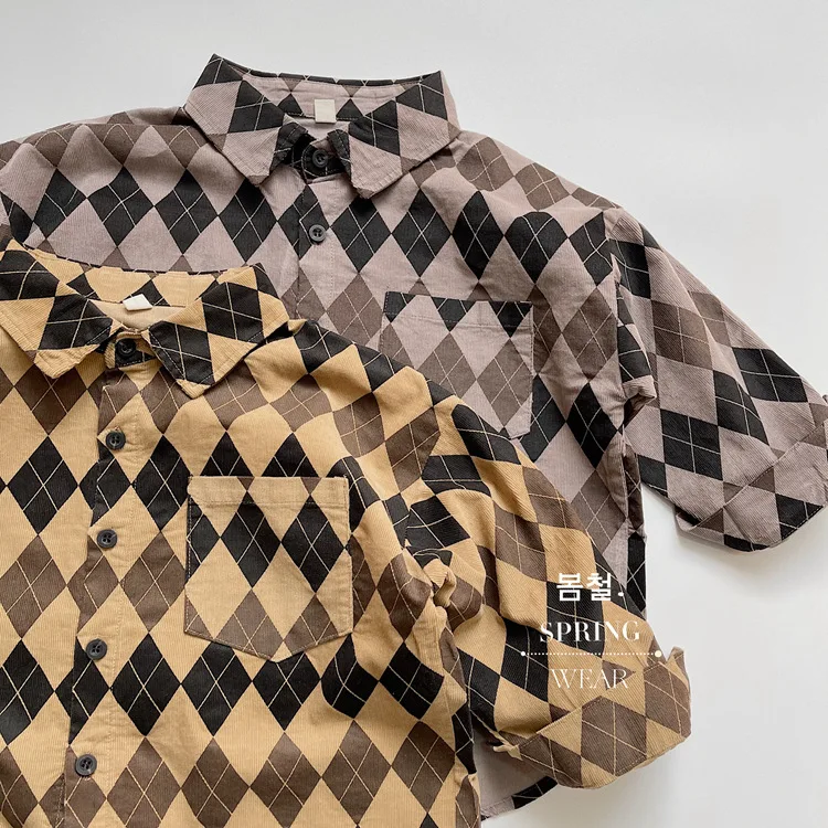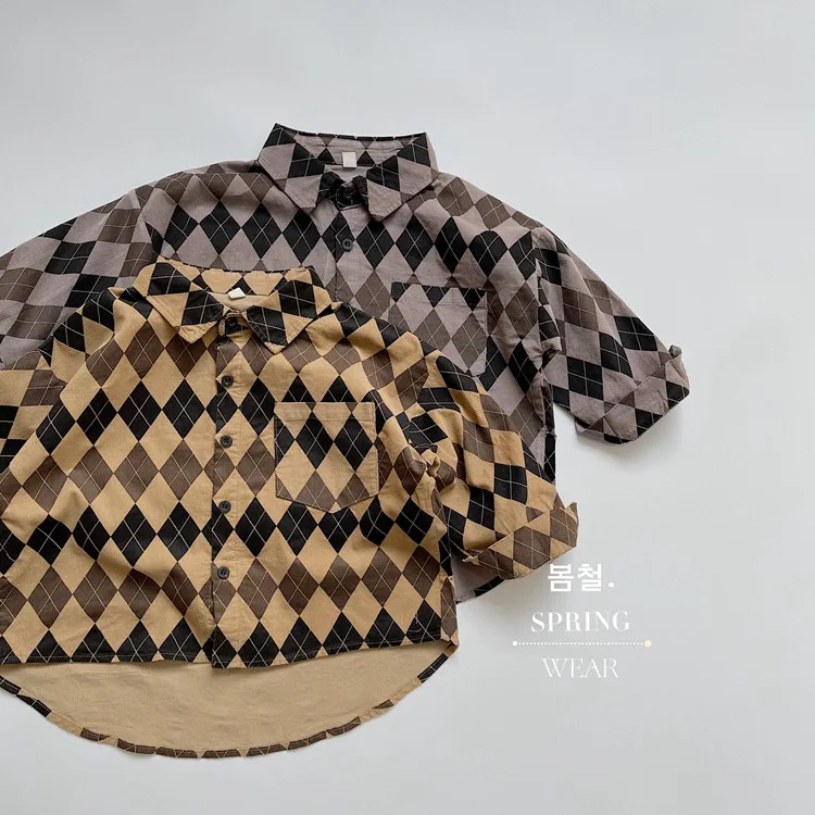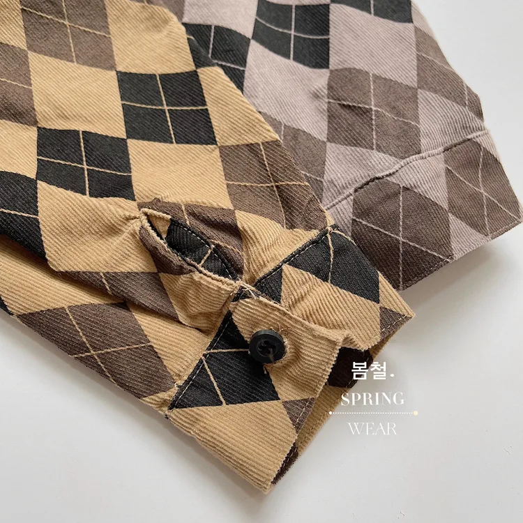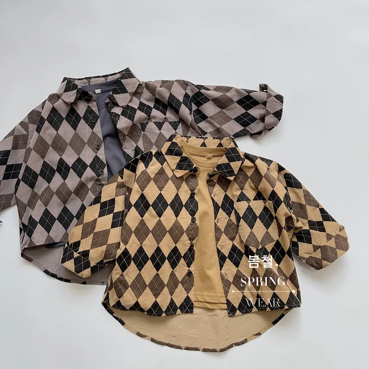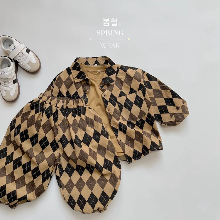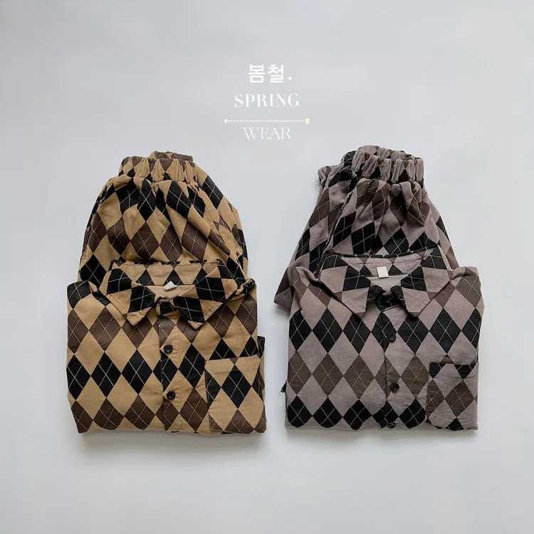 キッズ アーガイル チェック 長袖 シャツ ブラウス ルーズ パンツ【mh0001244】