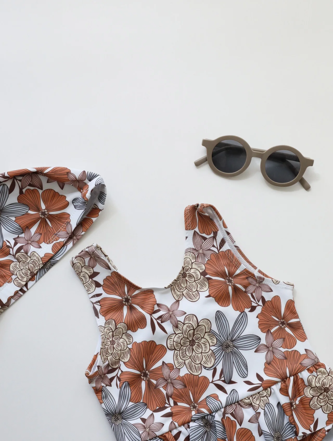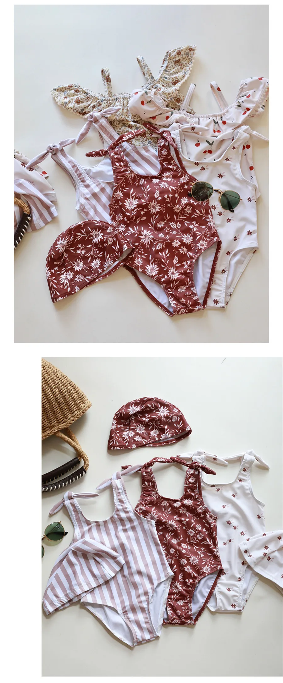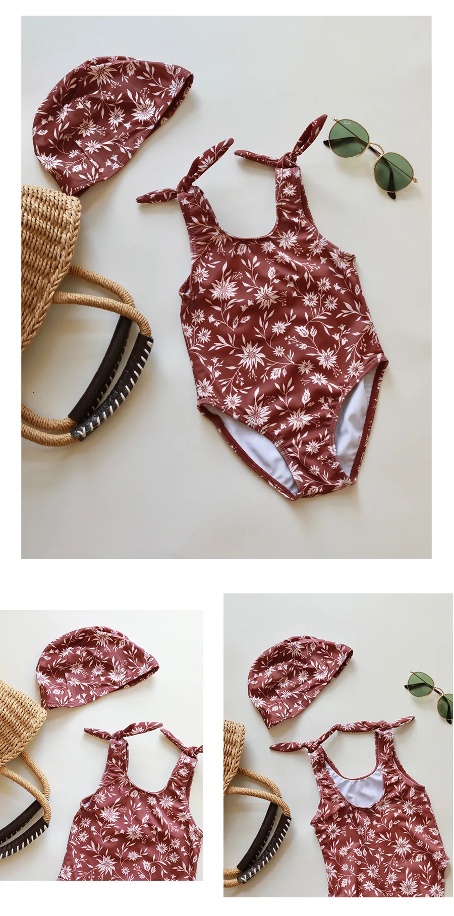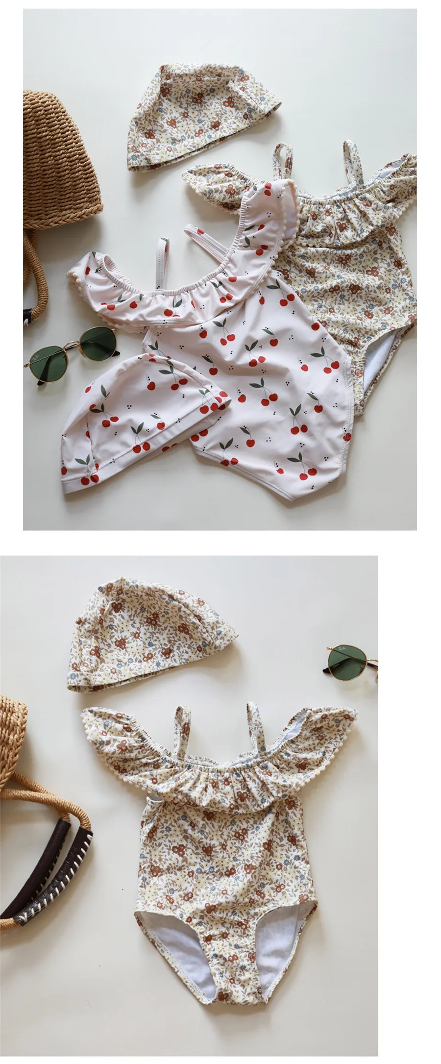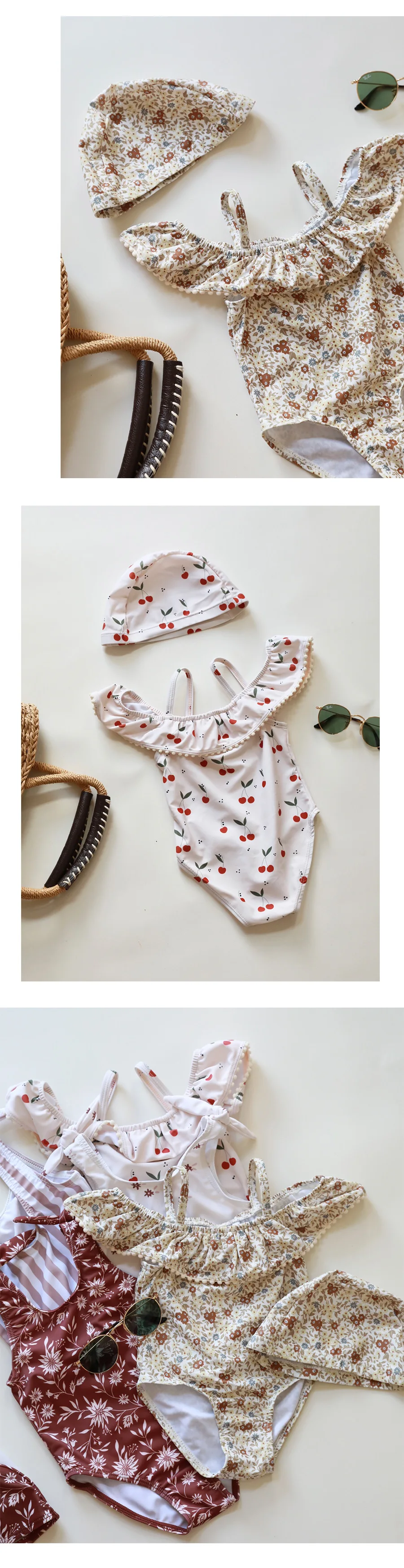 キッズ 水着 フラワー 花柄 ノースリーブ ワンピース ビキニ セパレート 帽子 セット スイムウェア 14スタイル ガールズ【mh0002216】