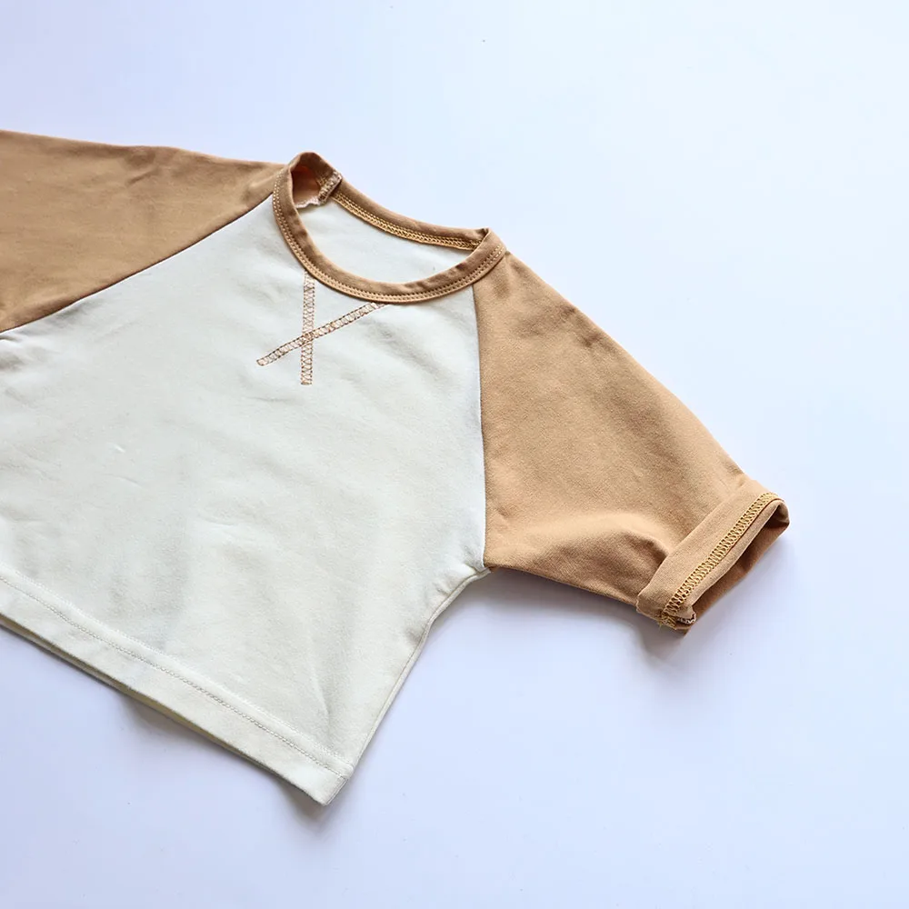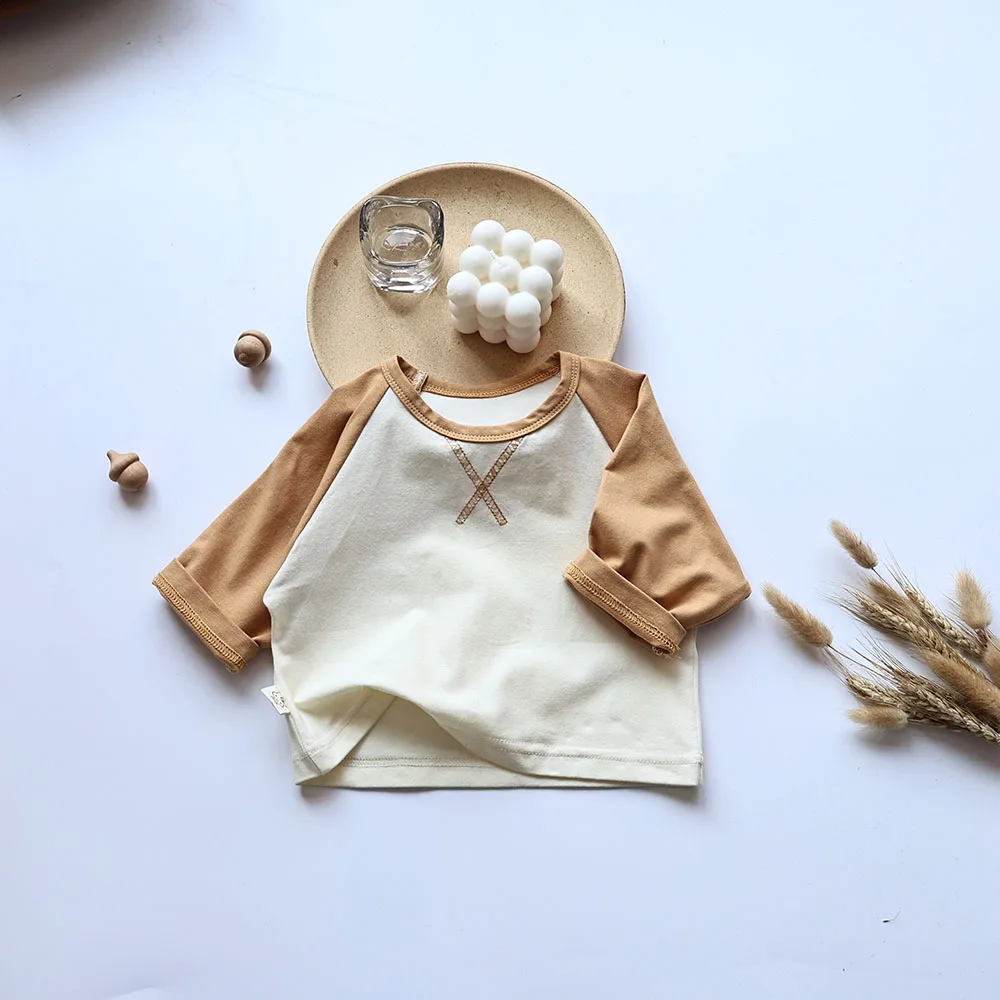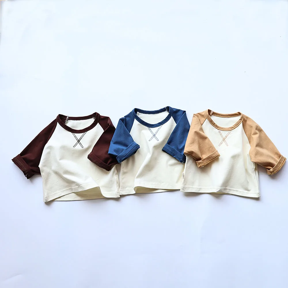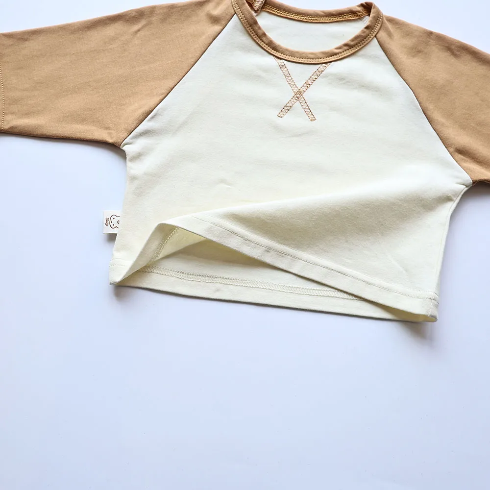 ベビー シンプル ベーシック パッチワーク ラグラン 長袖 Tシャツ トップス ボーイズ【mh0002745】