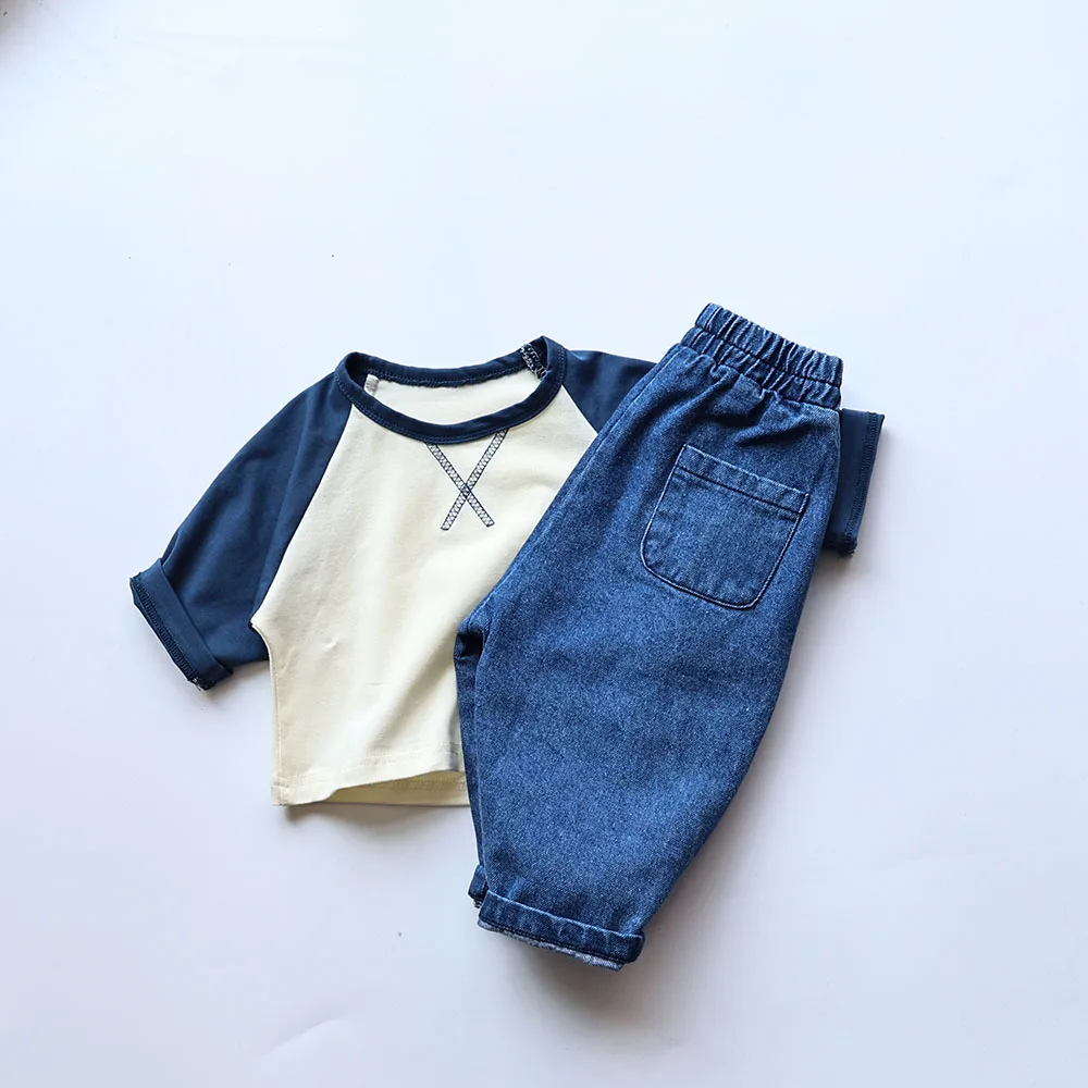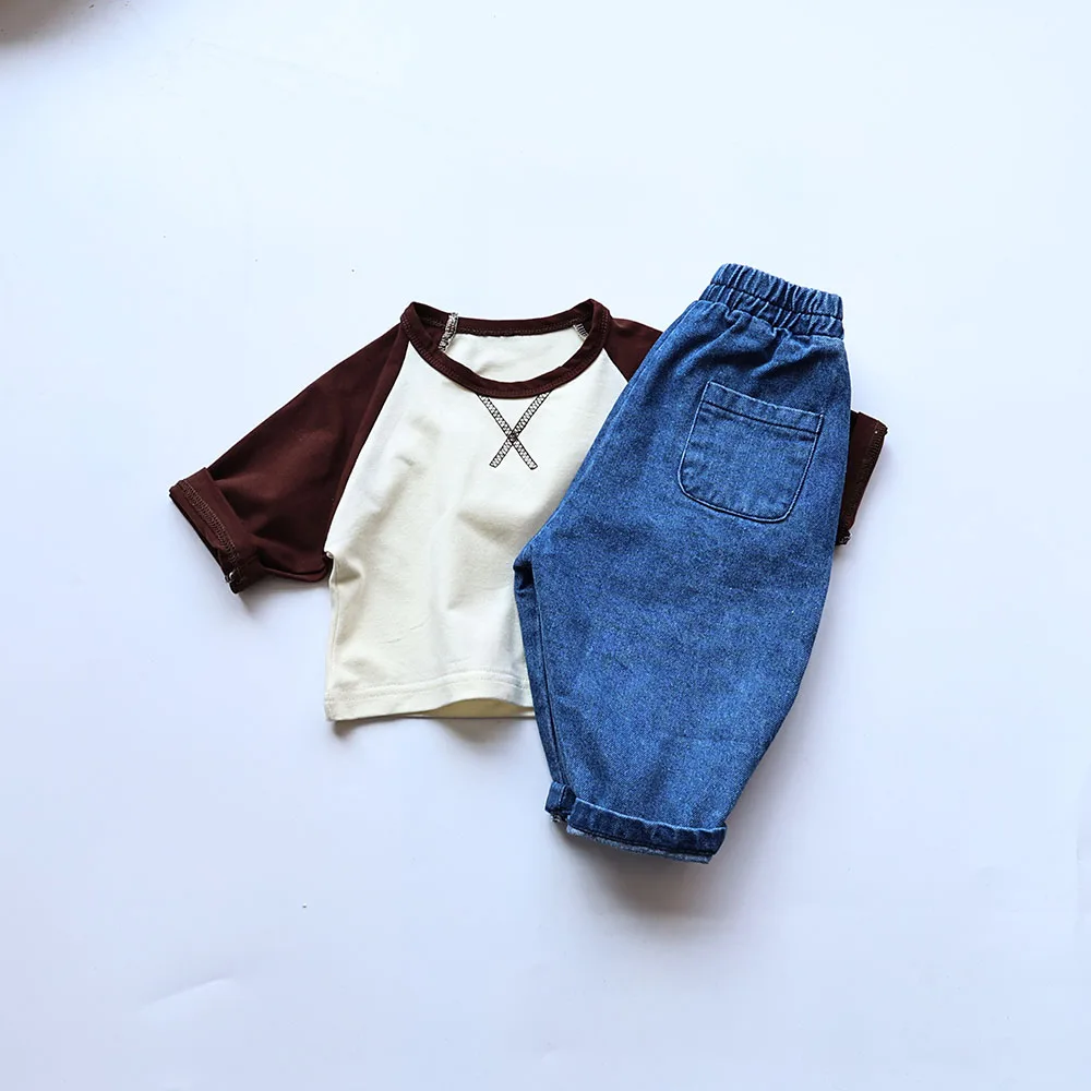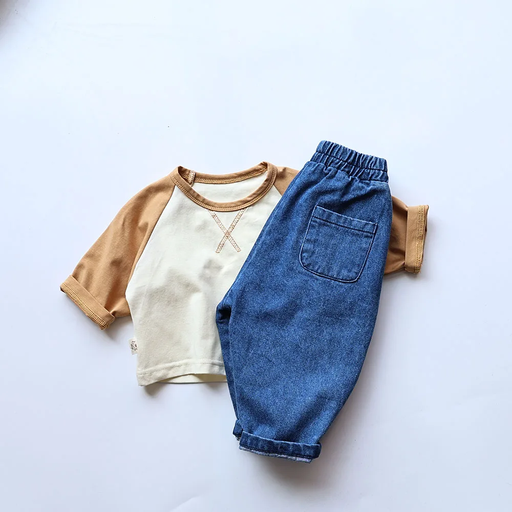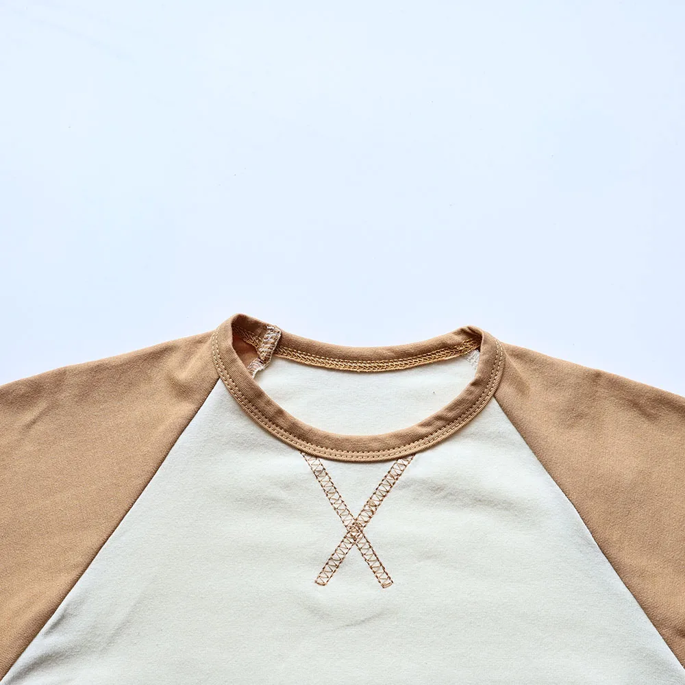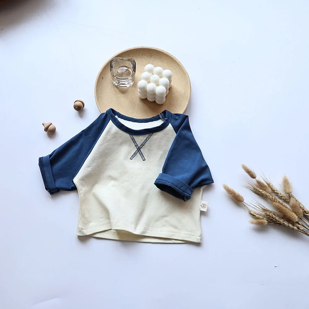 ベビー シンプル ベーシック パッチワーク ラグラン 長袖 Tシャツ トップス ボーイズ【mh0002745】