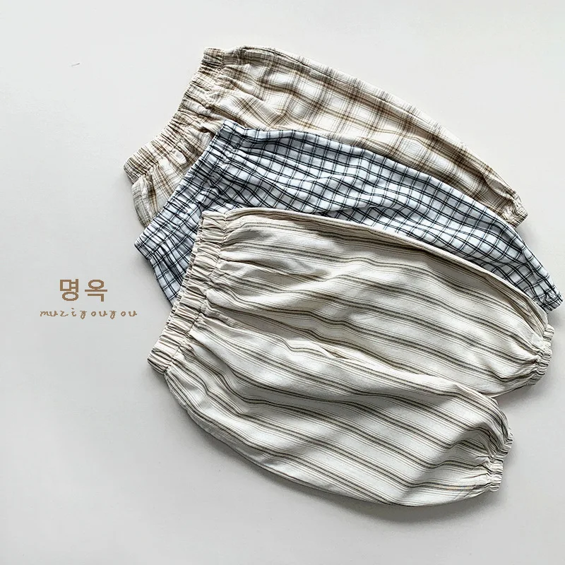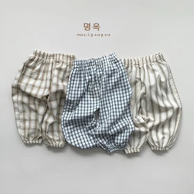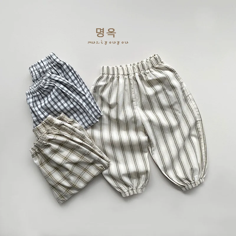 キッズパンツ サマージョガーパンツ 薄手パンツ チェック/ストライプ【mh0005519】