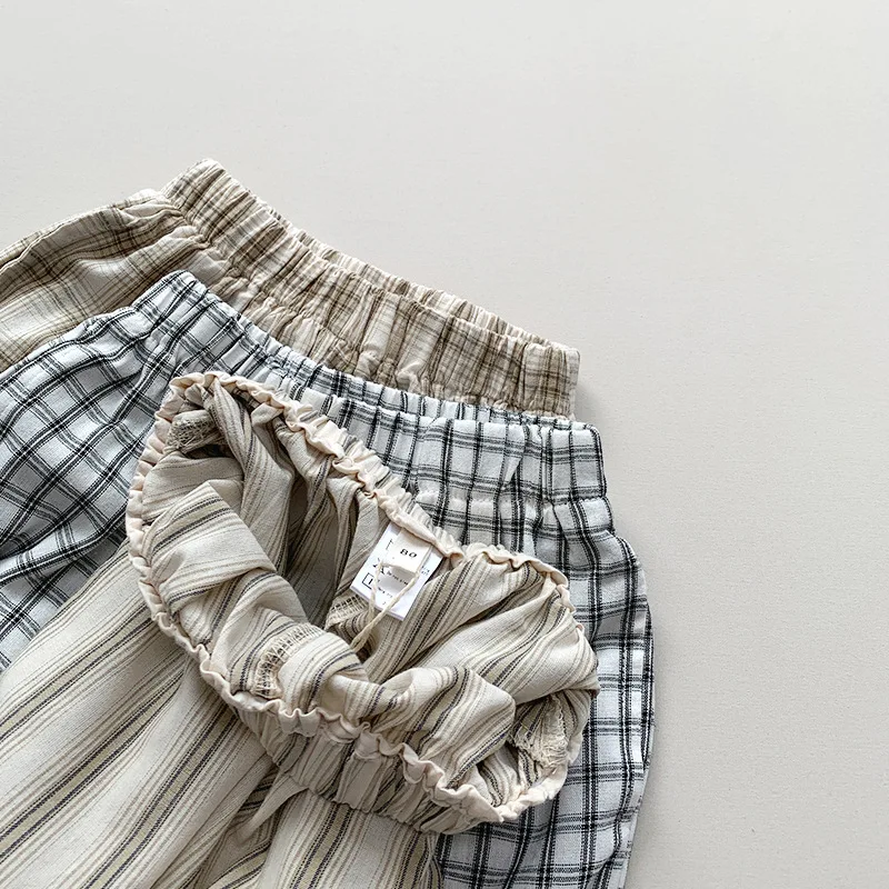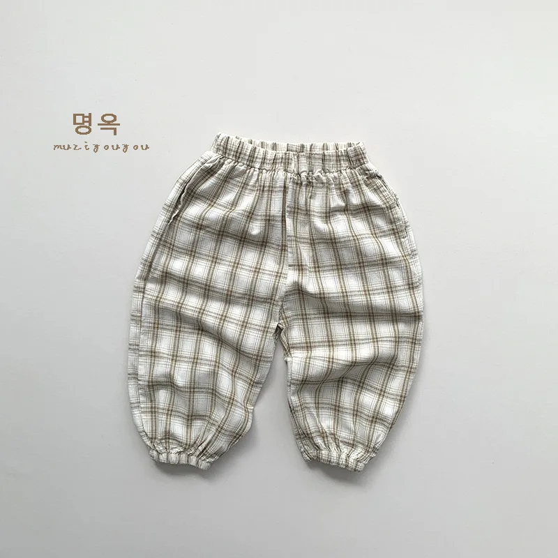 肌触りの良い薄手の生地を使用した、キッズパンツ。夏のアウトドアでも快適に履ける、ローストライプとチェック柄の軽量ペンシルパンツです。子どもたちの自由な遊びをサポートします。