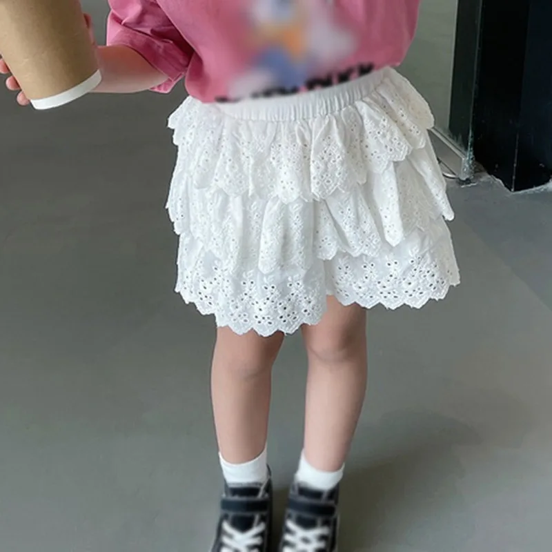 この可愛いキッズ用レースフリルショートパンツは、夏のおしゃれなアイテムです。幼児や赤ちゃんの女の子にぴったりの、甘い雰囲気を演出する白色のレースとふわふわのケーキスカートを特徴としています。子供たちのお洋服選びを楽しくサポートします。