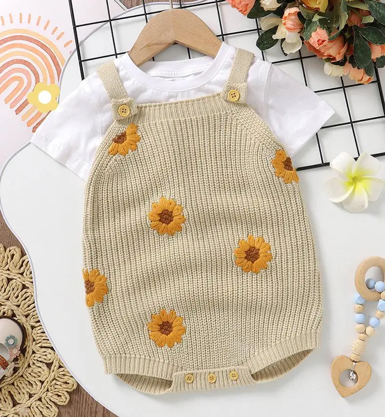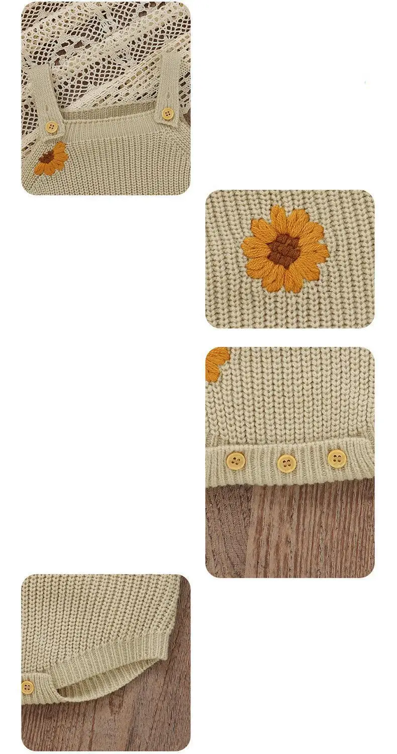 ベビーロンパース ニット キャミソール サスペンダーボディスーツ フラワー花柄 カーキ【mh0006181】