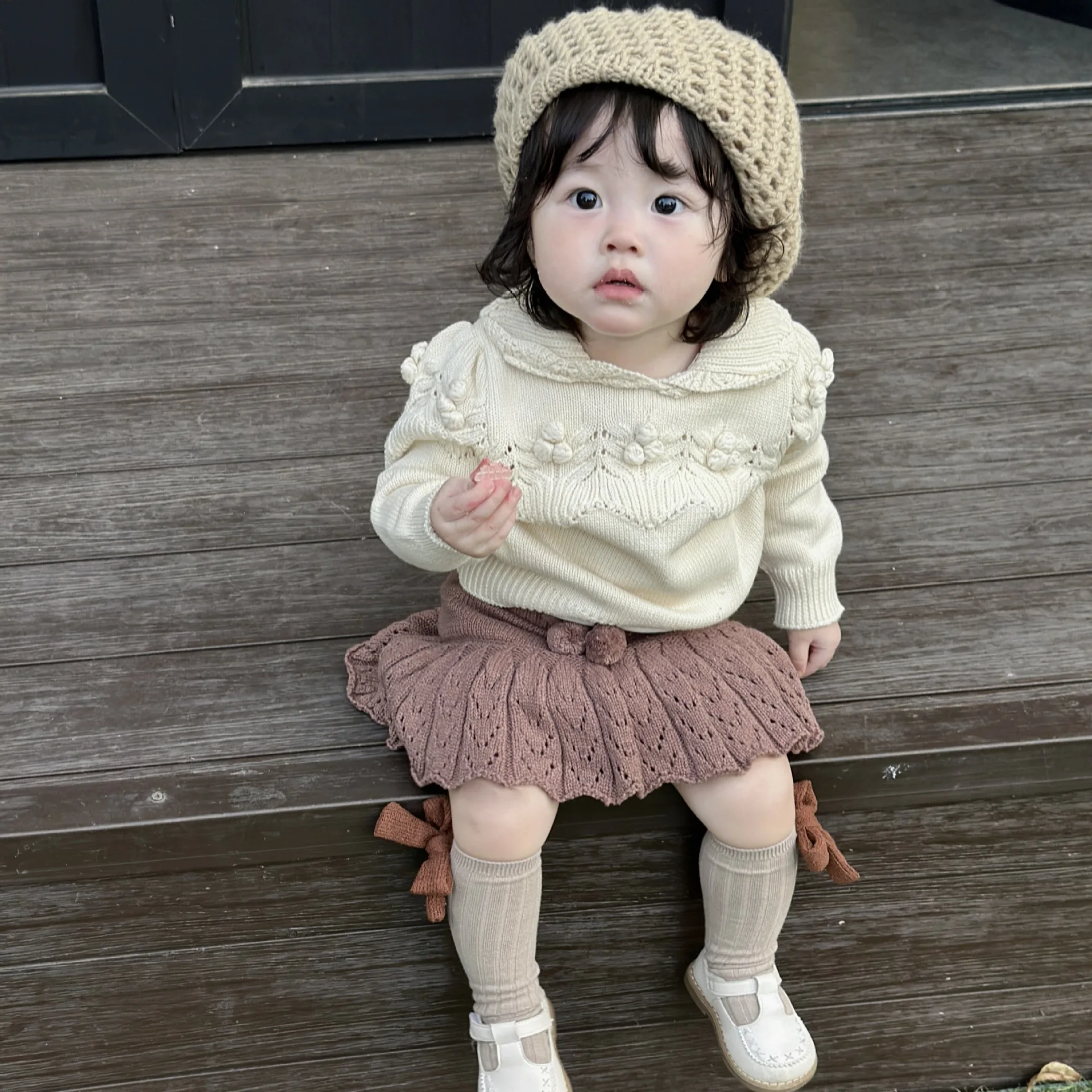 ベビーキッズ ニットポロ襟刺繍セータートップス 2カラー【mh0006730】