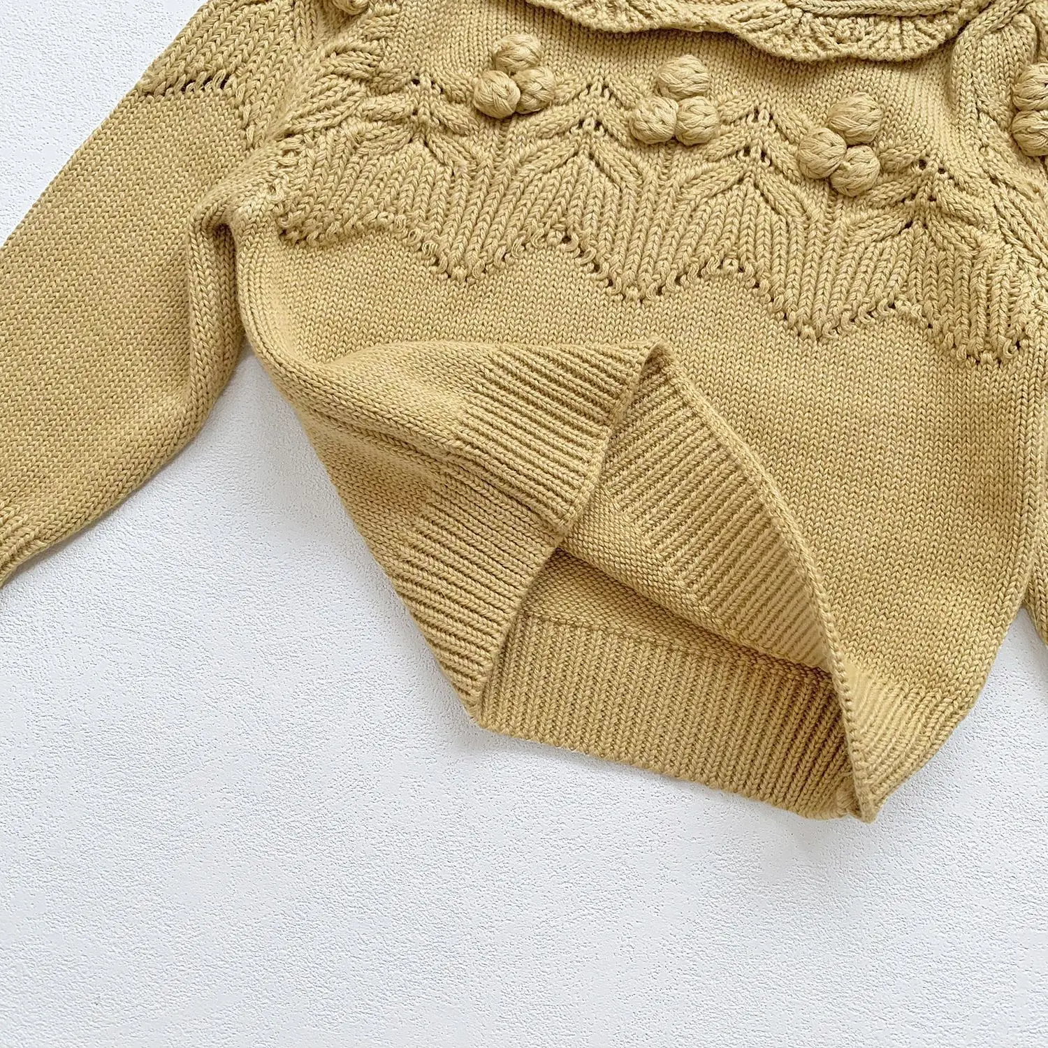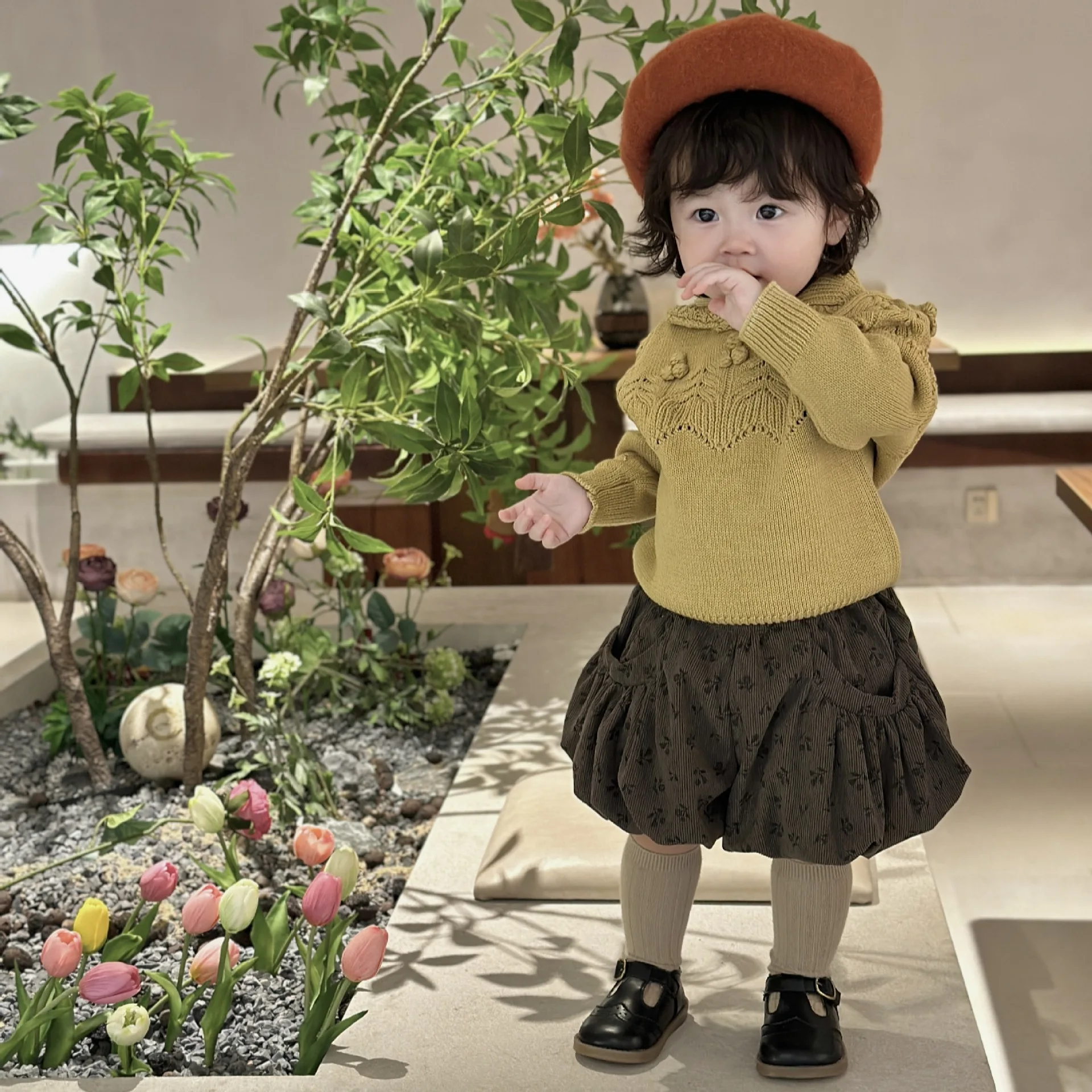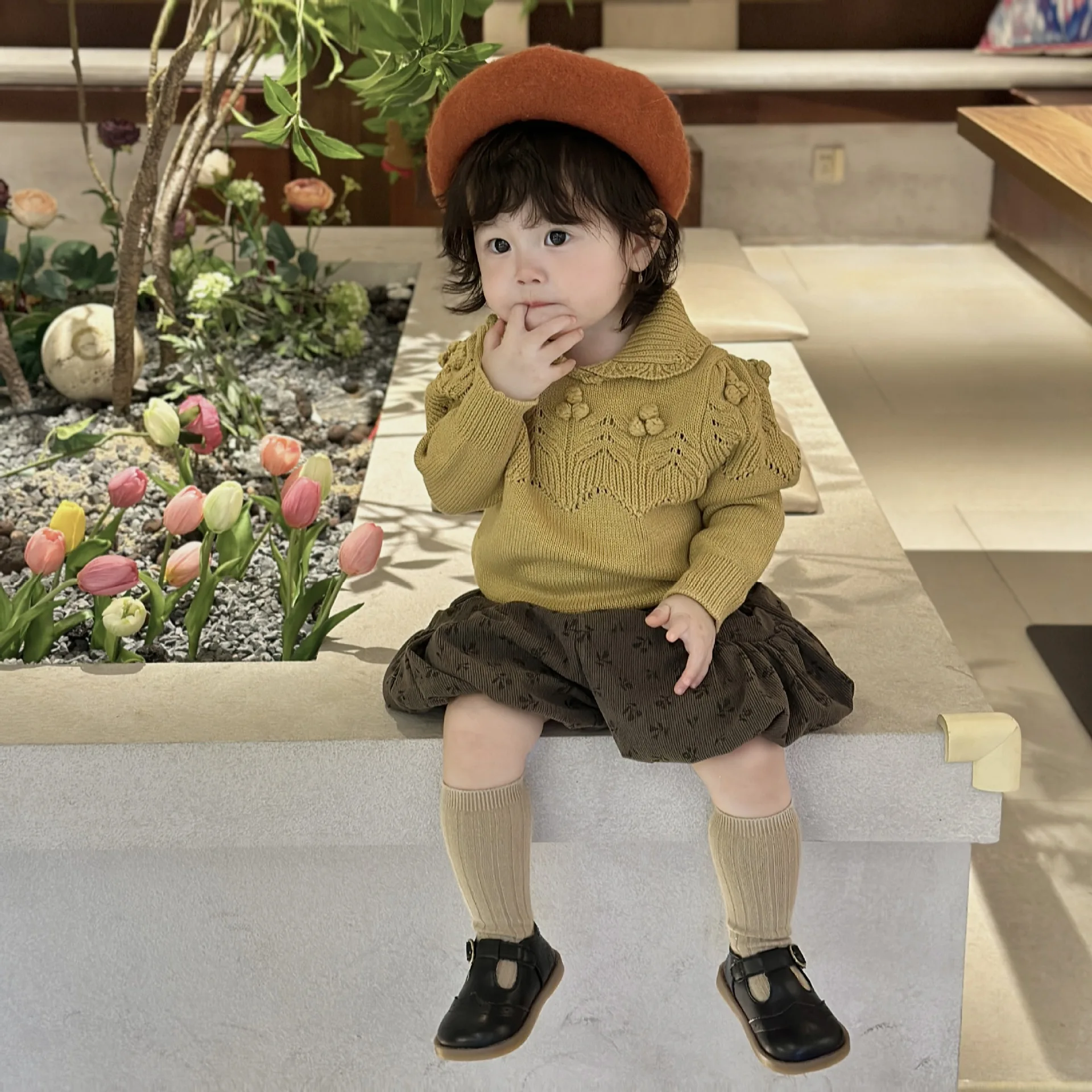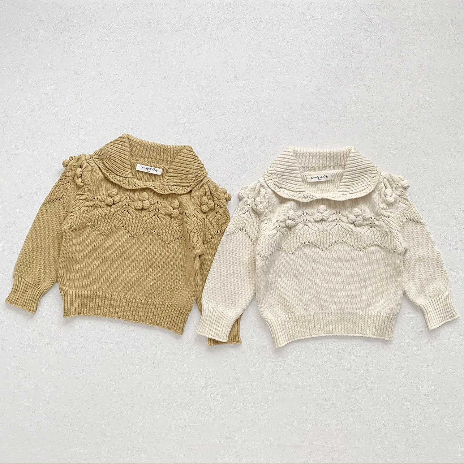 秋にぴったりなニットポロ襟の刺繍セータートップス。韓国風のターンダウンカラーが特徴で、2カラー展開。長袖デザインで、寒い季節でも暖かく快適に過ごせます。シンプルながらも刺繍がアクセントとなり、カジュアルながらもおしゃれなコーディネートに最適です。ベビーやキッズの毎日のスタイルに取り入れやすいアイテムです。