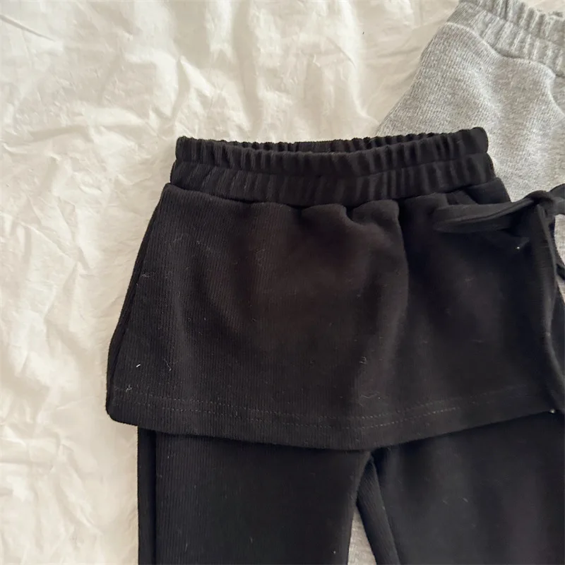 サイドリボンの巻きスカートとパンツがドッキングしたキッズ用フレアパンツです。韓国スタイルのスポーツミックスデザインで、秋冬のコーディネートに最適。カジュアルでありながらもおしゃれ感をプラスした一着。ルーズなシルエットで動きやすく、お子様の活発な日常にぴったりです。2カラーからお選びいただけます。