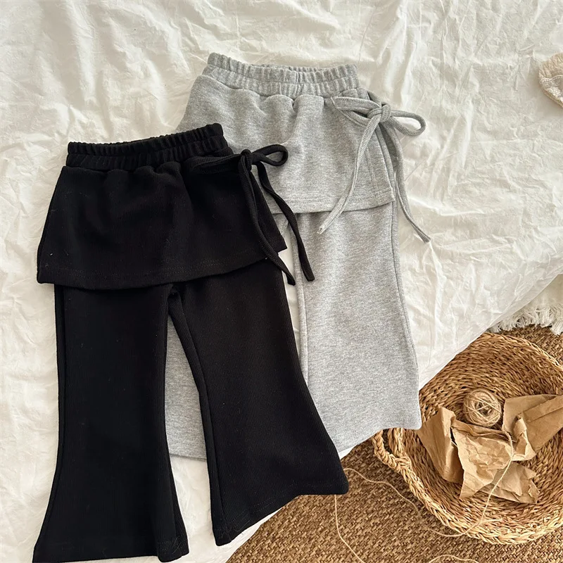 #キッズパンツ #フレアパンツ #サイドリボン #スカートドッキング #スカッツ #韓国スタイル #秋冬コーデ #子供服 #カジュアル