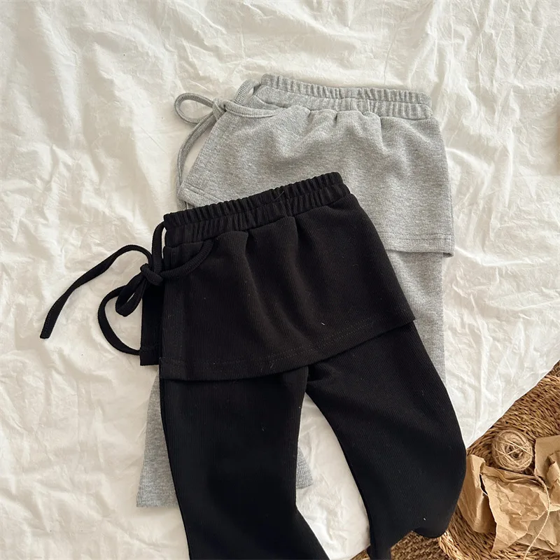 キッズパンツ サイドリボン巻きスカートドッキングスカッツフレアパンツ 2カラー【mh0006738】