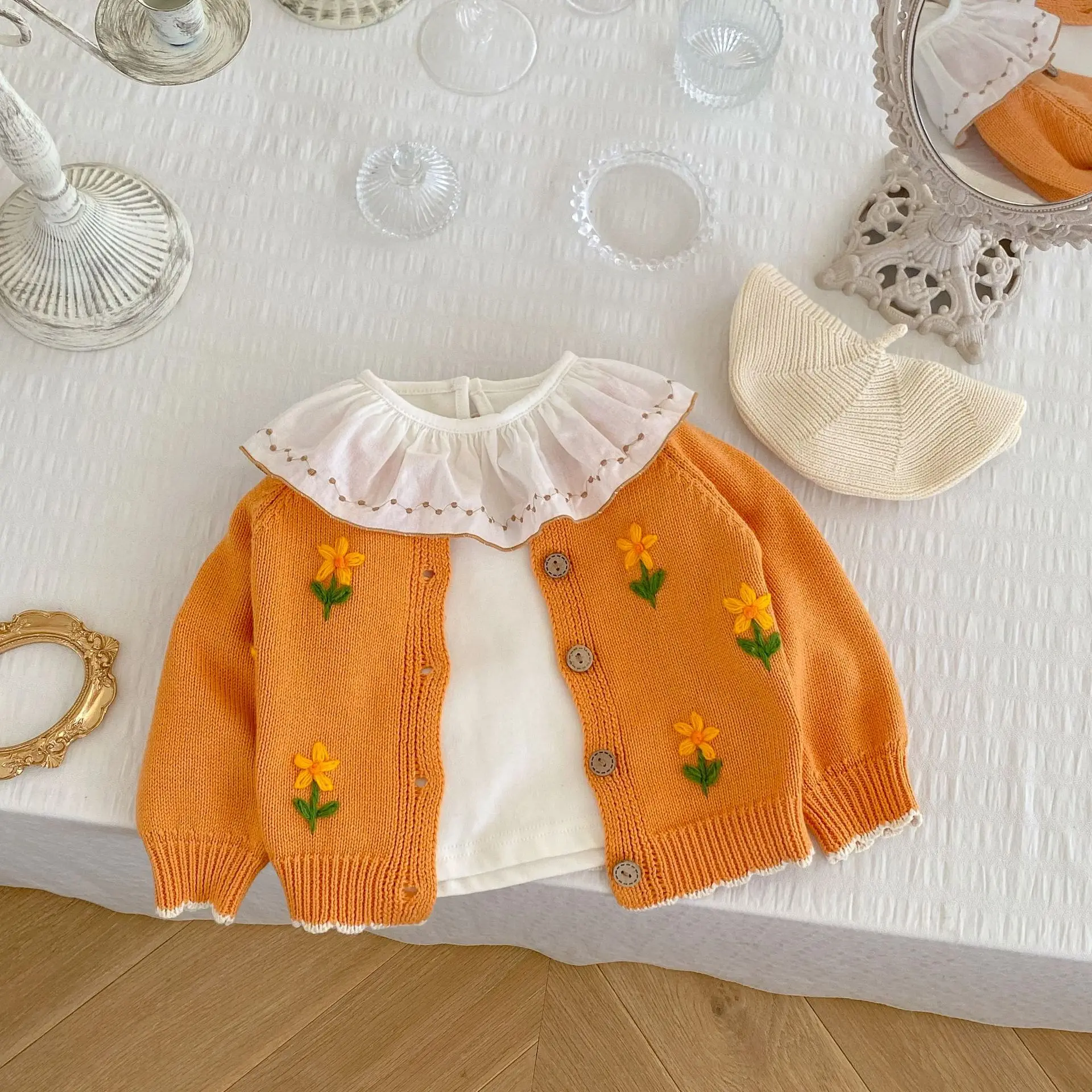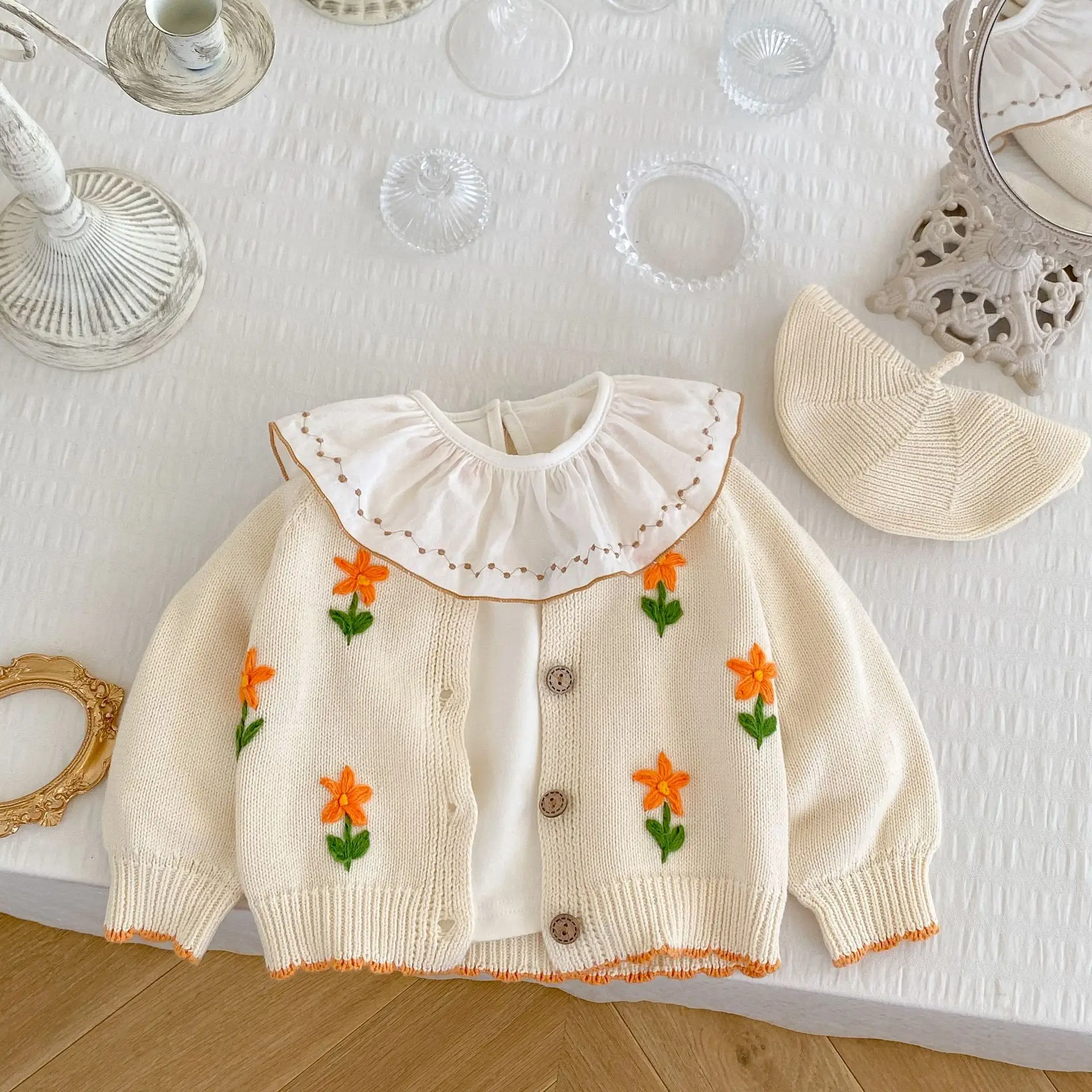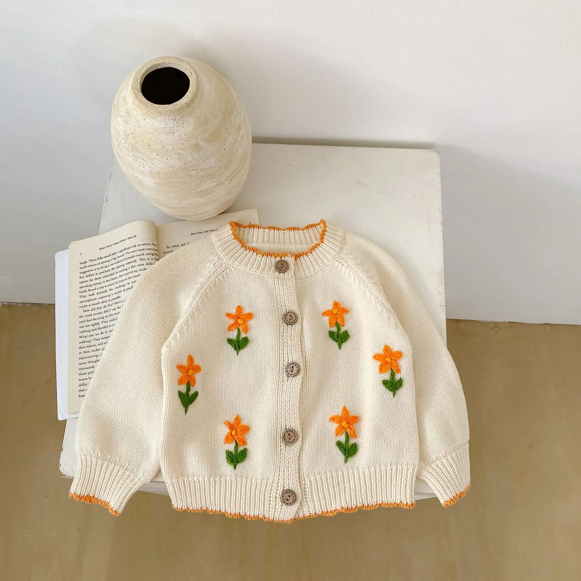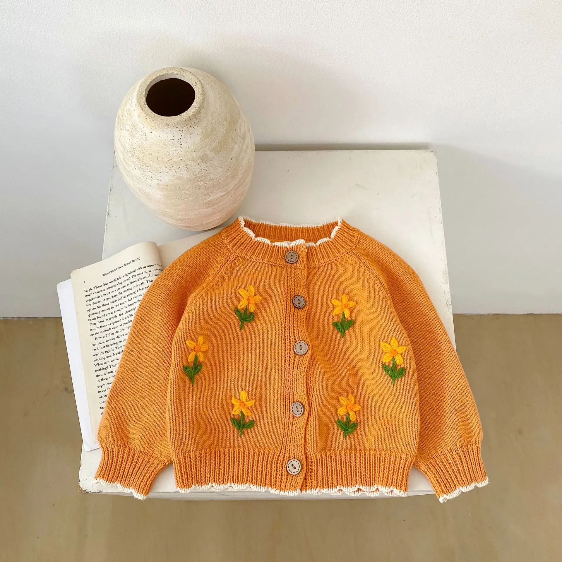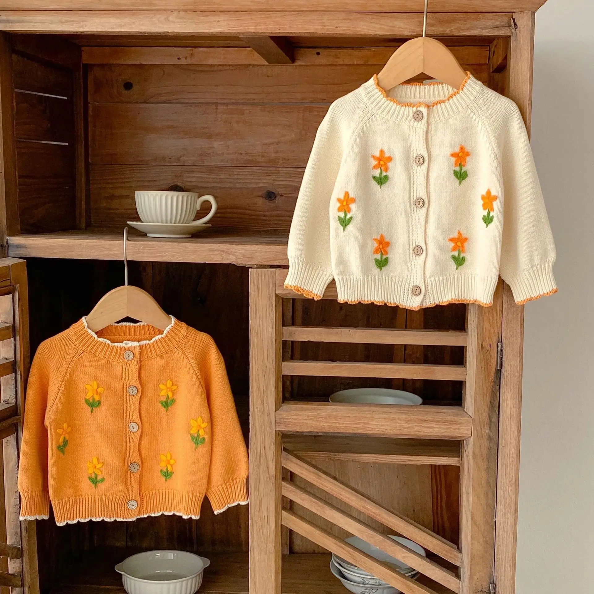 #ニットカーディガン #フラワー刺繍 #赤ちゃん服 #コットンジャケット #カジュアルコート #ベビー服 #キッズジャケット