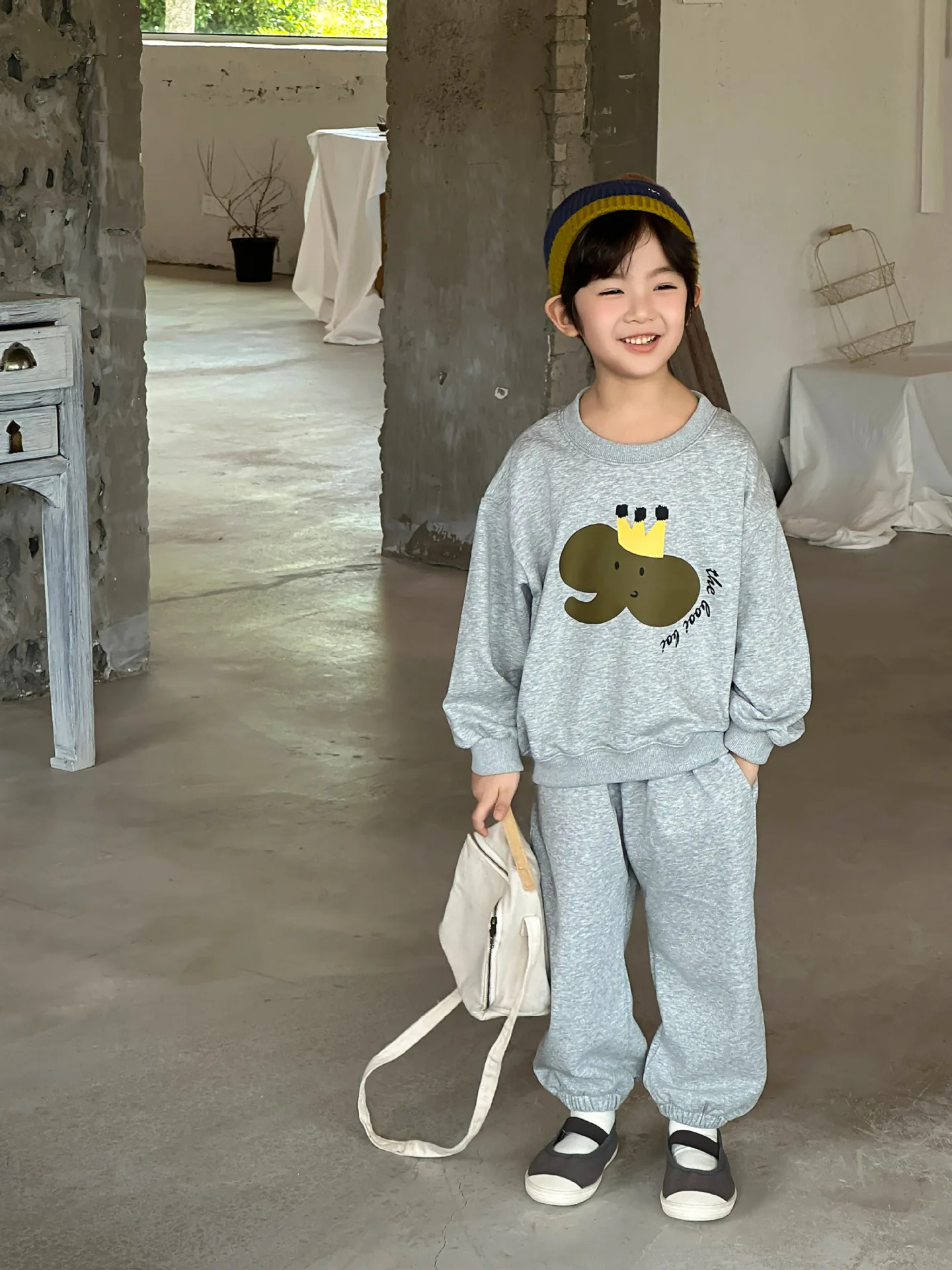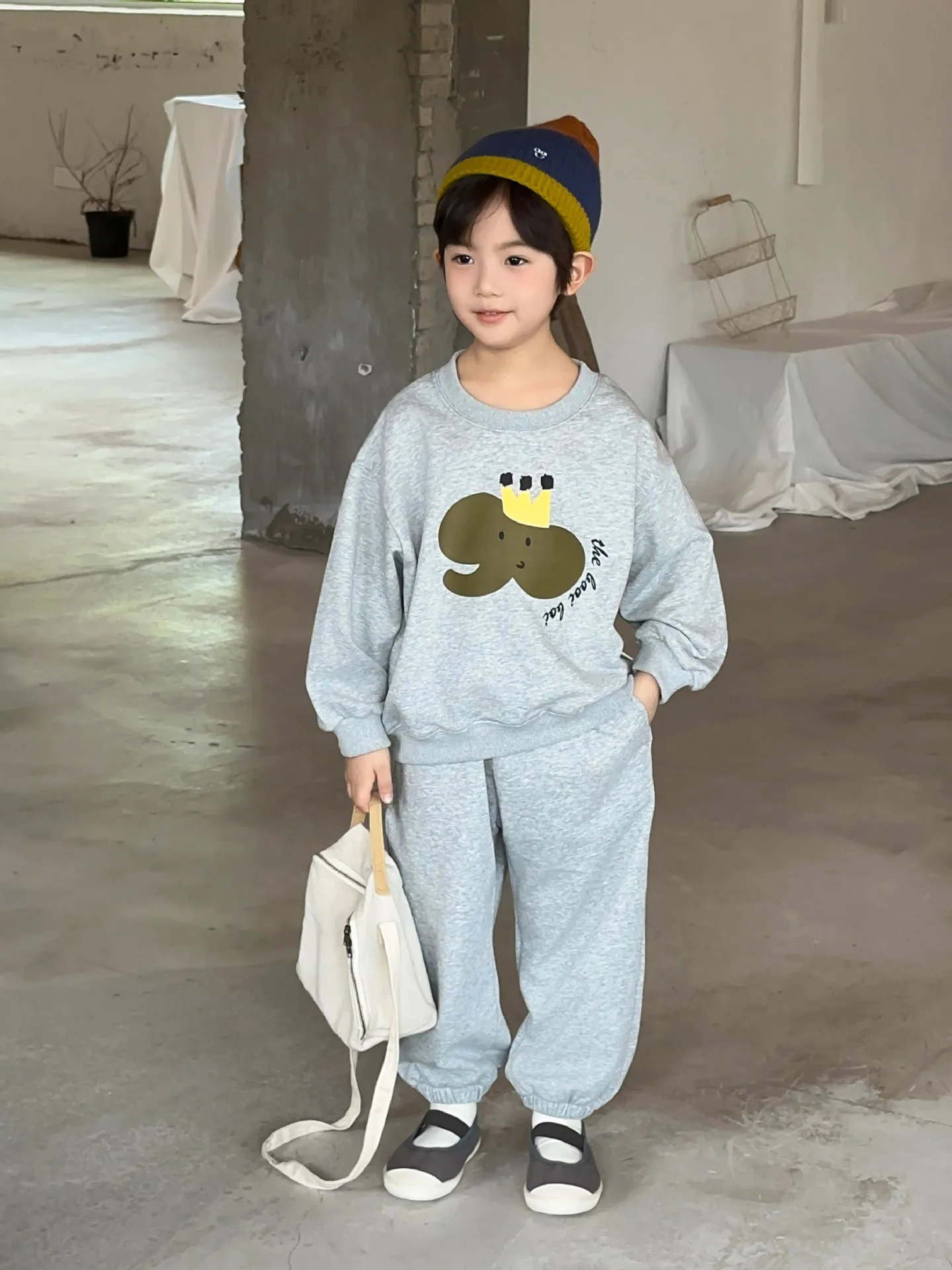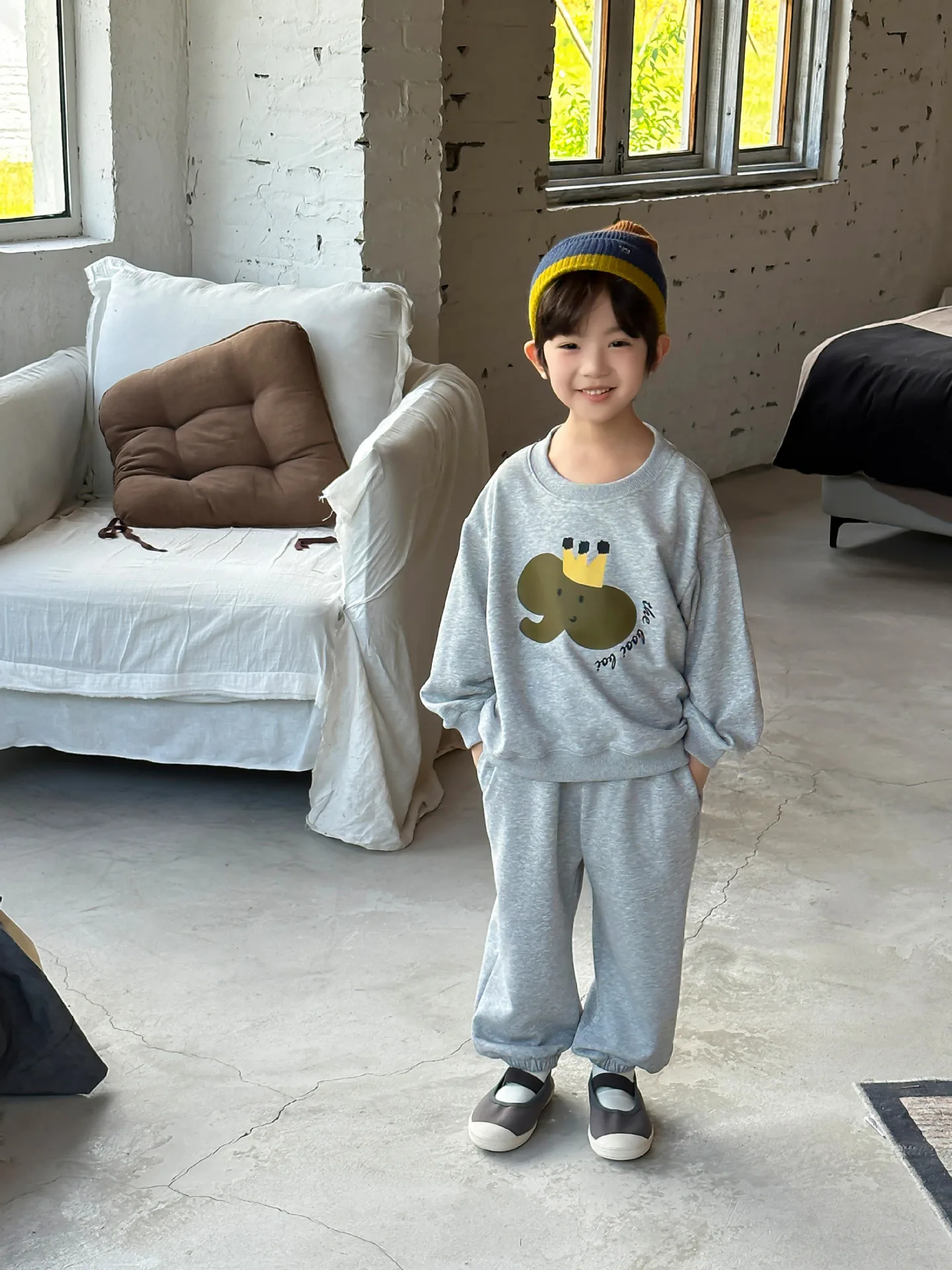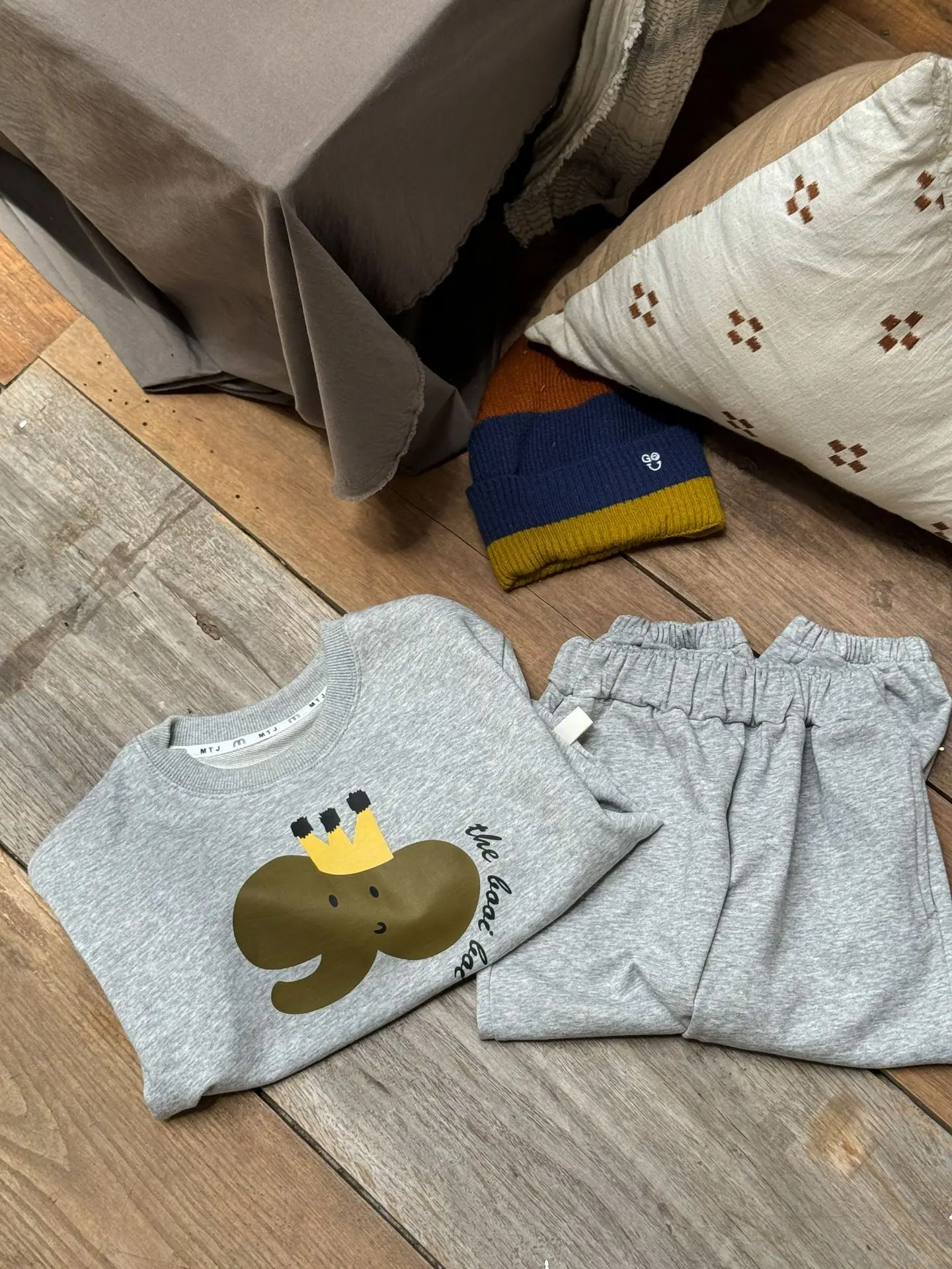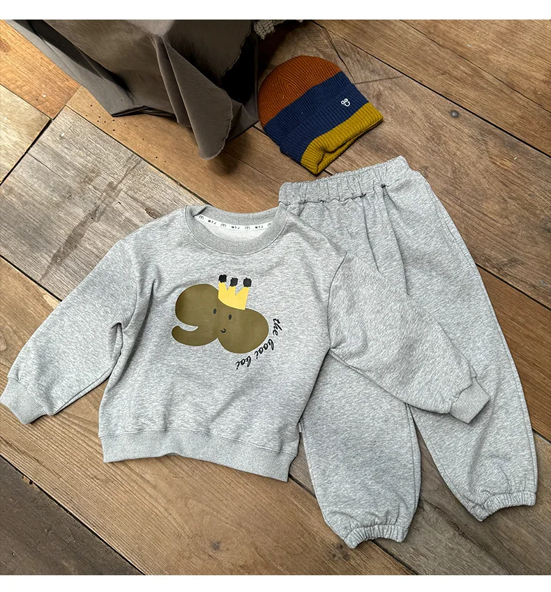 アニマルプリントがかわいい長袖スウェットシャツとスウェットパンツの2点セットです。カジュアルで楽しいデザインは、毎日のコーディネートにぴったり。しっかりとしたコットン素材で、着心地も抜群。3カラーからお選びいただける、男の子にも女の子にもおすすめのセットアップです。