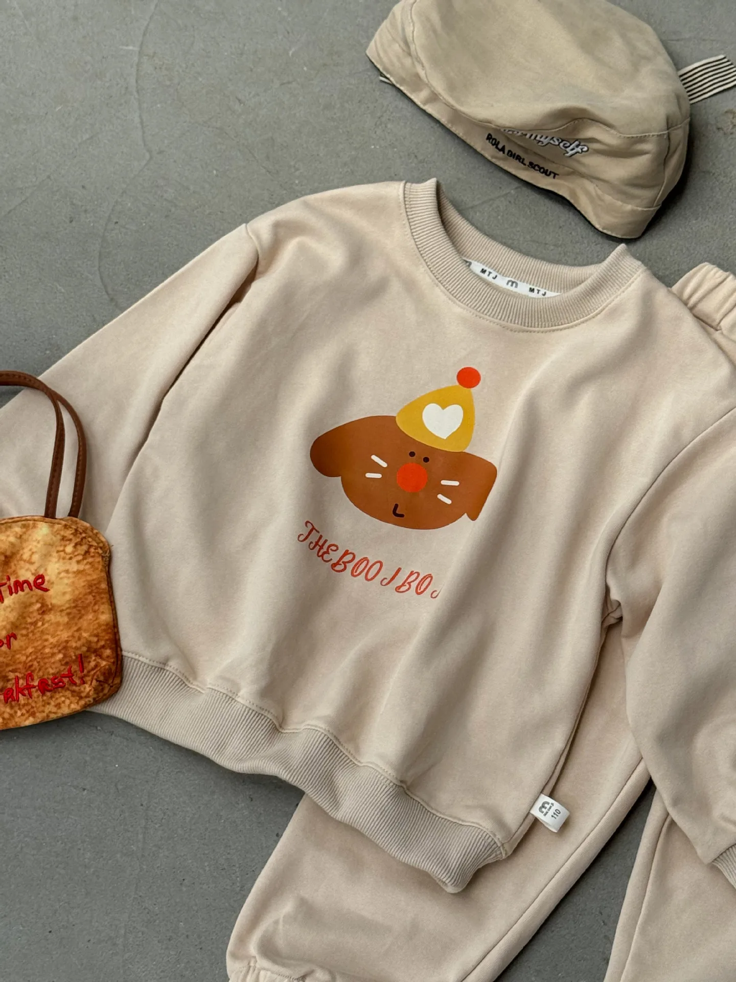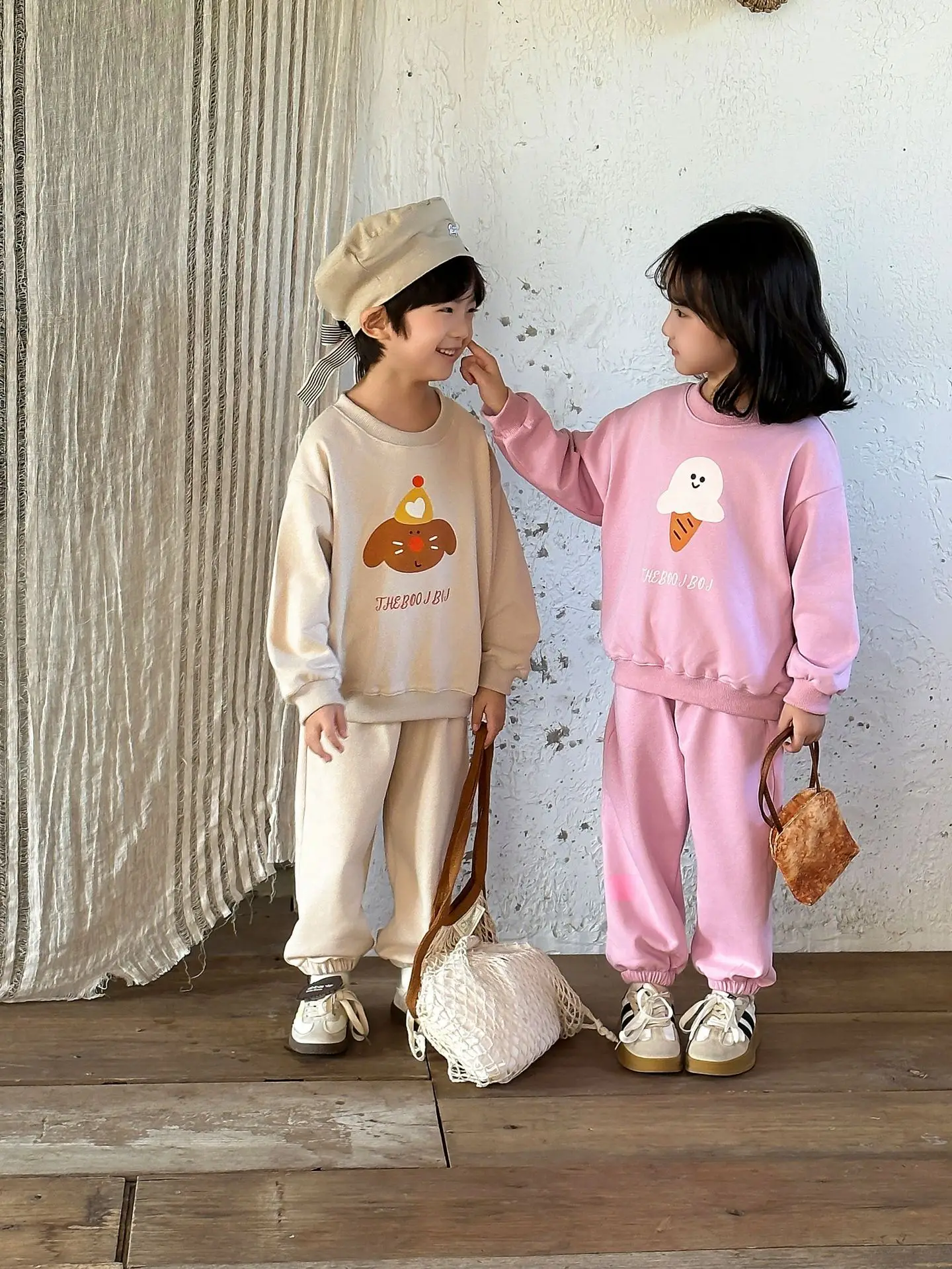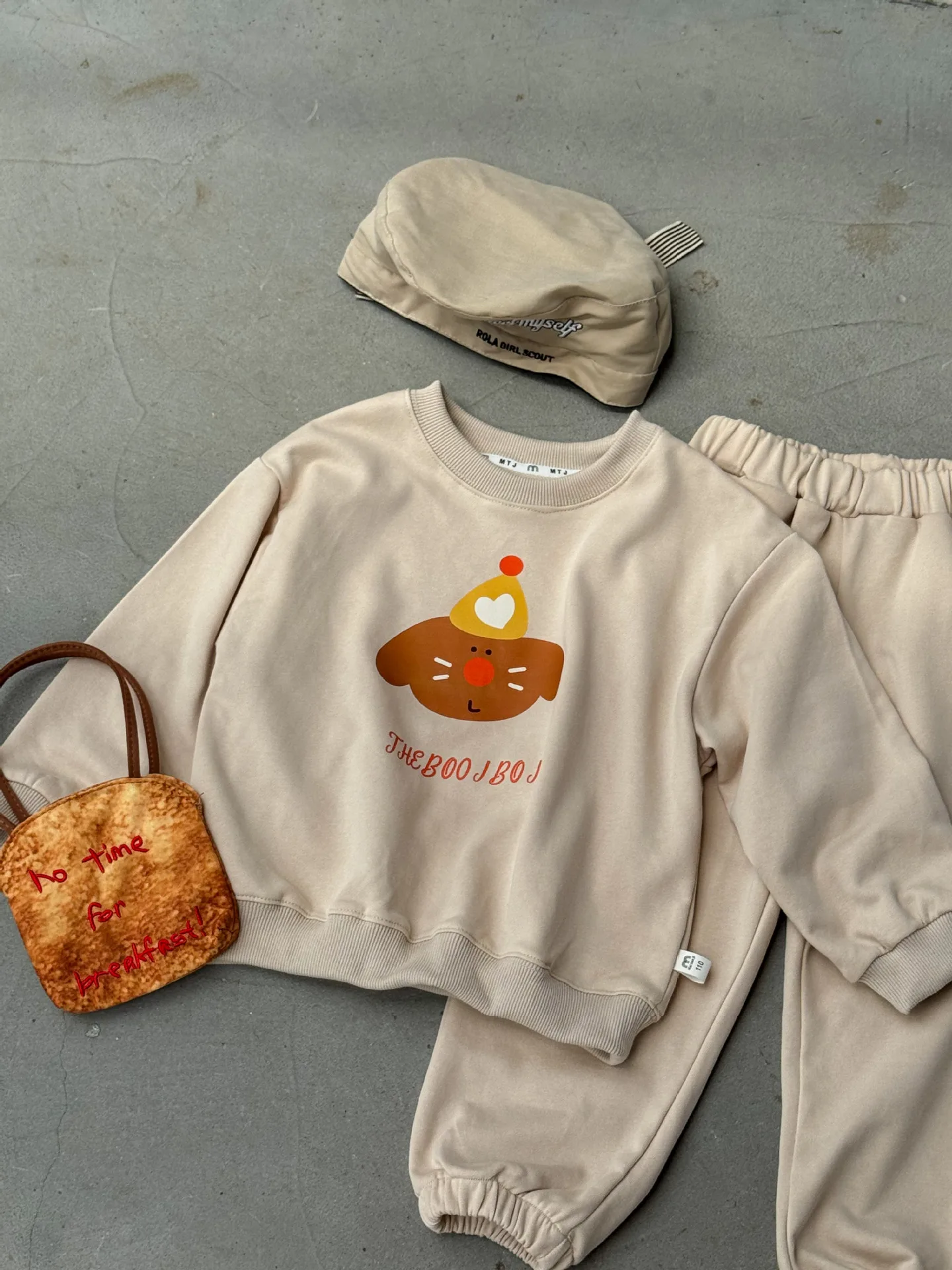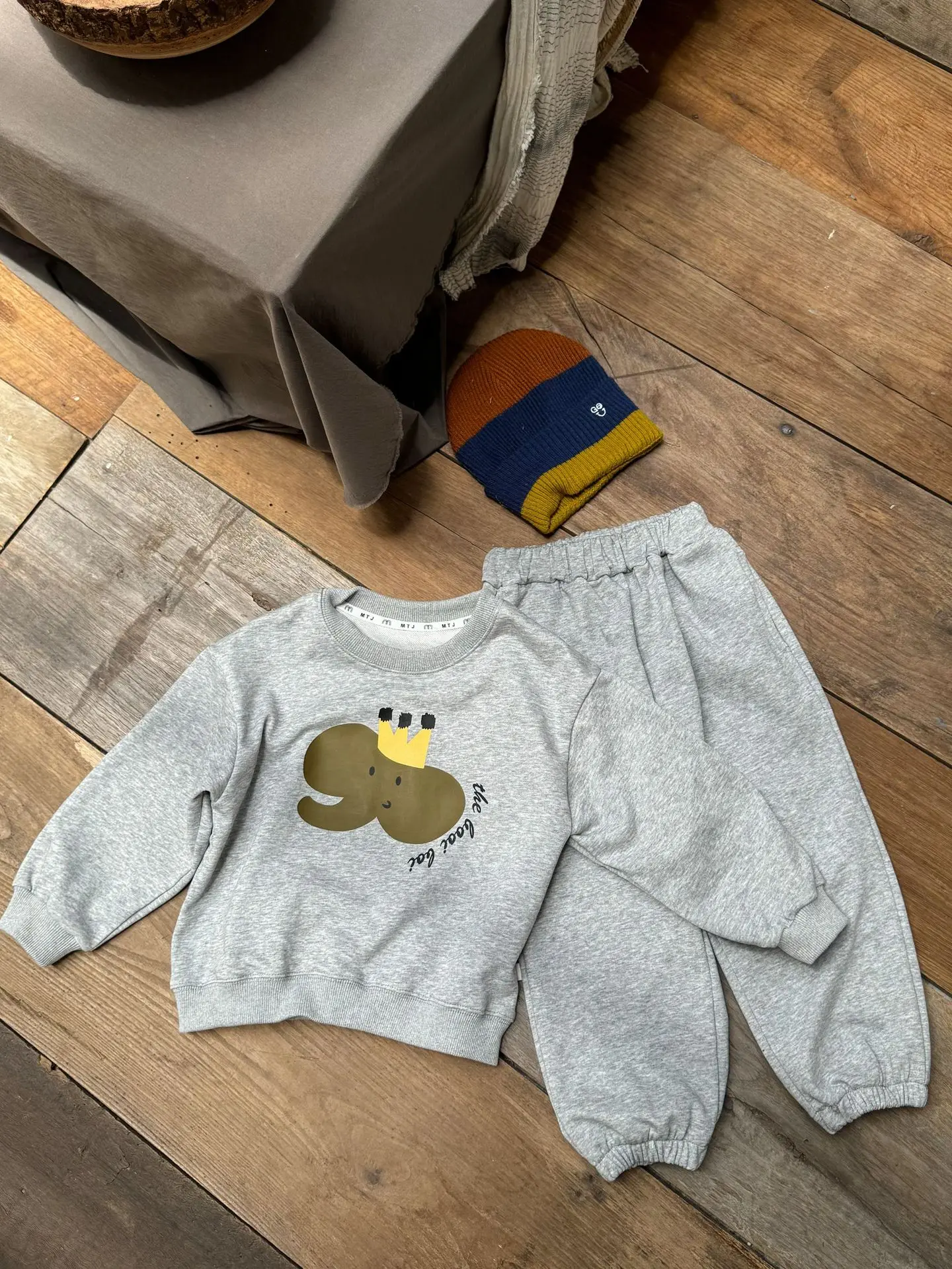 アニマルプリントがかわいい長袖スウェットシャツとスウェットパンツの2点セットです。カジュアルで楽しいデザインは、毎日のコーディネートにぴったり。しっかりとしたコットン素材で、着心地も抜群。3カラーからお選びいただける、男の子にも女の子にもおすすめのセットアップです。