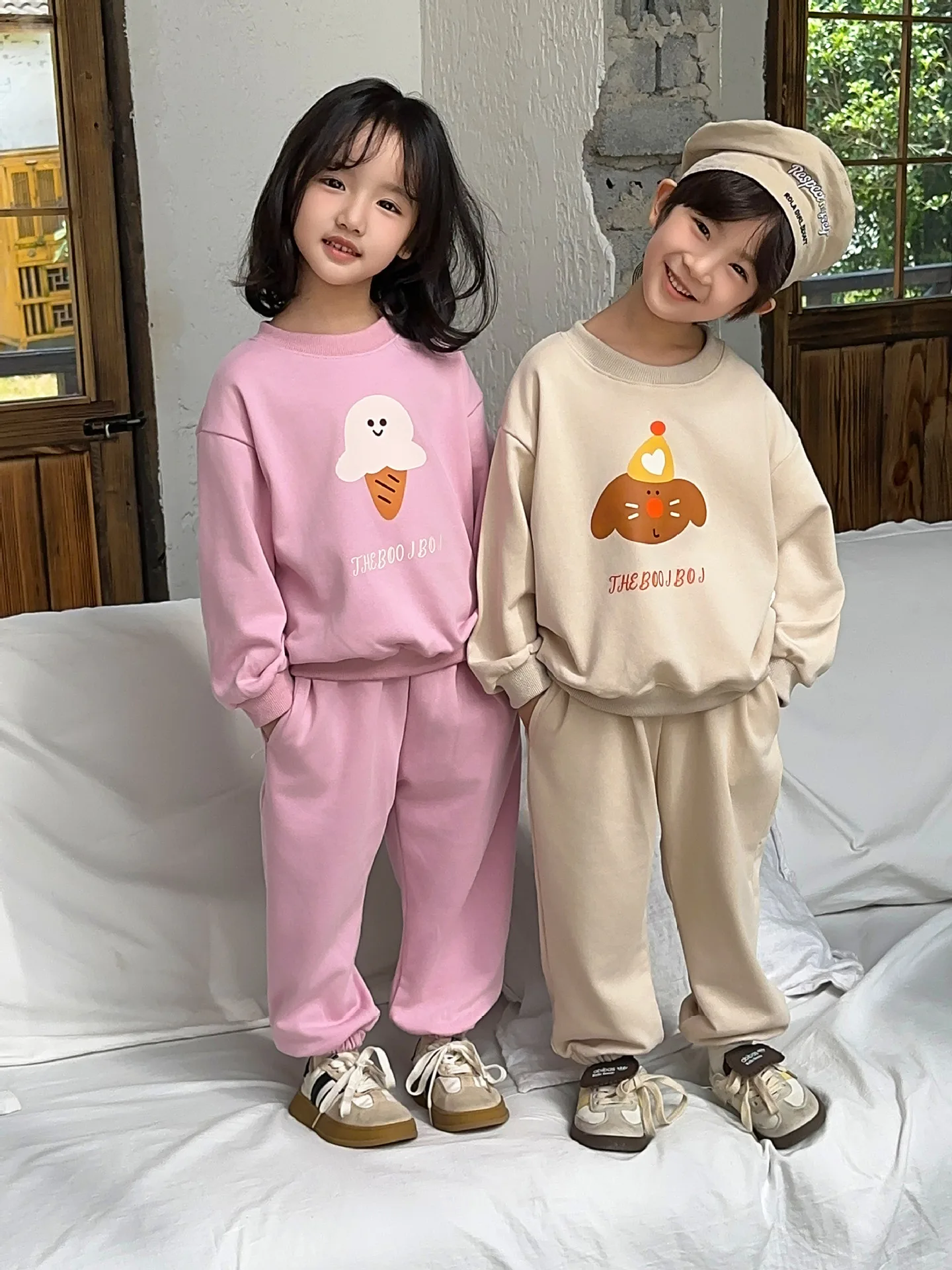 キッズセットアップ 2点セット 長袖プリントスウェットシャツ+スウェットパンツ アニマルプリント3カラー【mh0006808】