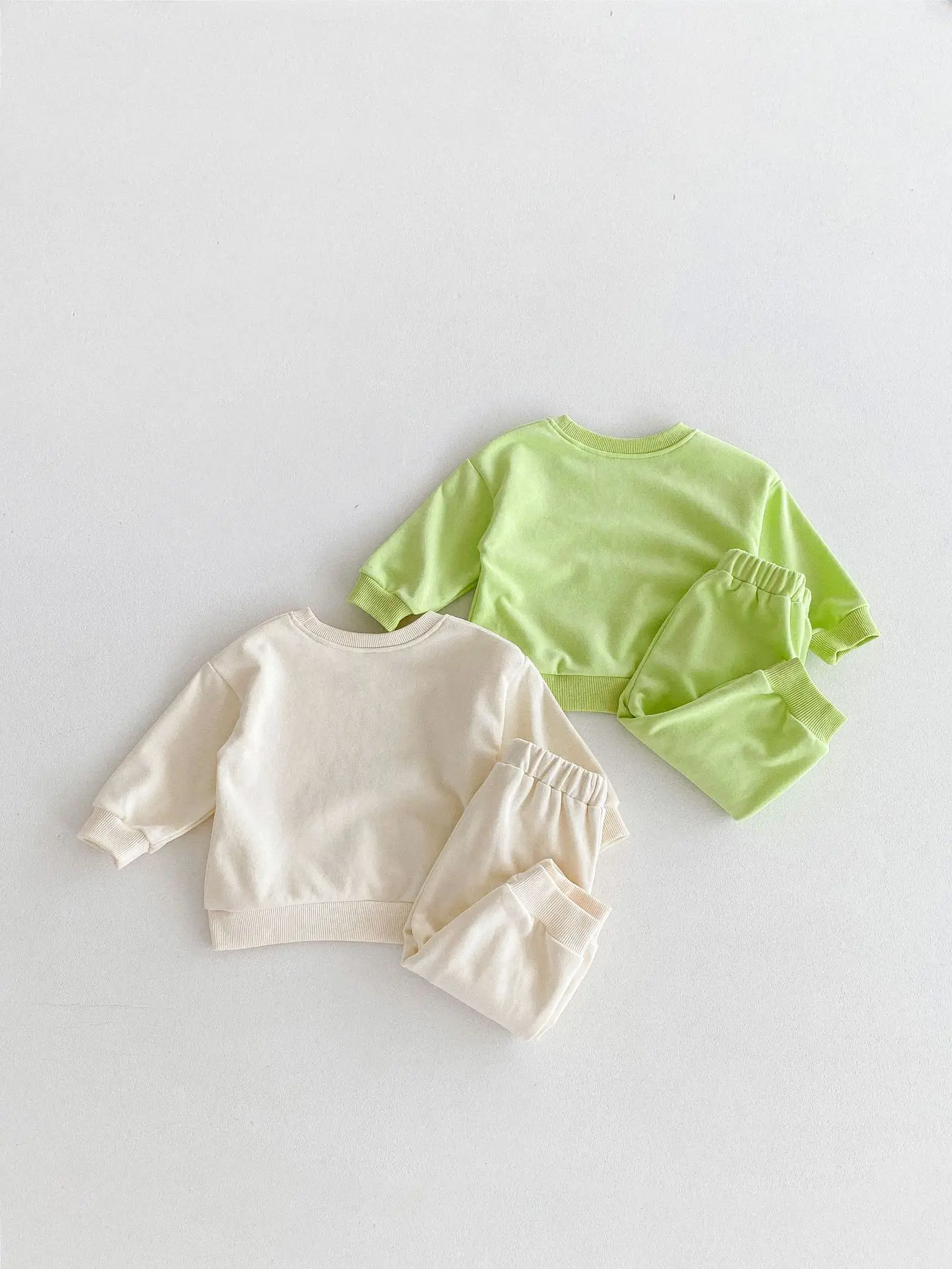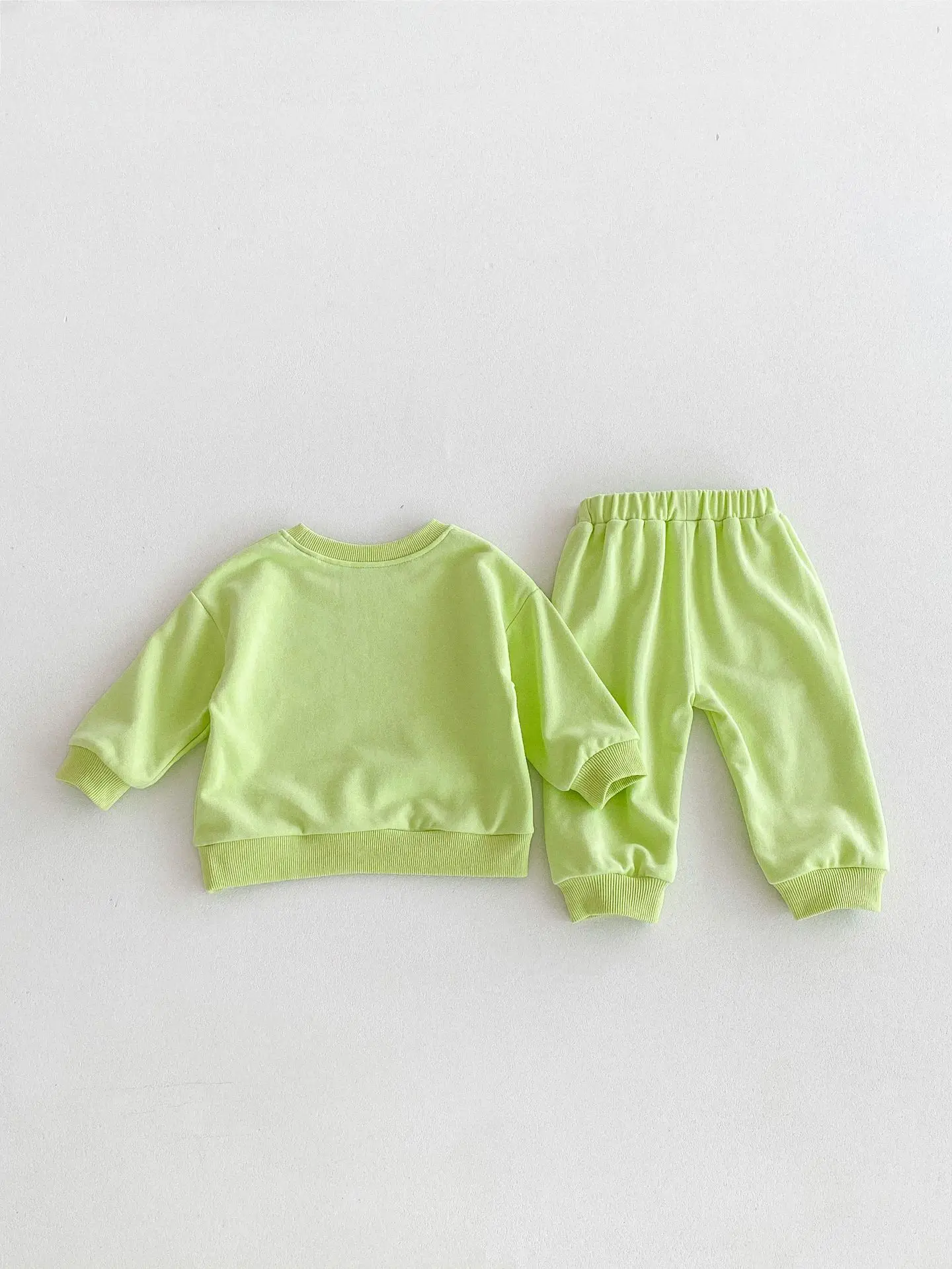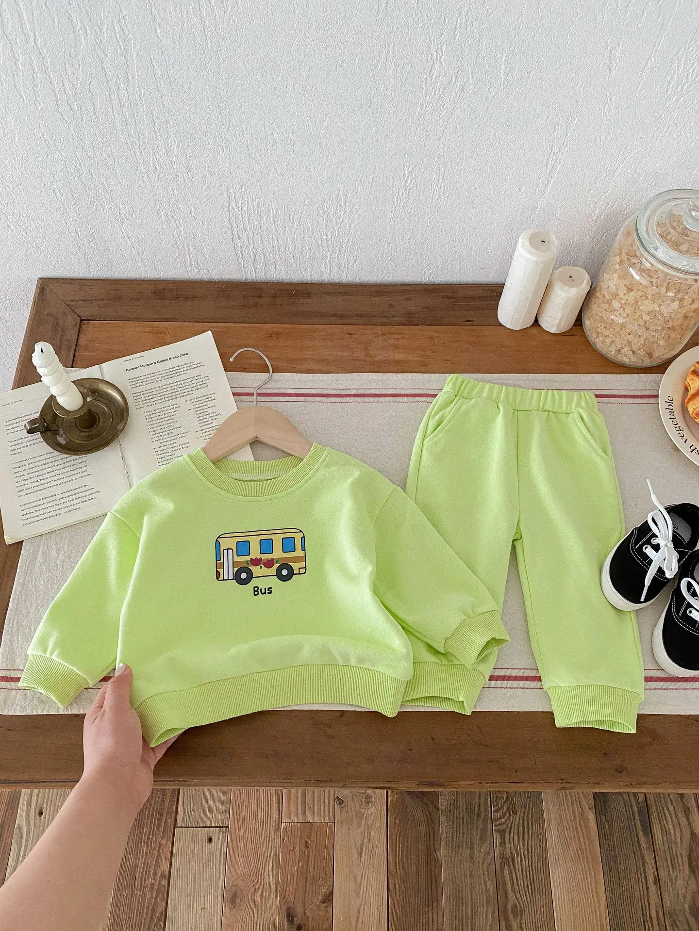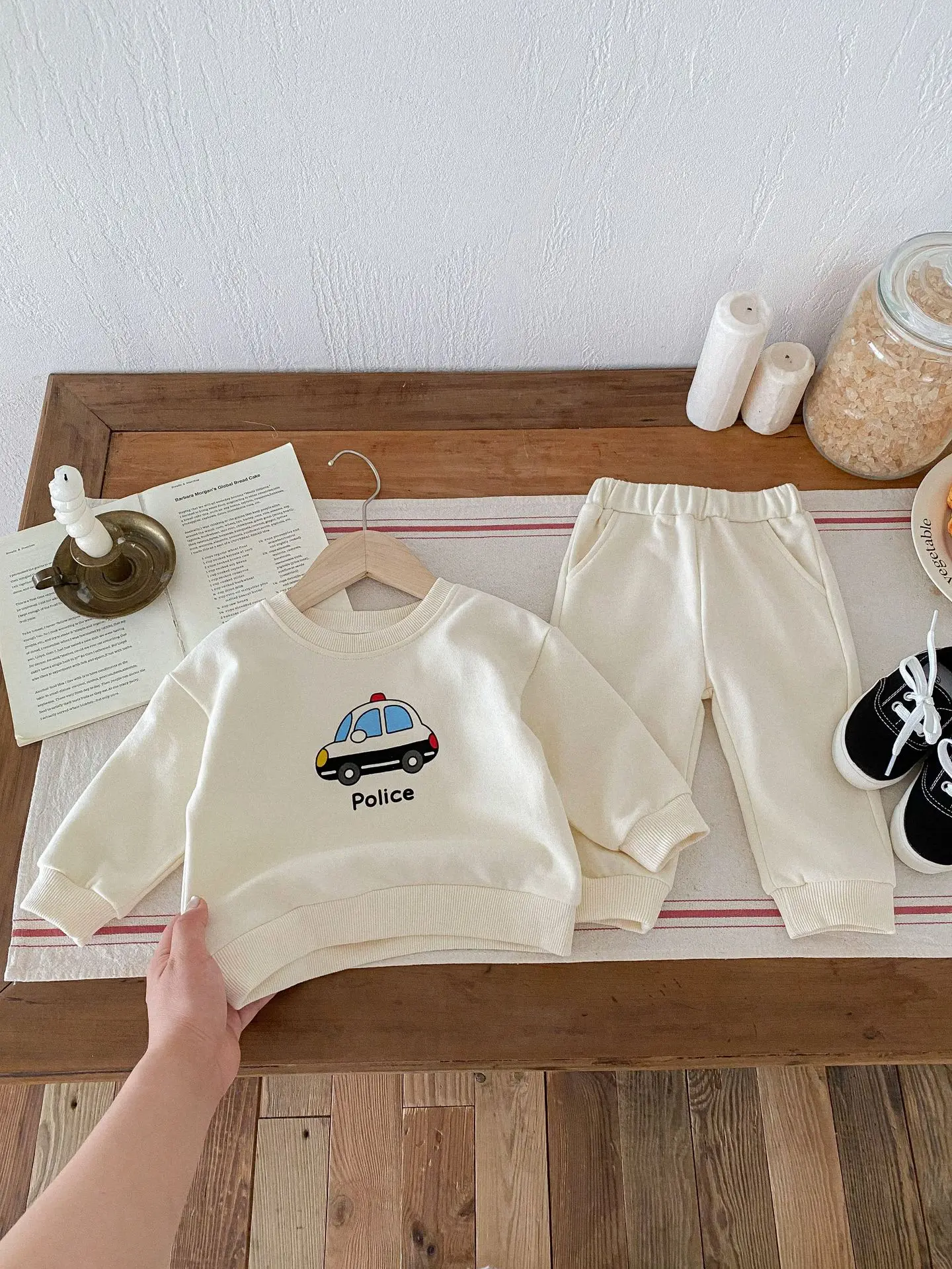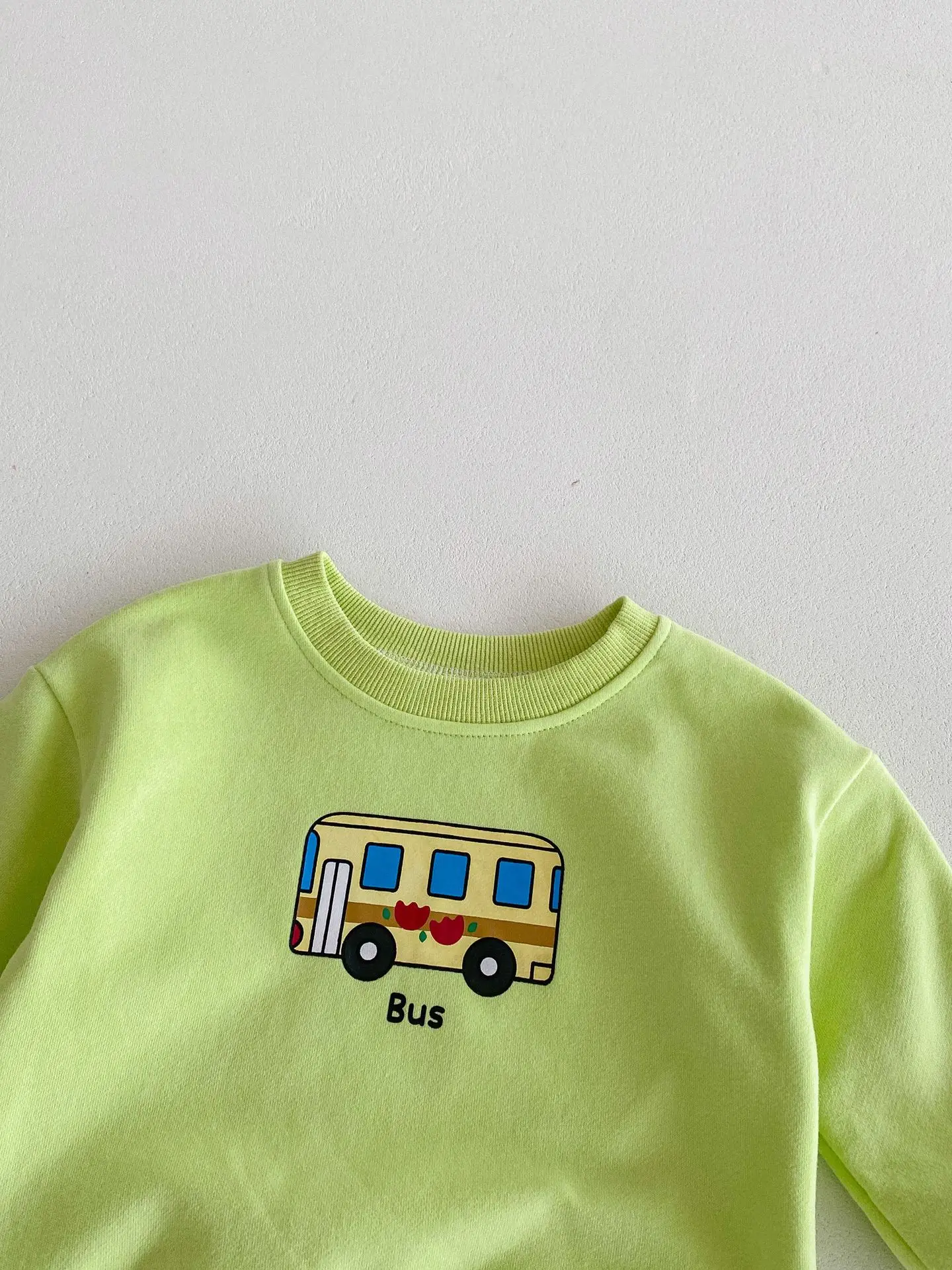 ベビーキッズセットアップ 2点セット パトカー/バス乗り物プリント長袖スウェットシャツ+ロングスウェットパンツ 2カラー【mh0006813】