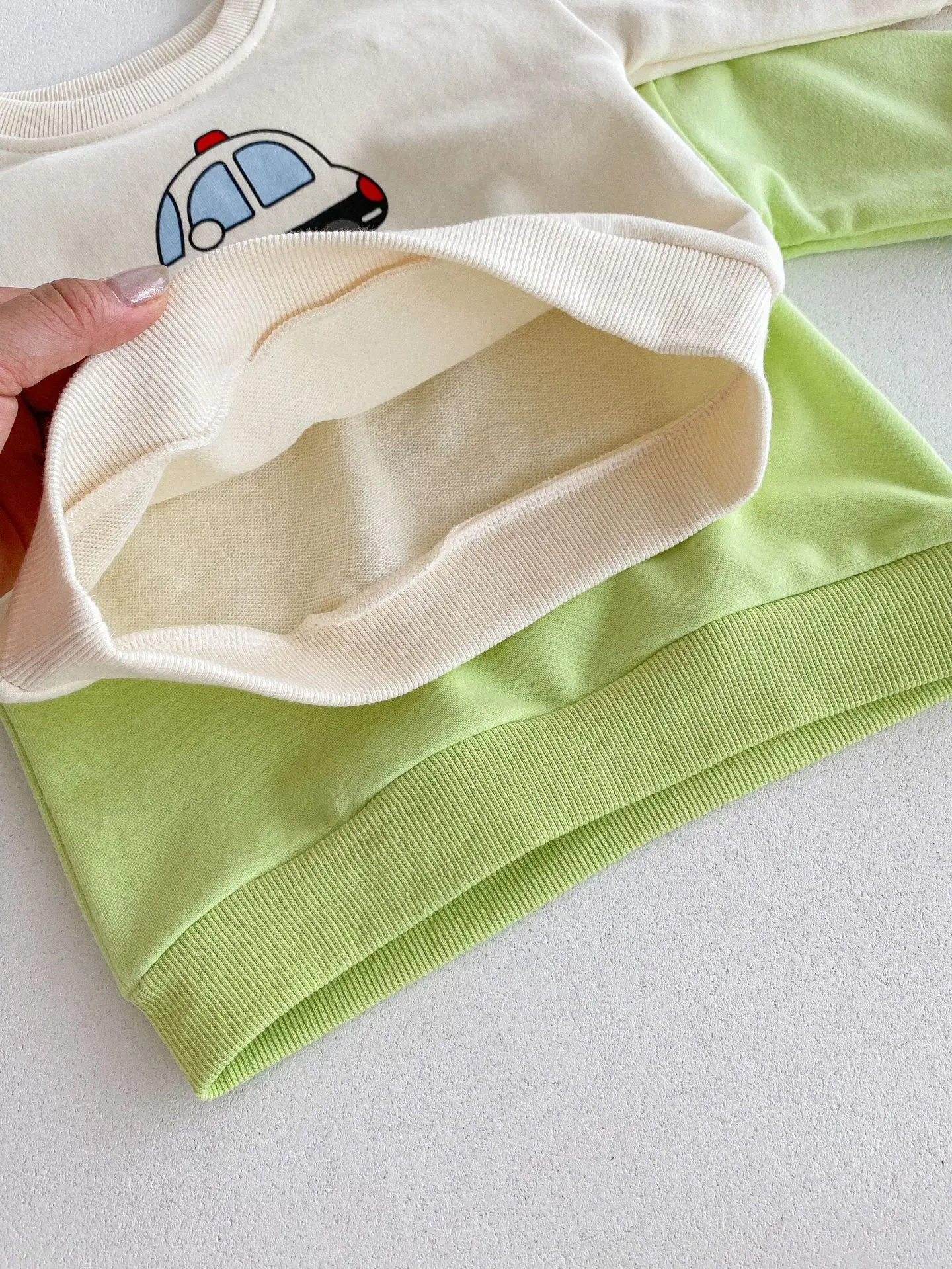 #ベビーセットアップ #乗り物プリント #長袖スウェットシャツ #ロングパンツ #カジュアルスタイル #子供服