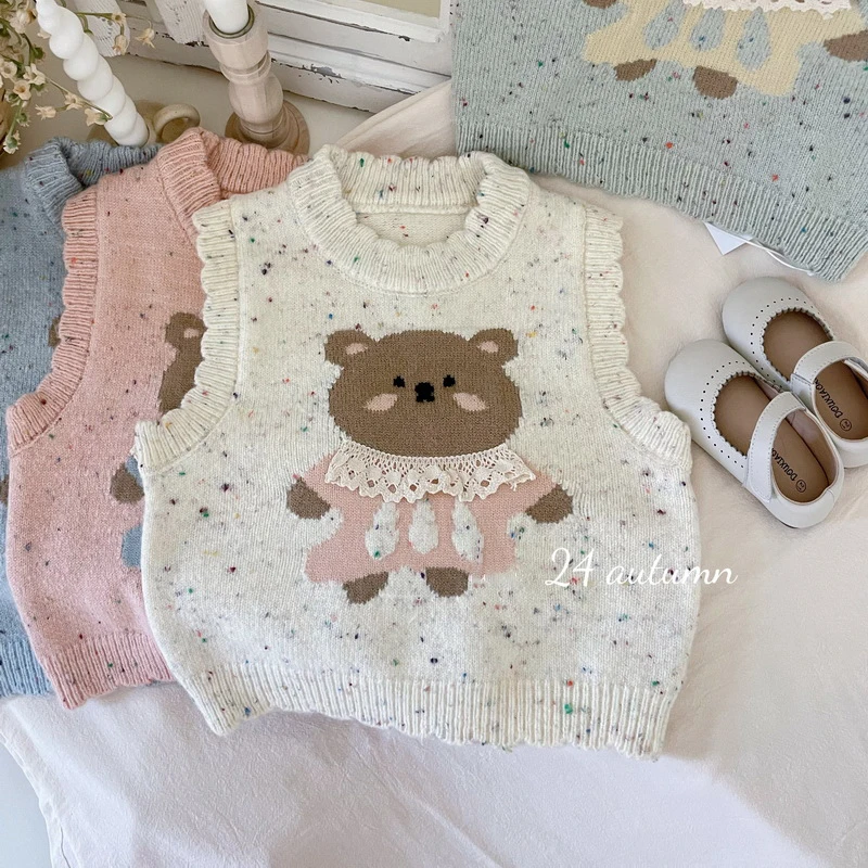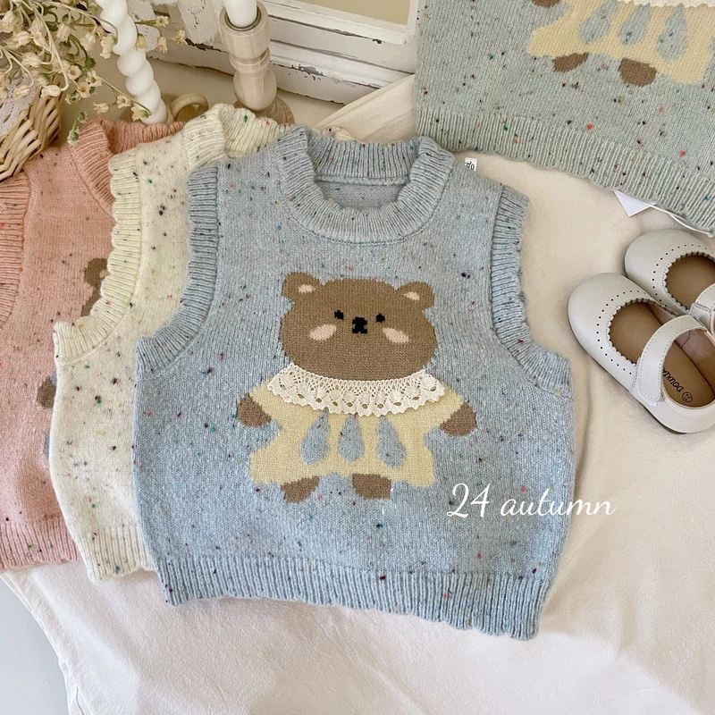 キッズベスト ベアくまレースニットベストトップス 3カラー【mh0006917】