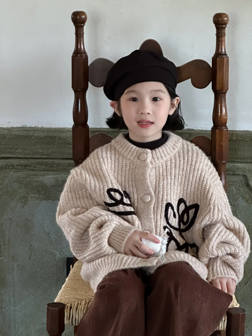 アートフラワーのデザインが印象的なキッズカーディガン。アプリコットカラーのルーズニットジャケットは、柔らかなウール素材で編まれており、秋から冬にかけての温かさをしっかりと保ちます。カジュアルでありながらおしゃれな印象を与えるこのカーディガンは、どんなコーディネートにも合わせやすく、デイリー使いに最適です。ゆったりとしたシルエットがリラックス感を演出し、お子様の快適な着心地をサポートします。特別な日のおしゃれアイテムとしても重宝する一着です。