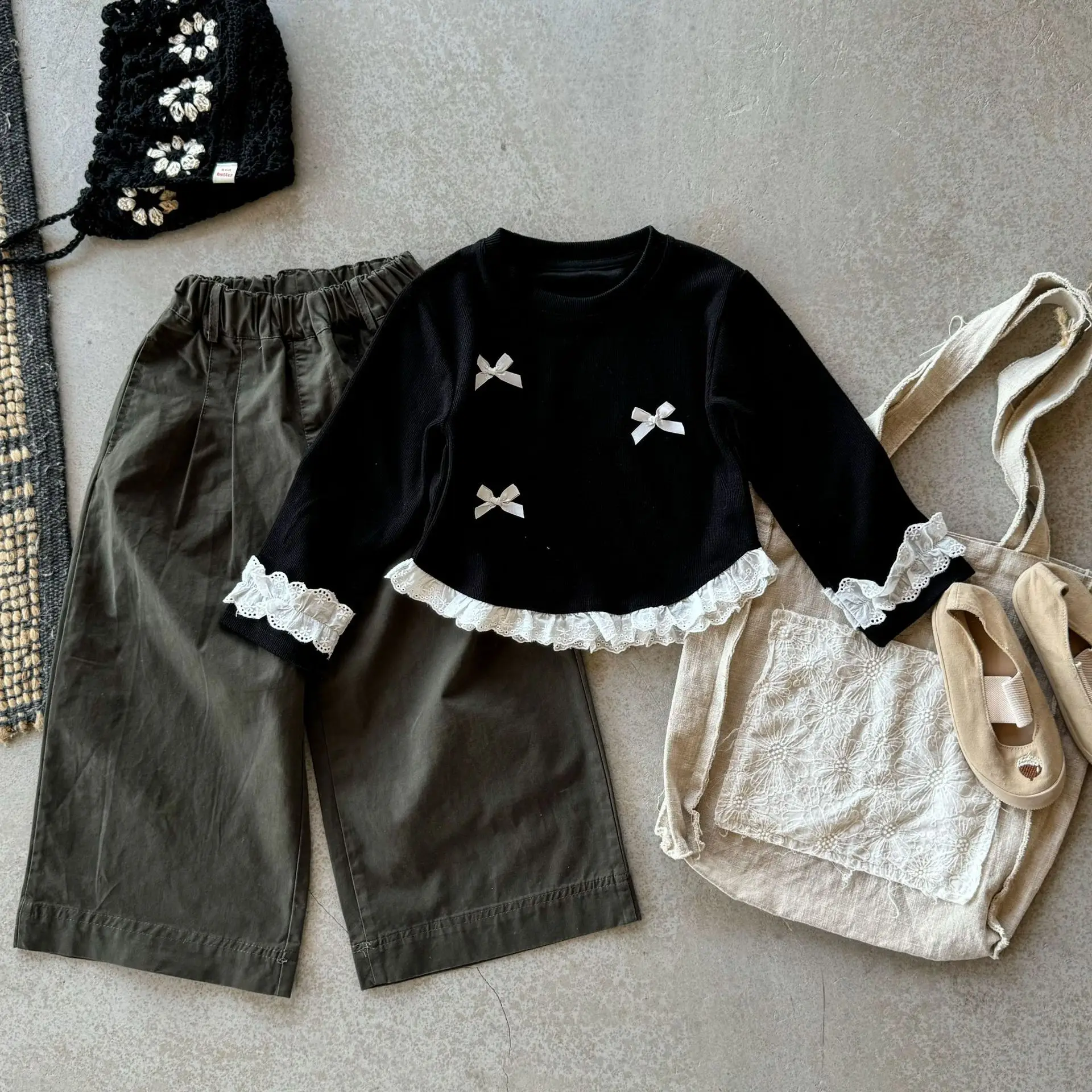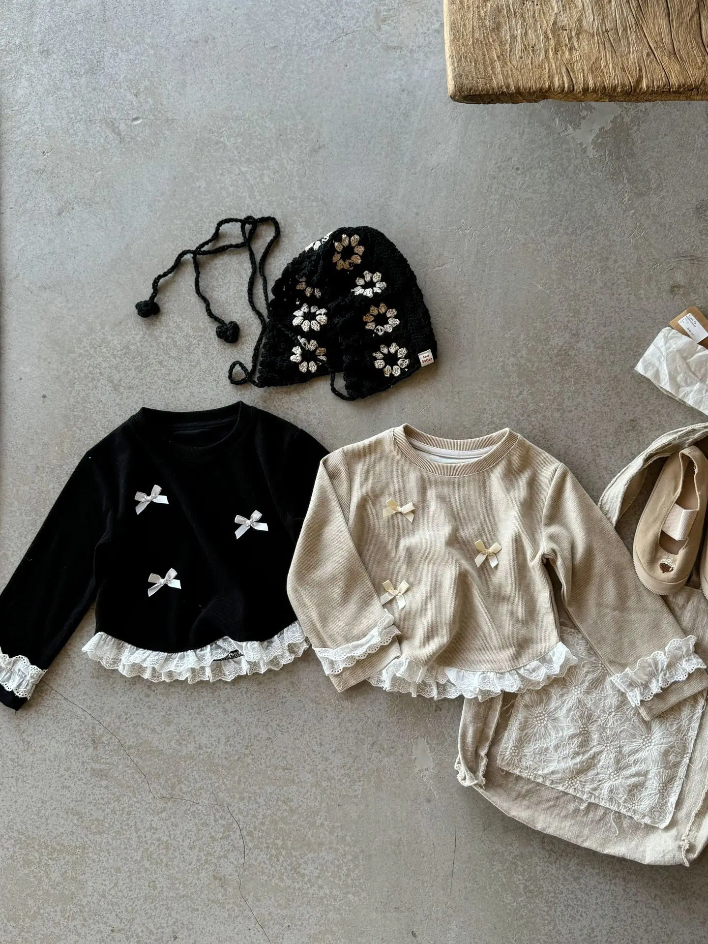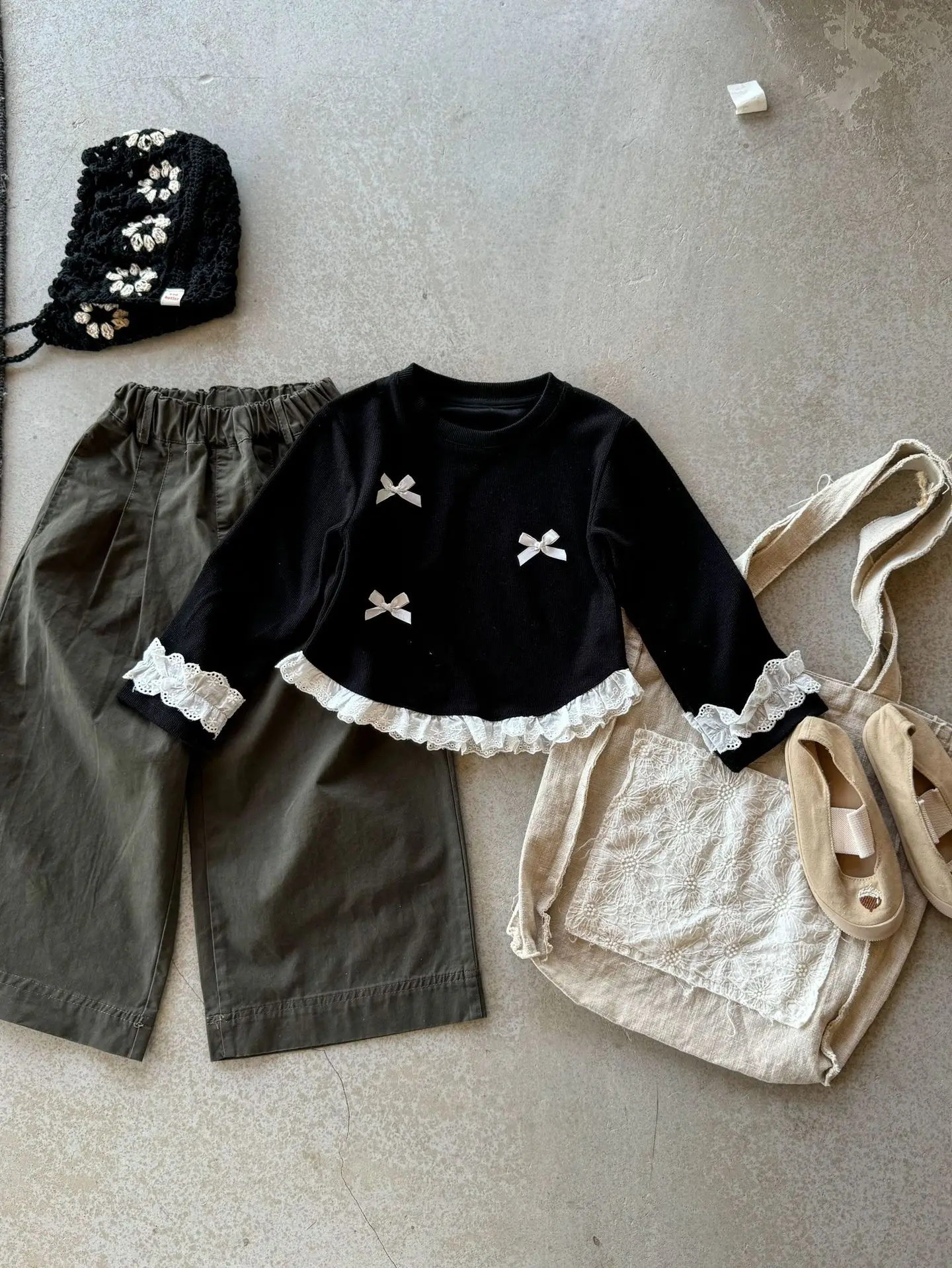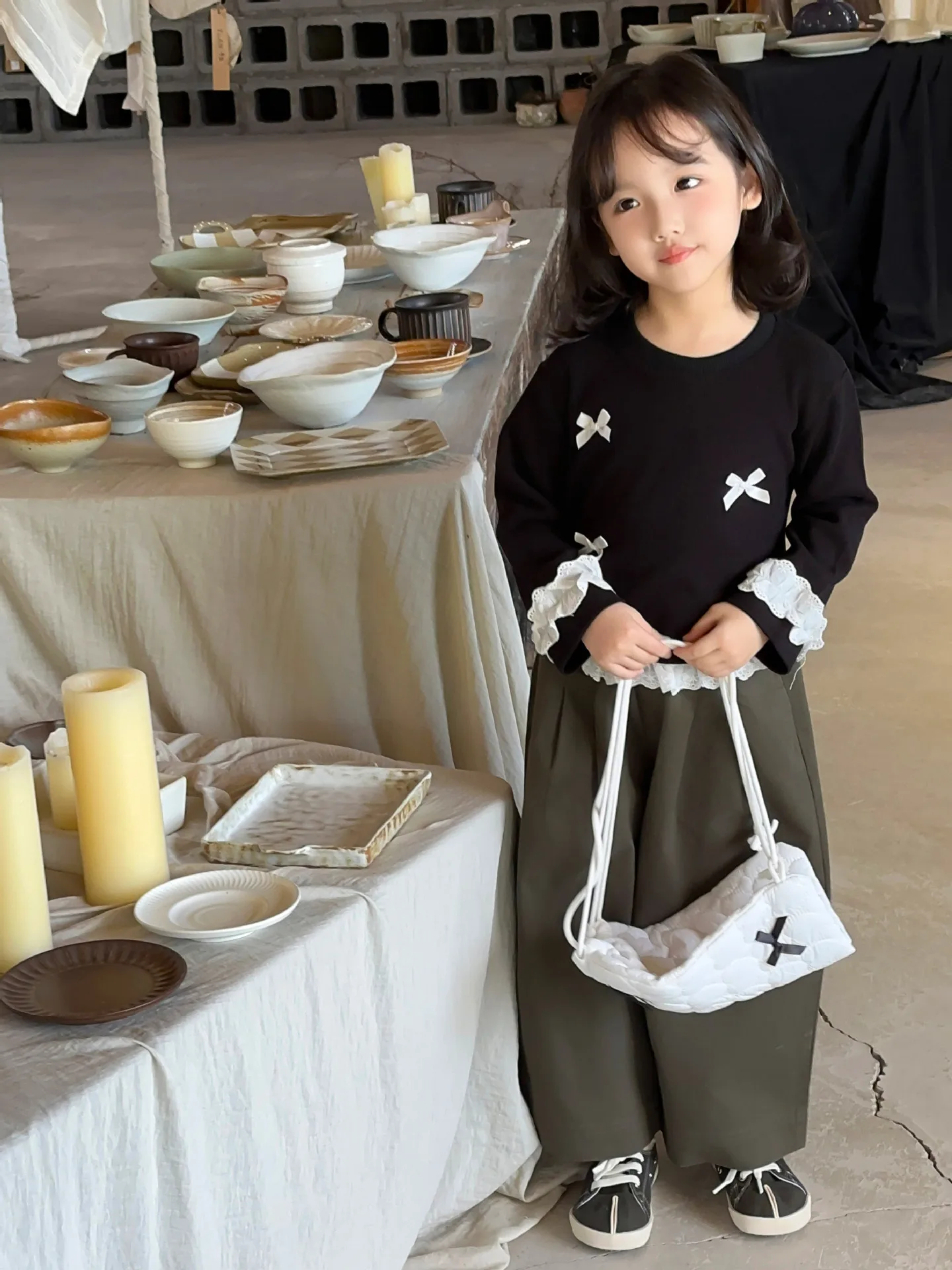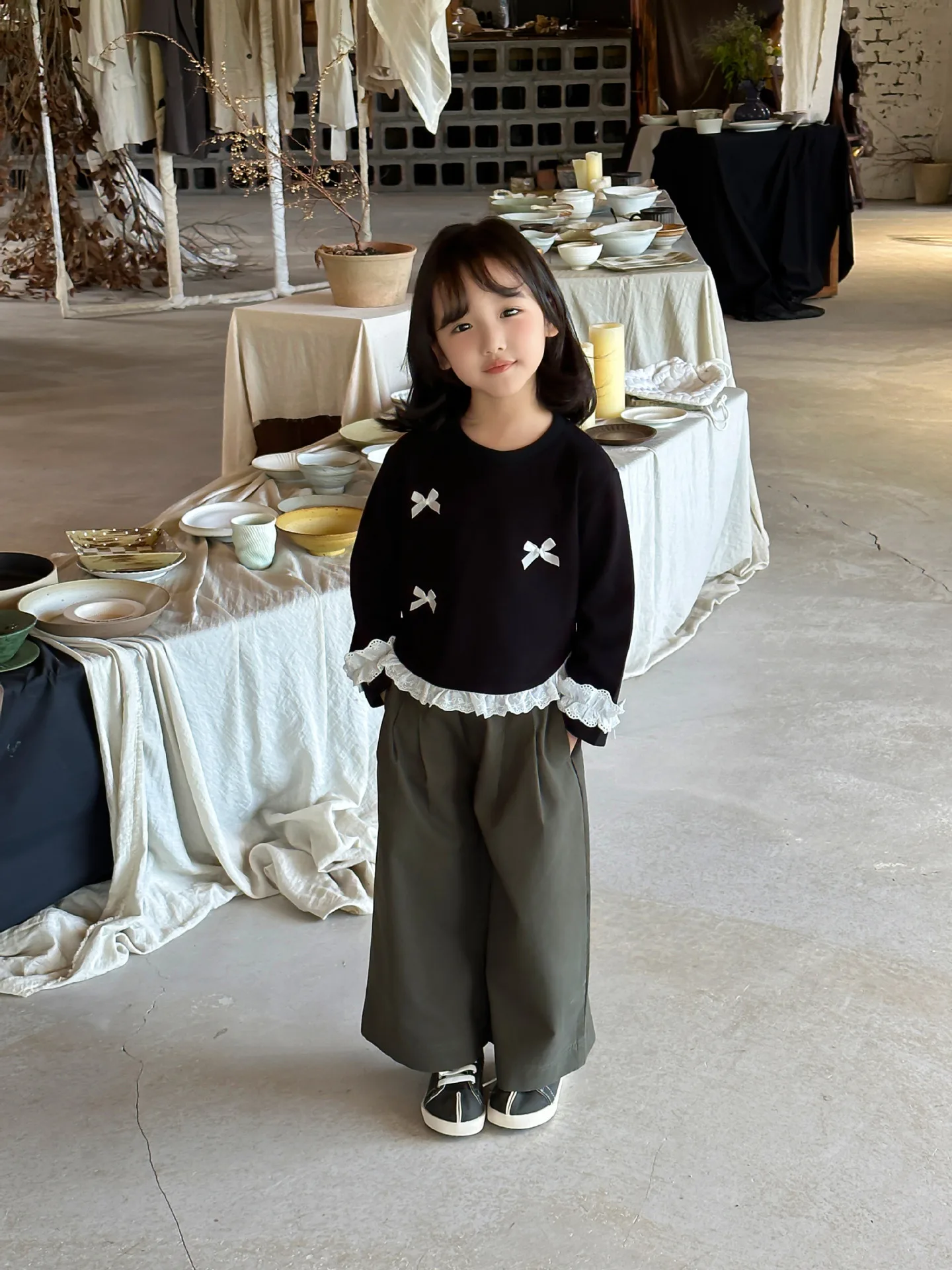 キッズトップス リボン裾袖フリル長袖Tシャツ 2カラー【mh0007320】