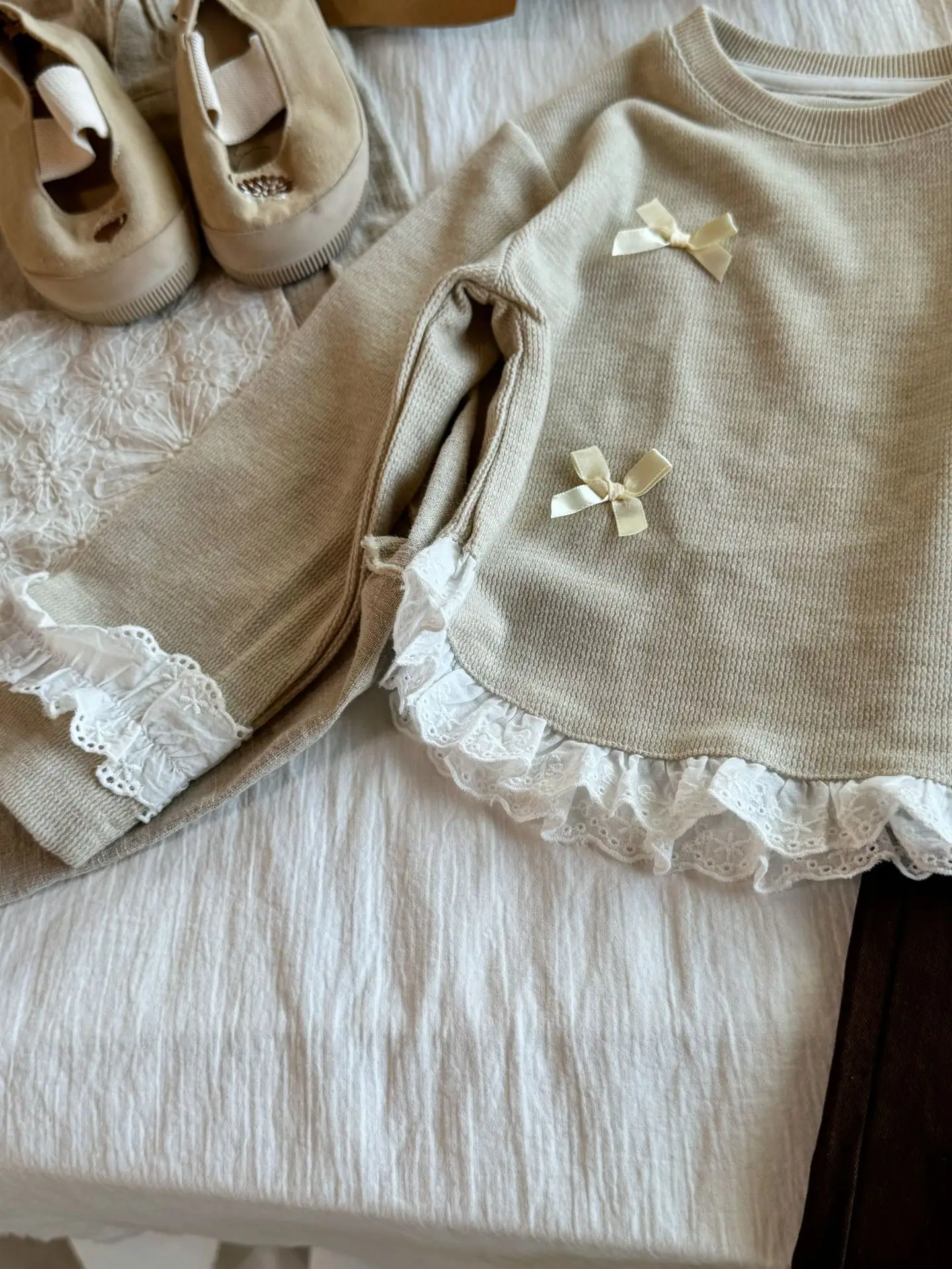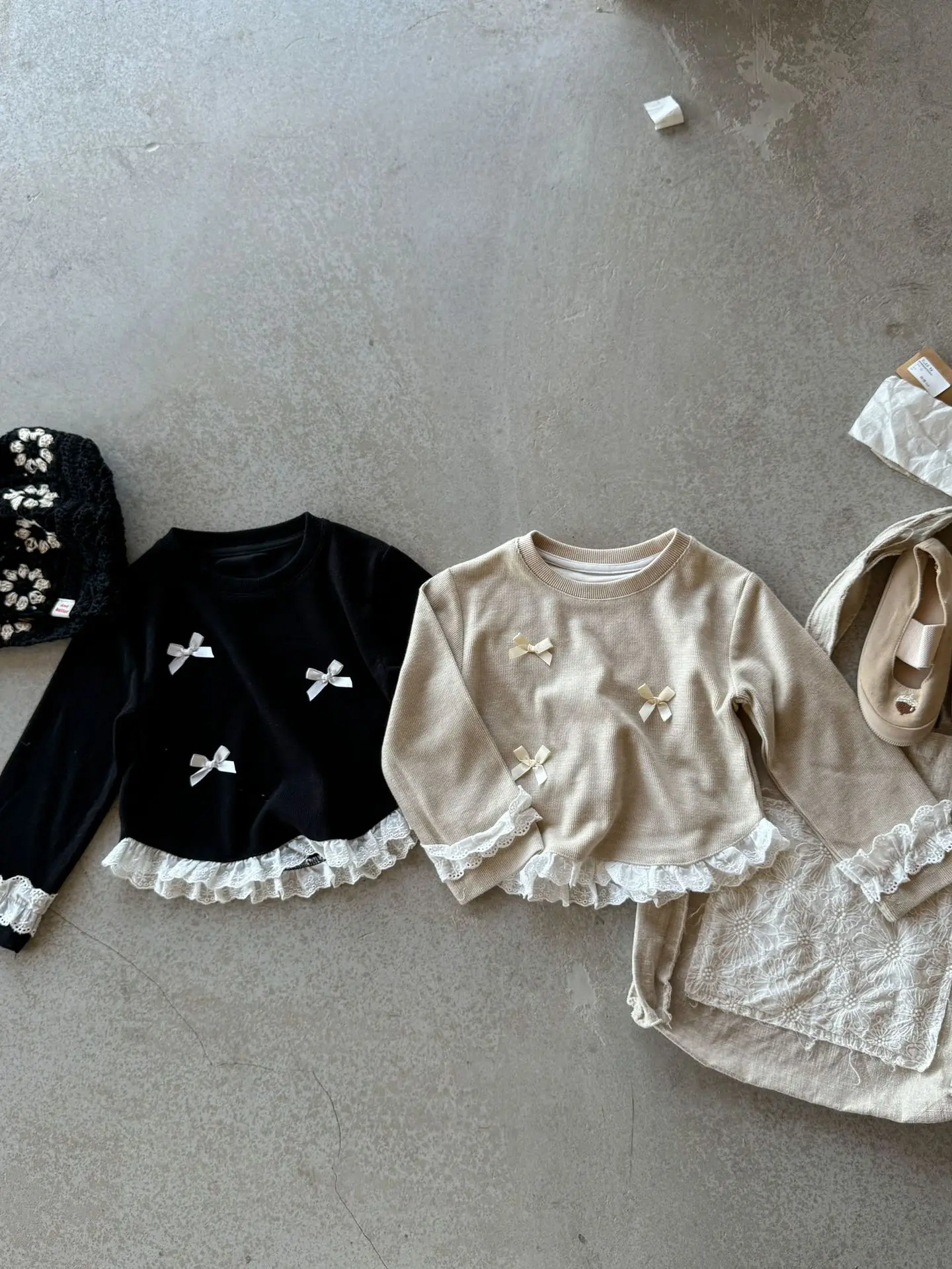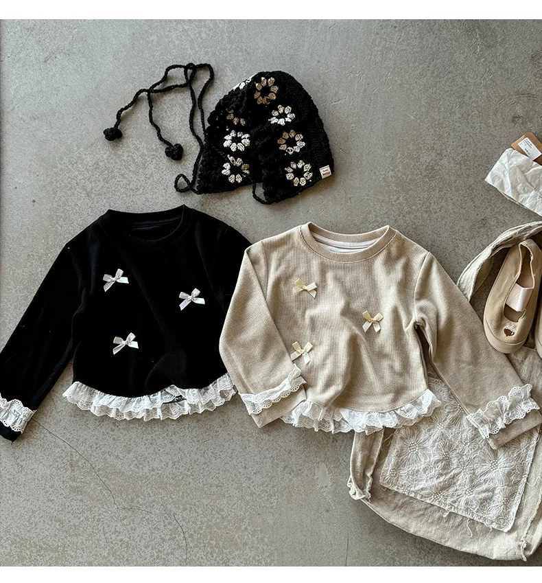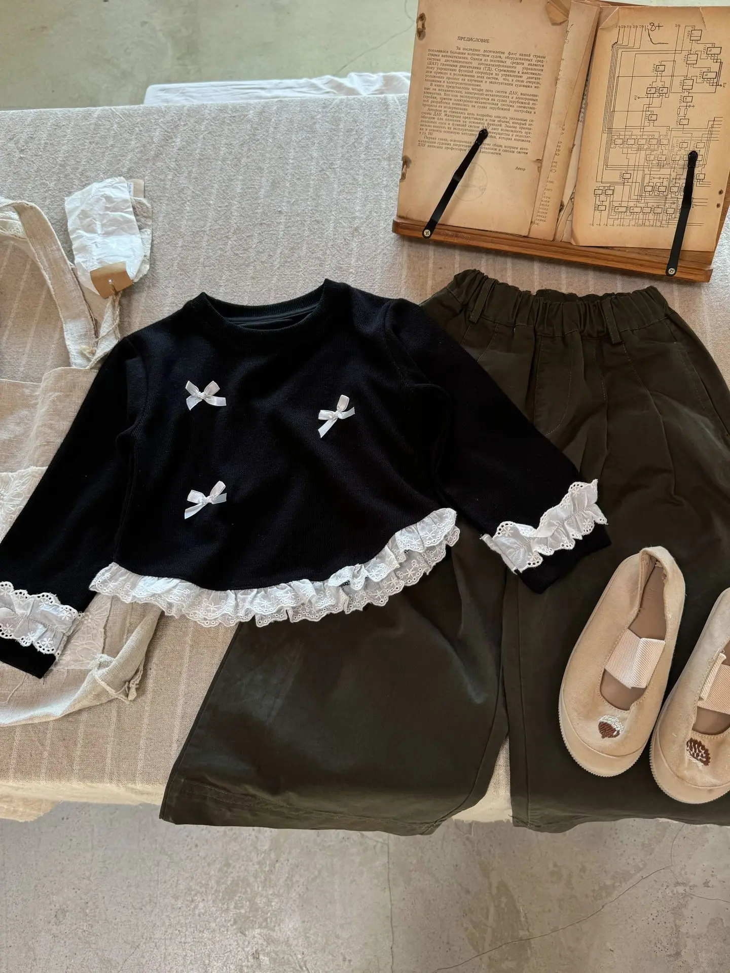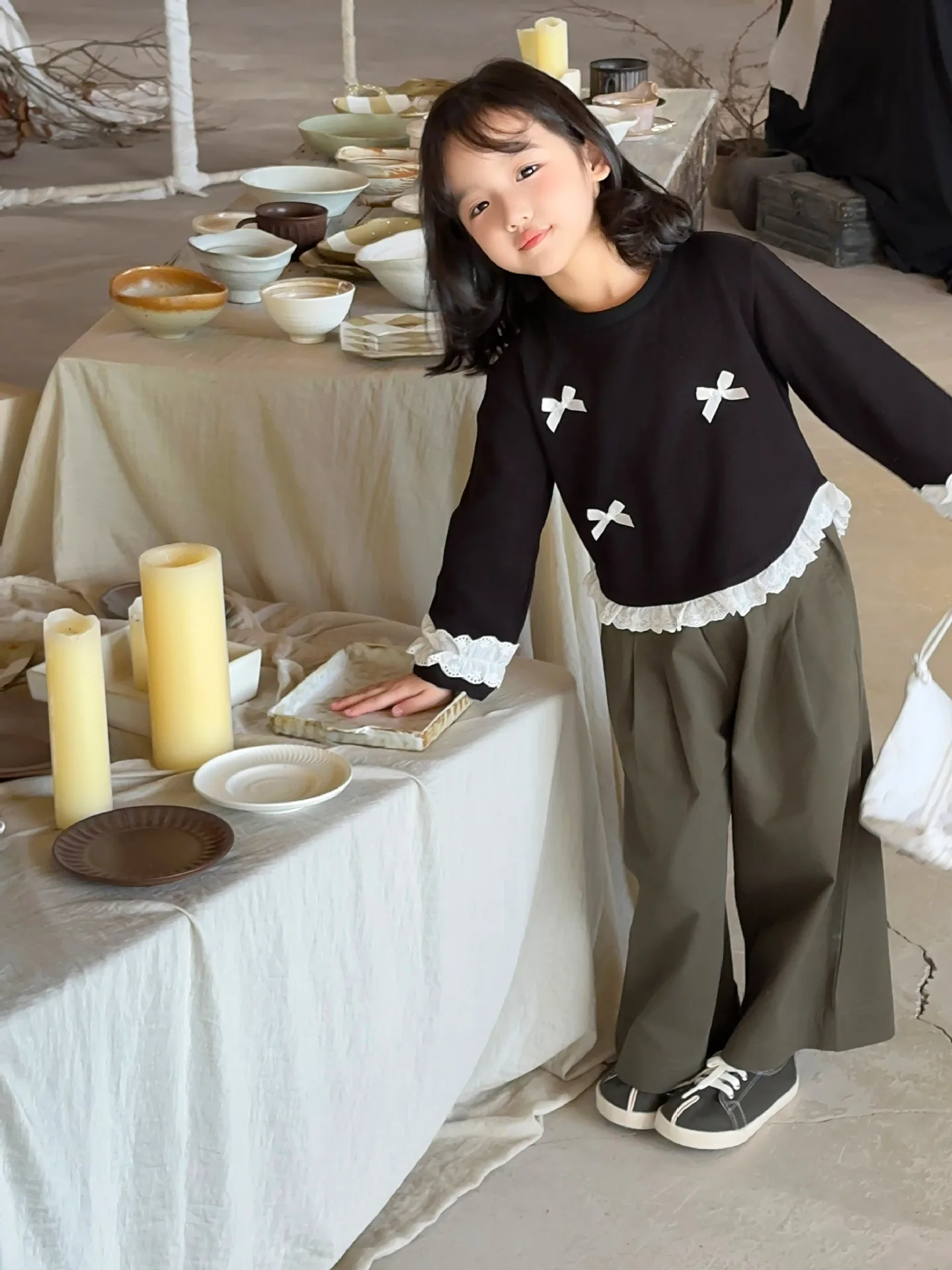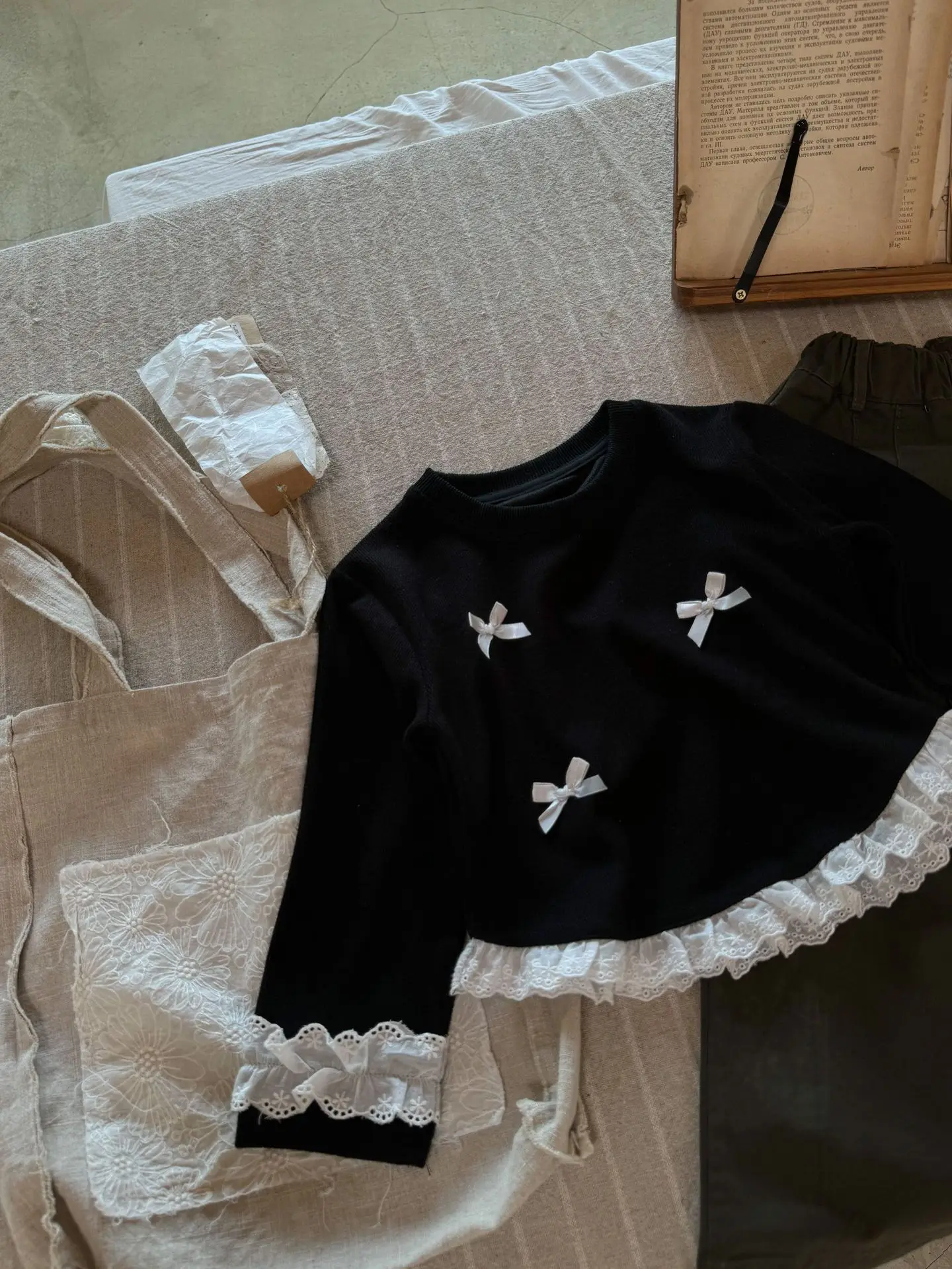 キッズトップス リボン裾袖フリル長袖Tシャツ 2カラー【mh0007320】