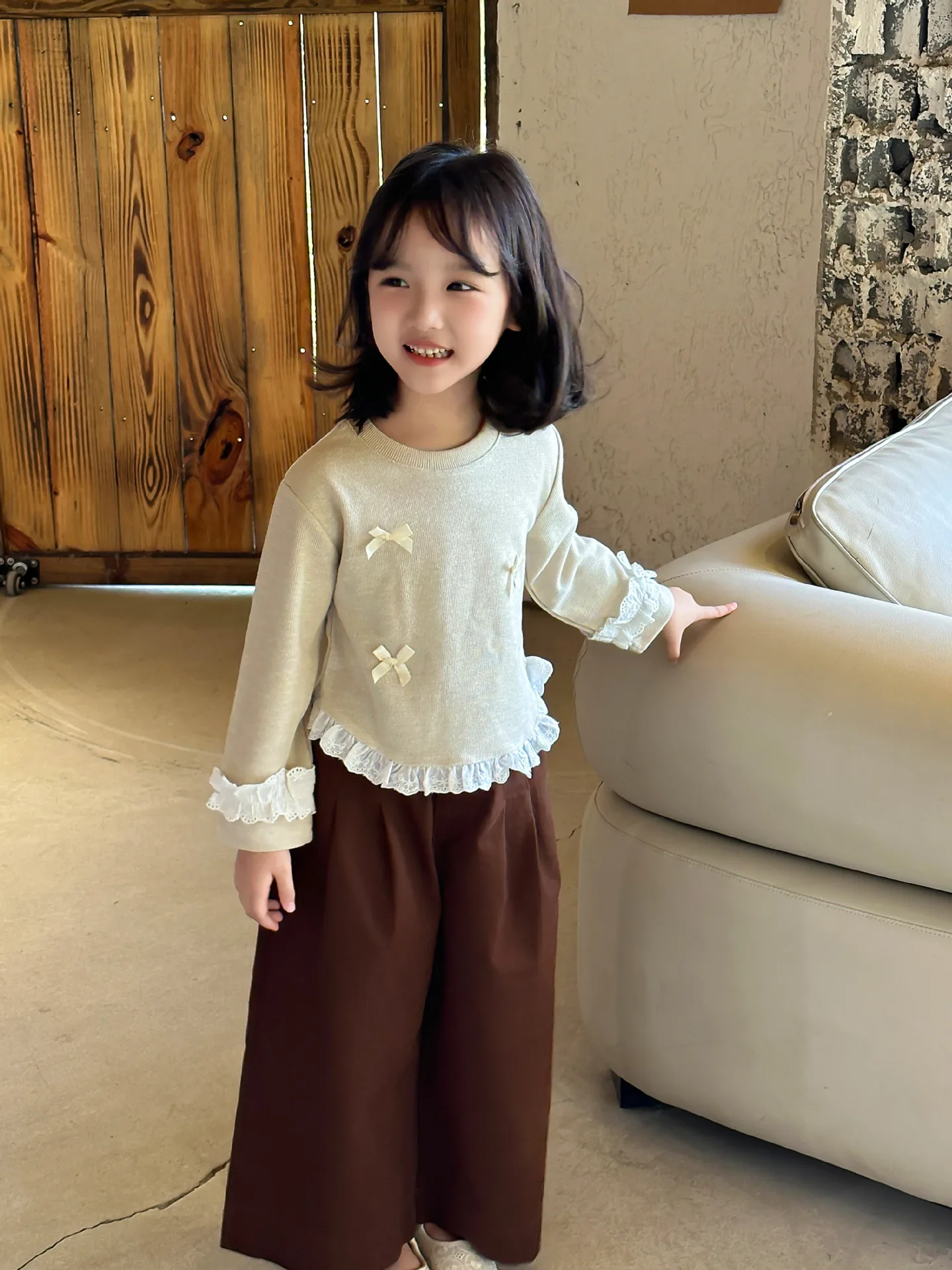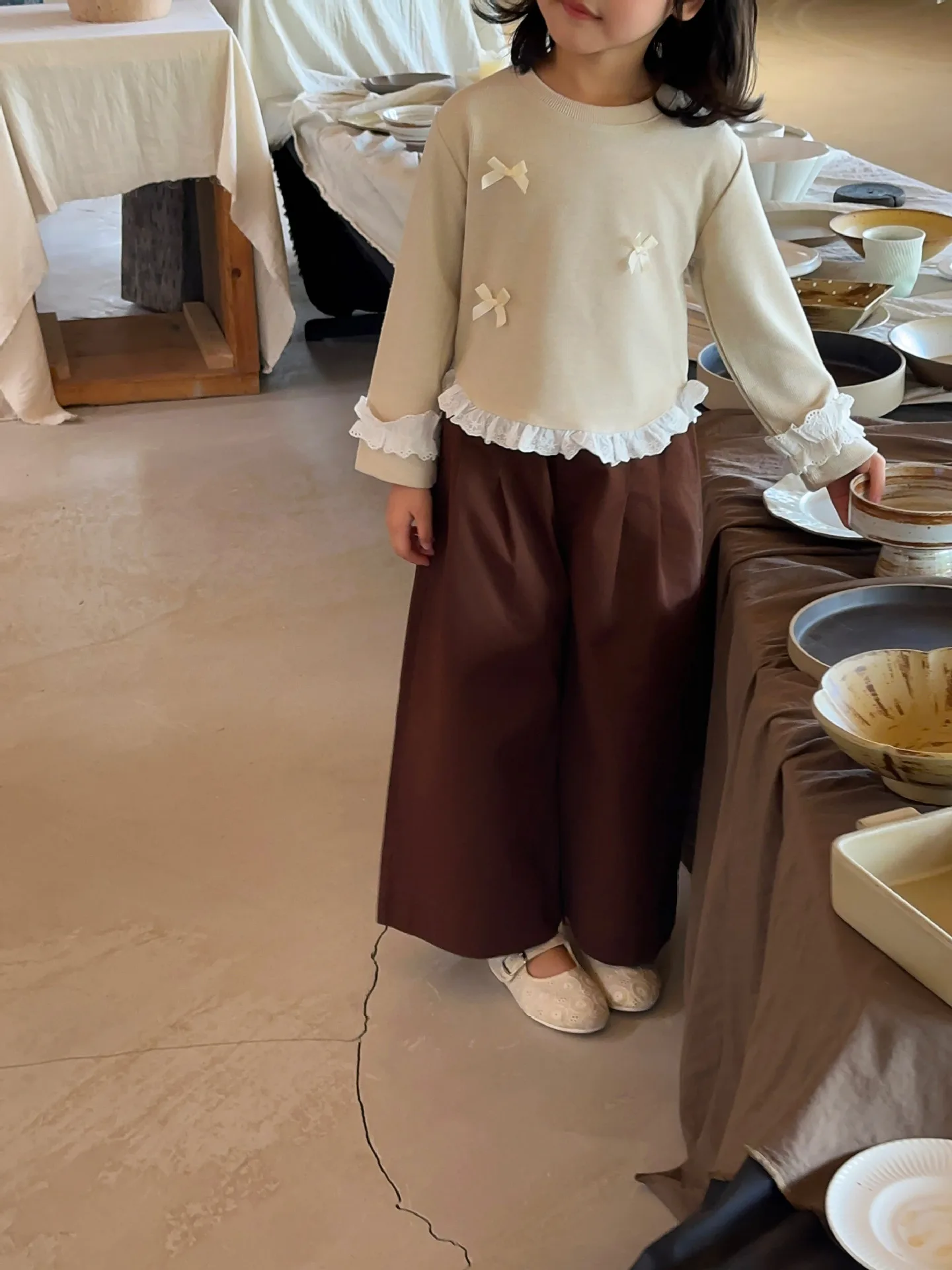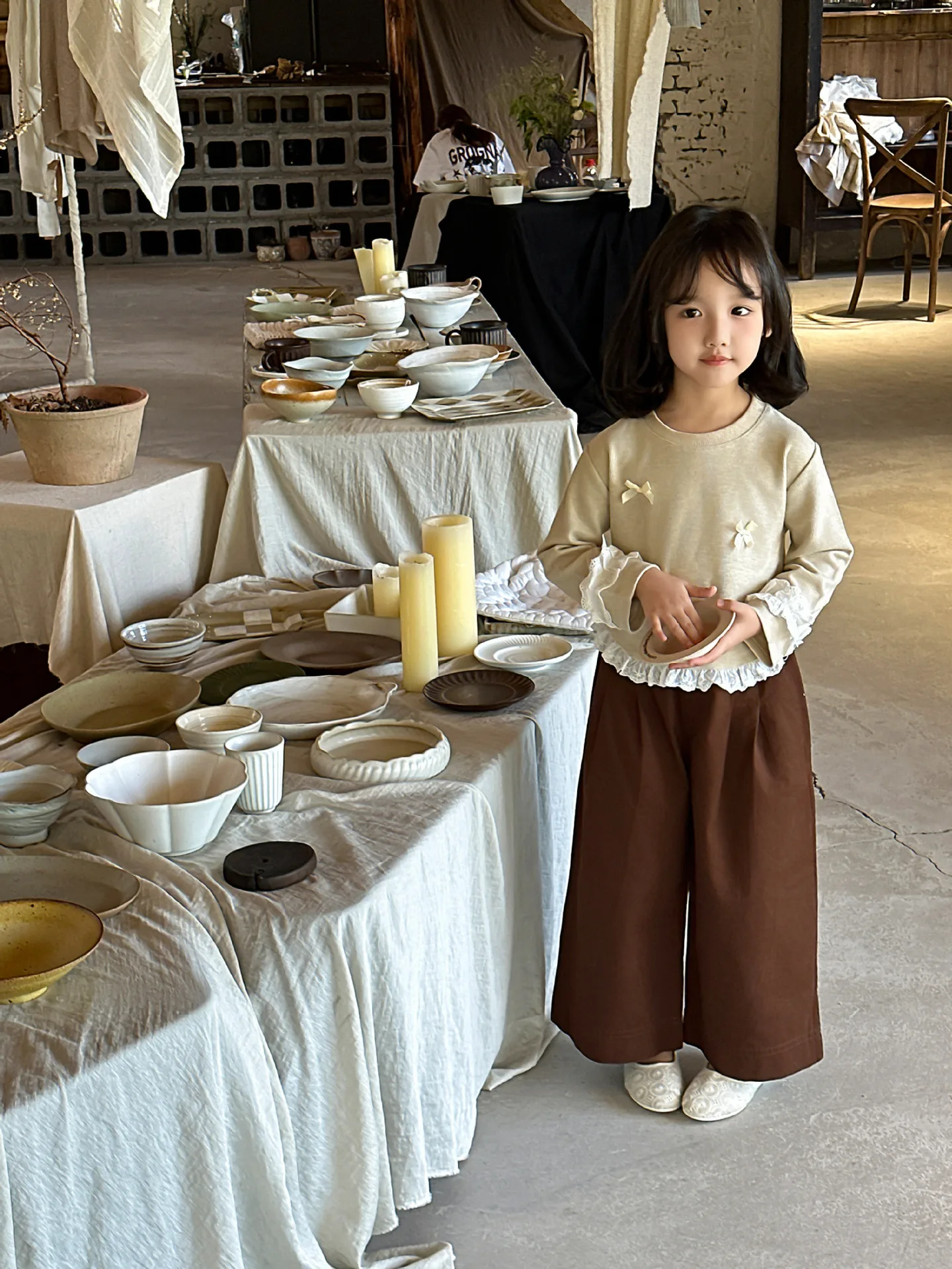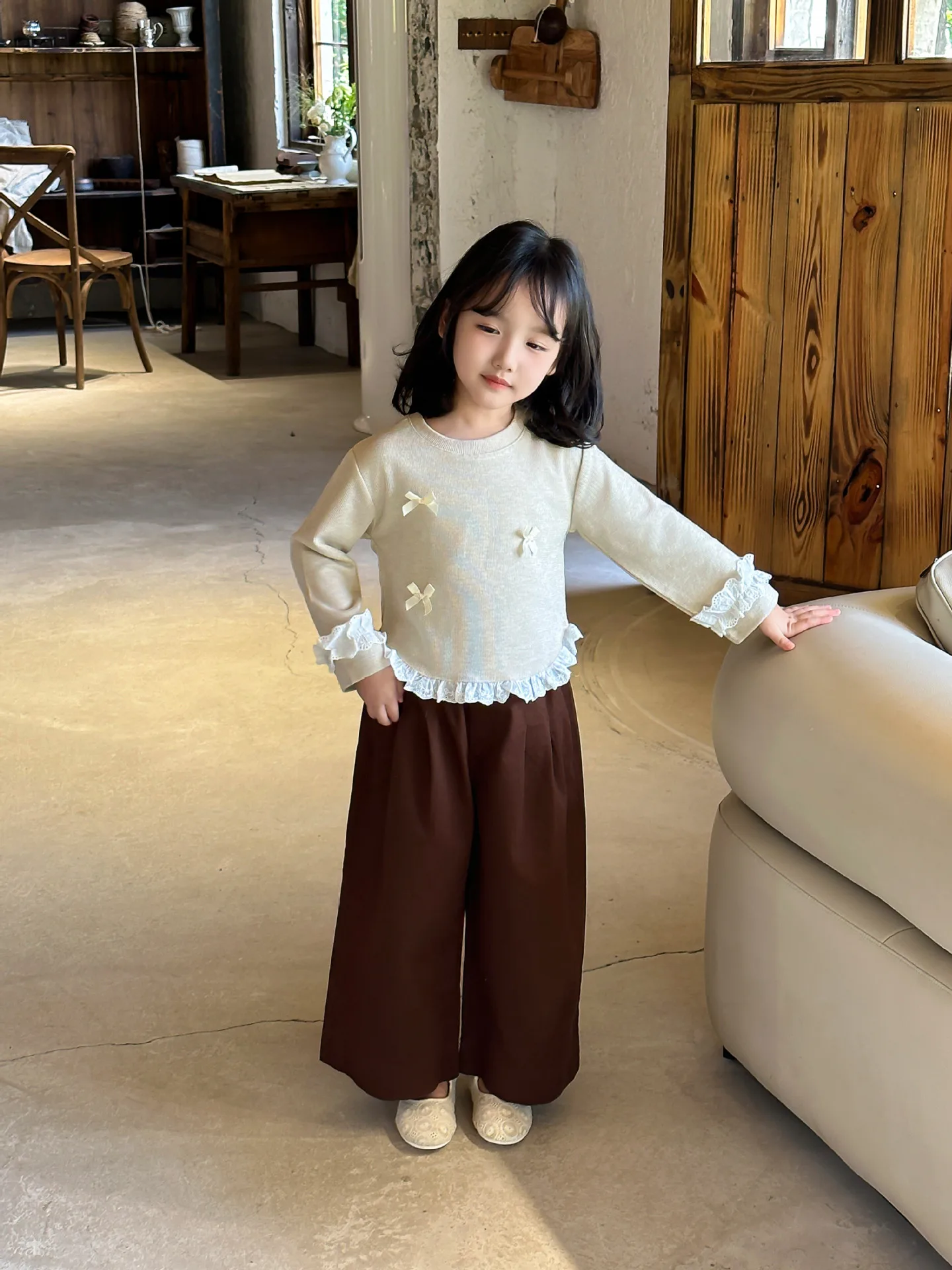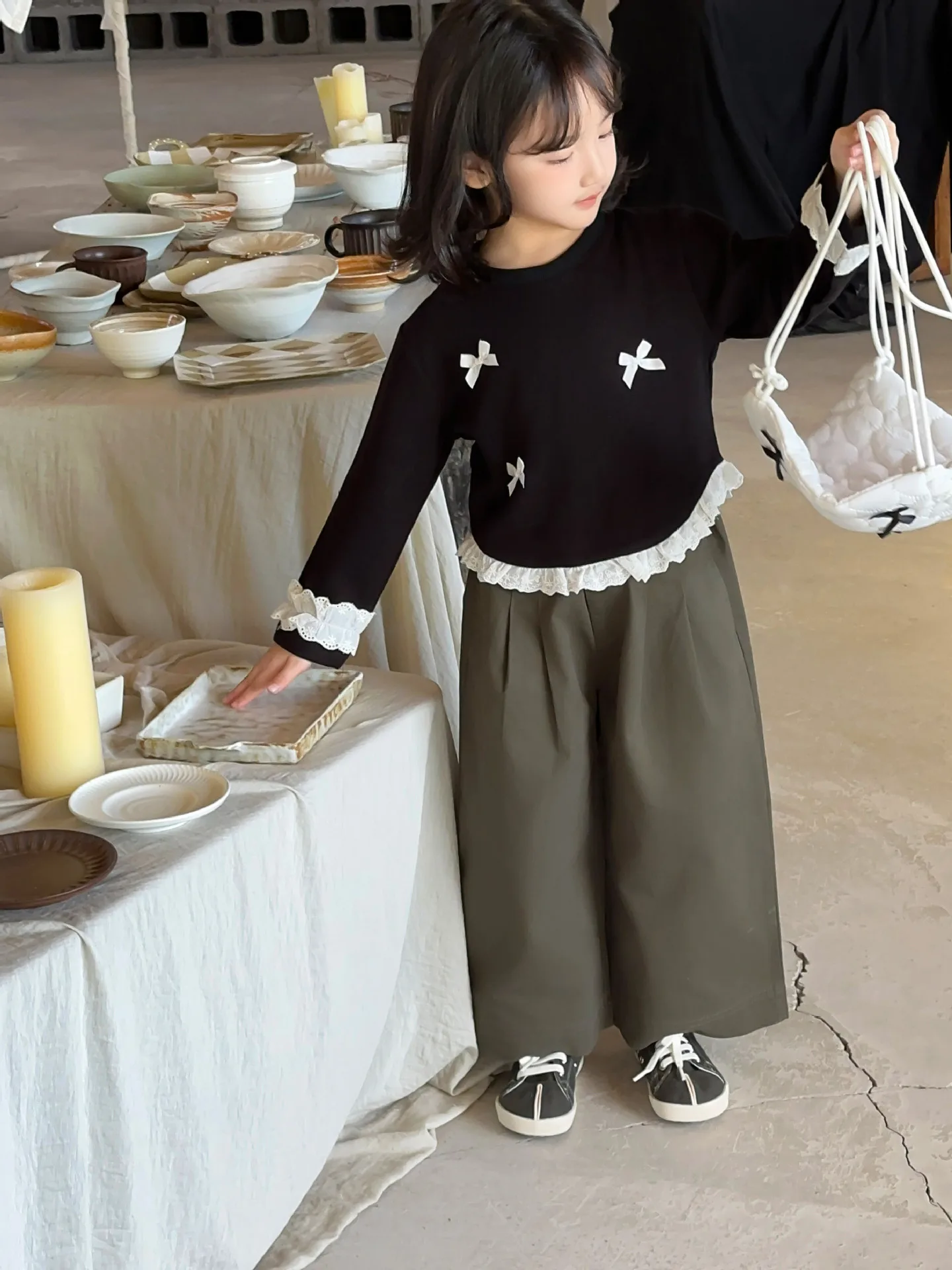 キッズトップス リボン裾袖フリル長袖Tシャツ 2カラー【mh0007320】