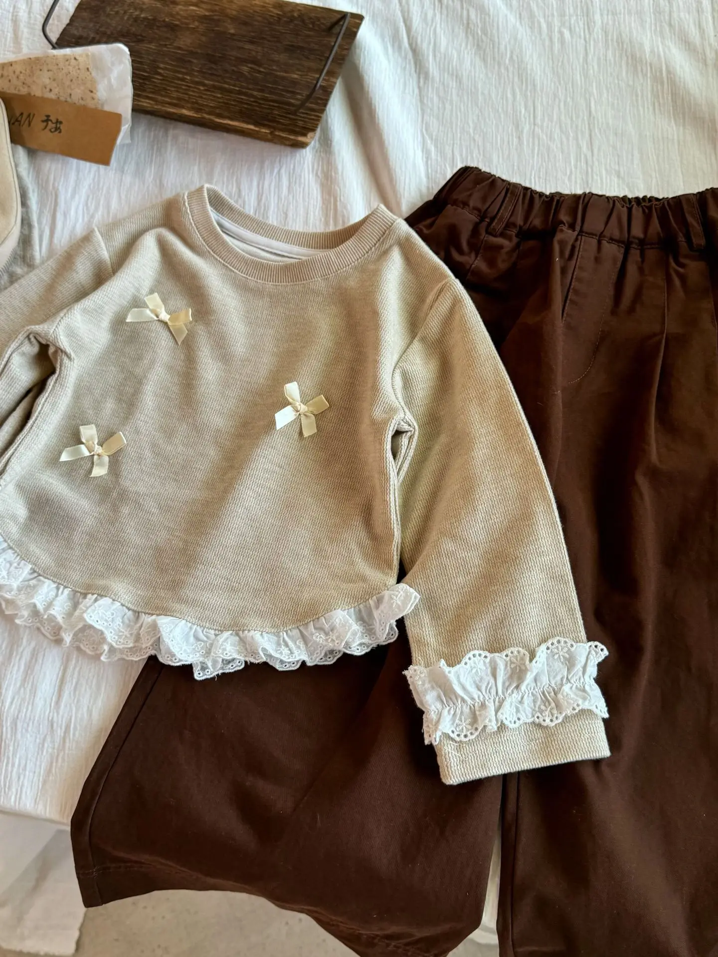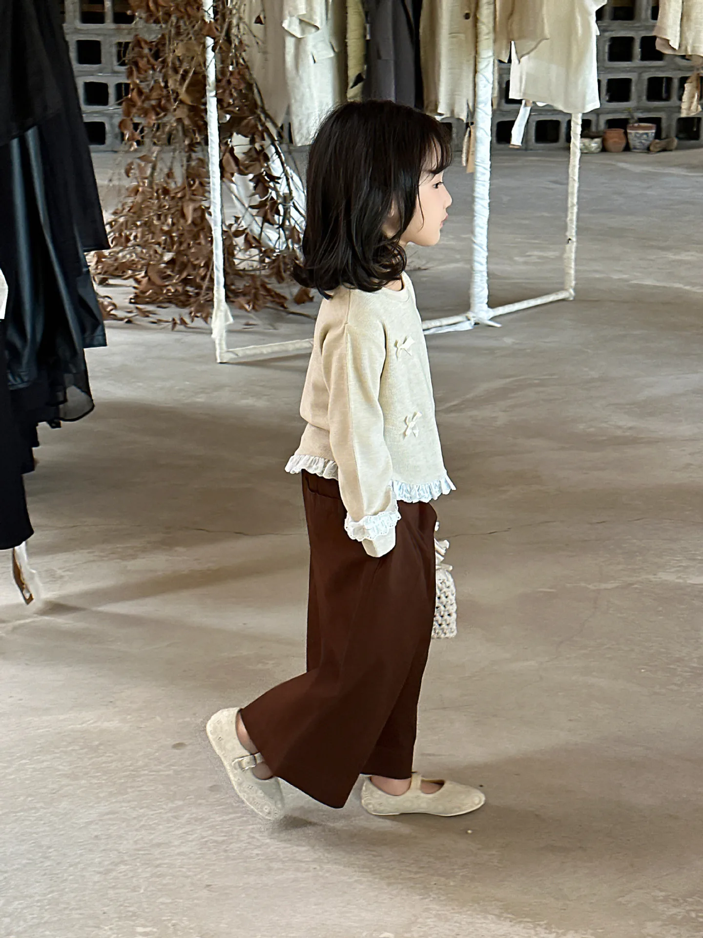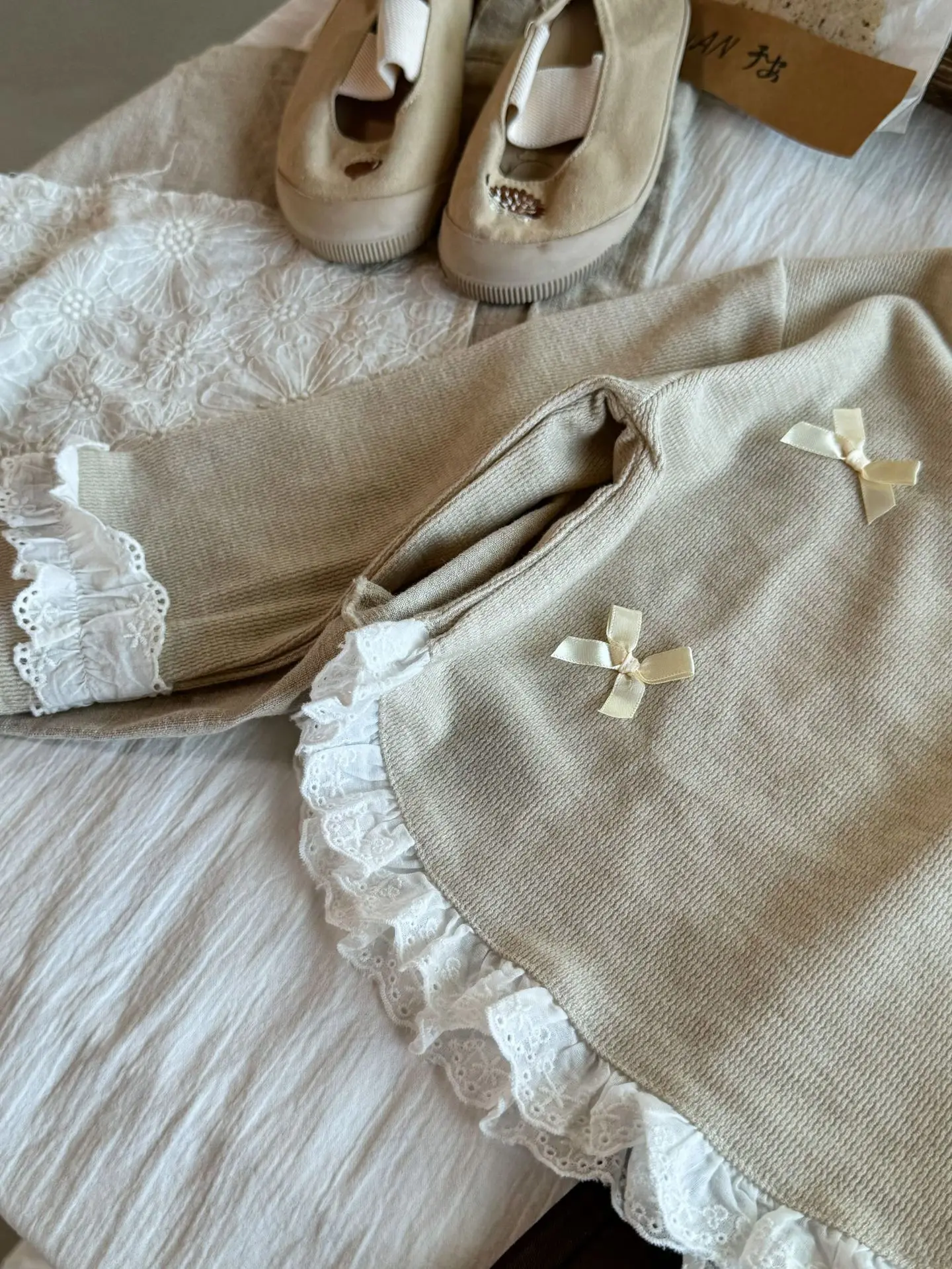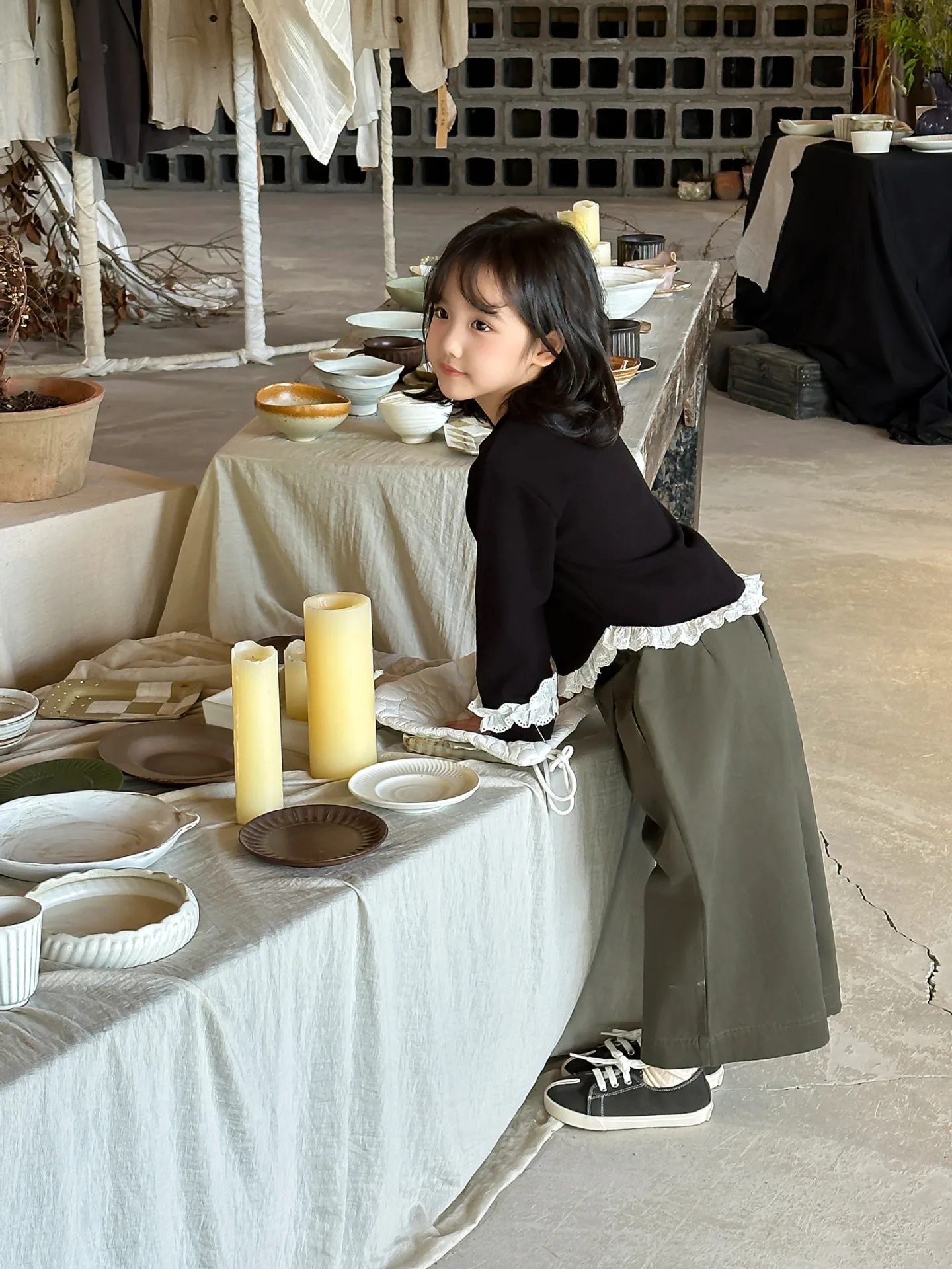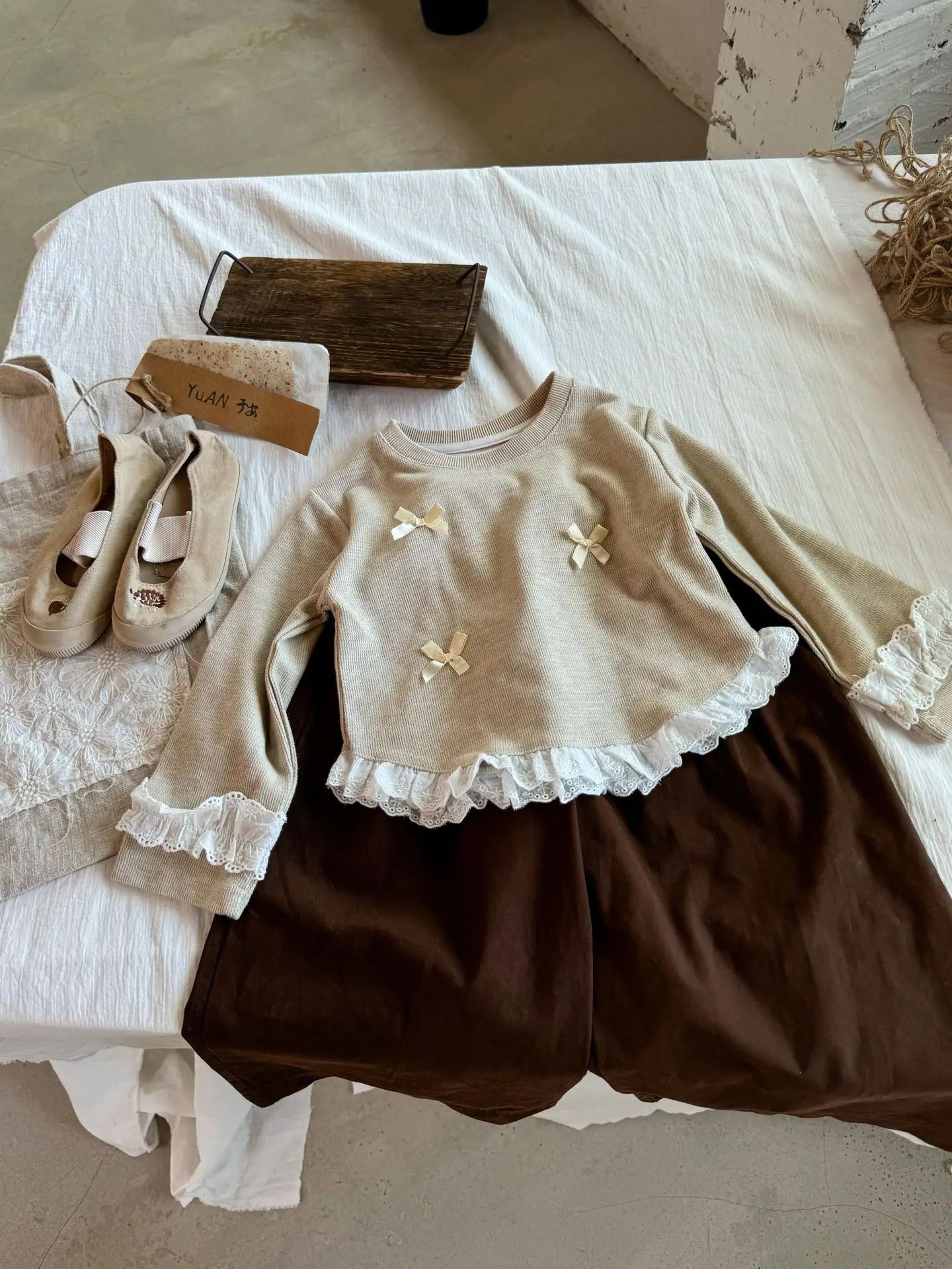 キッズトップス リボン裾袖フリル長袖Tシャツ 2カラー【mh0007320】