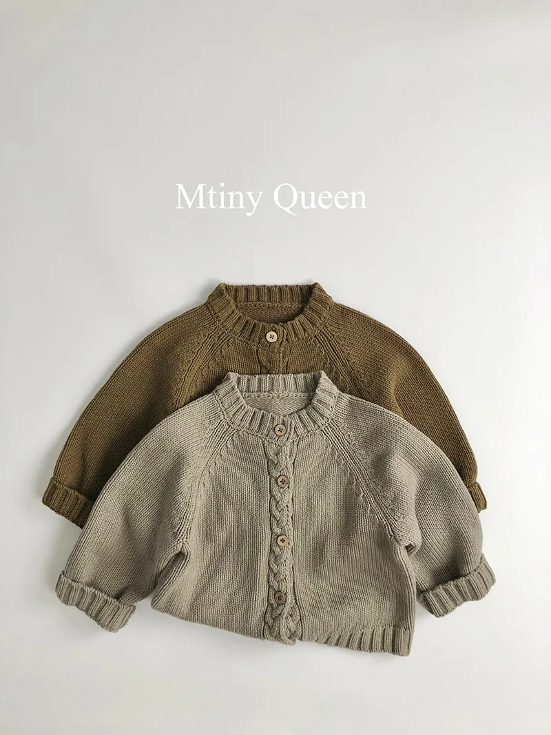 キッズカーディガン ツイストデザインシンプルベーシックニットジャケット 2カラー【mh0007359】